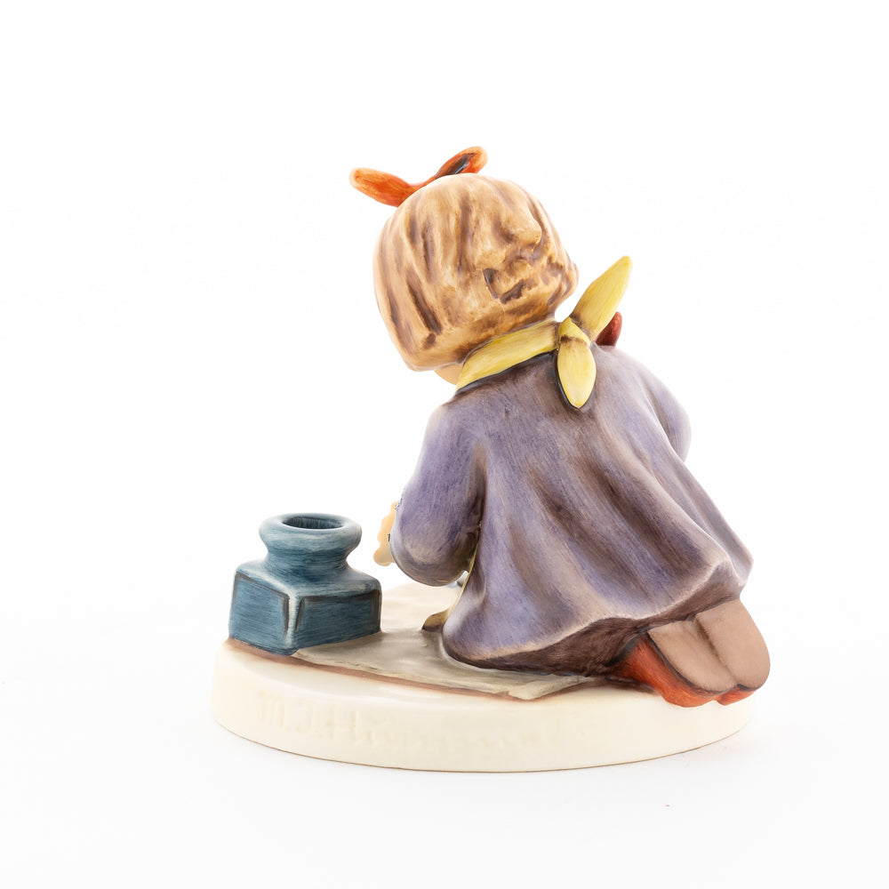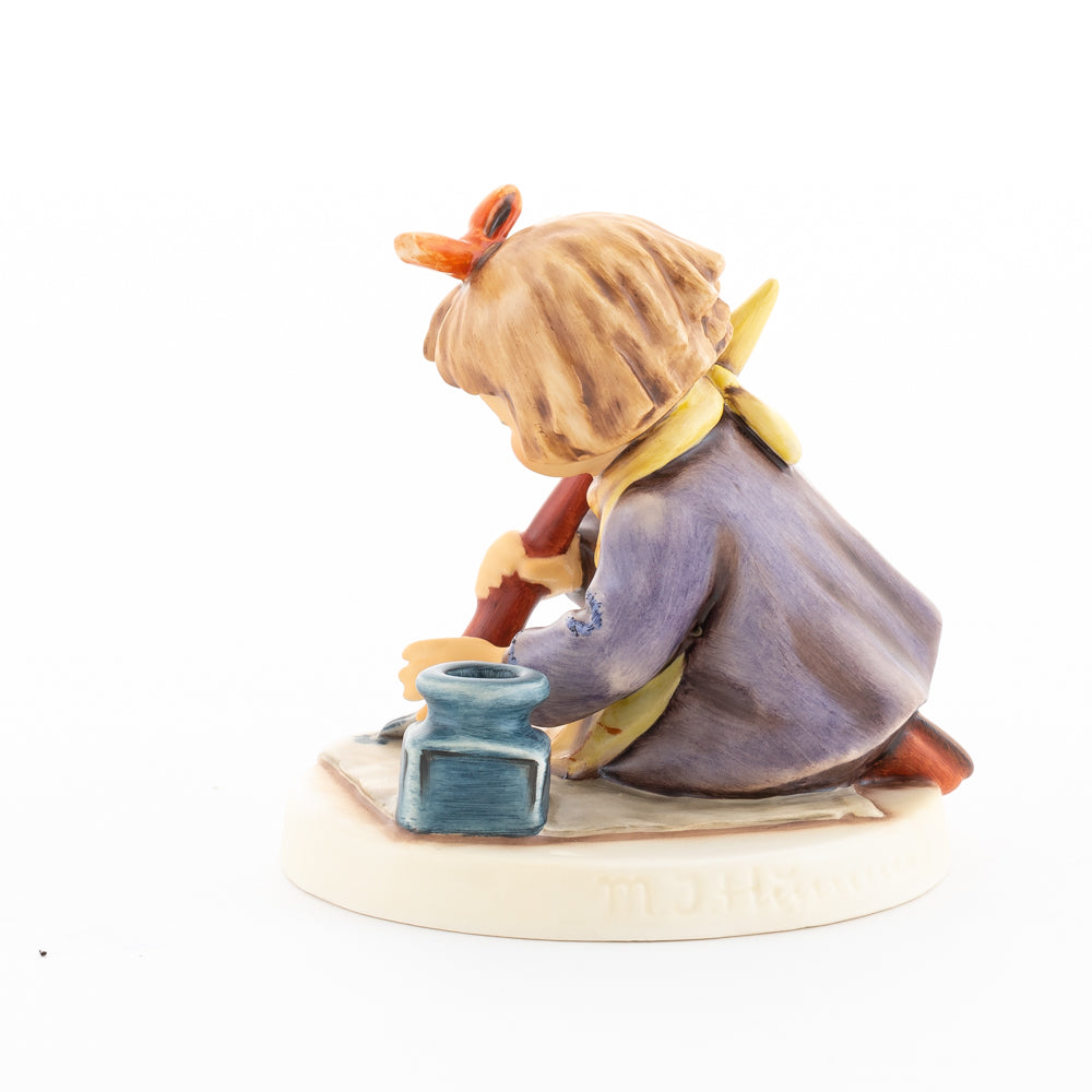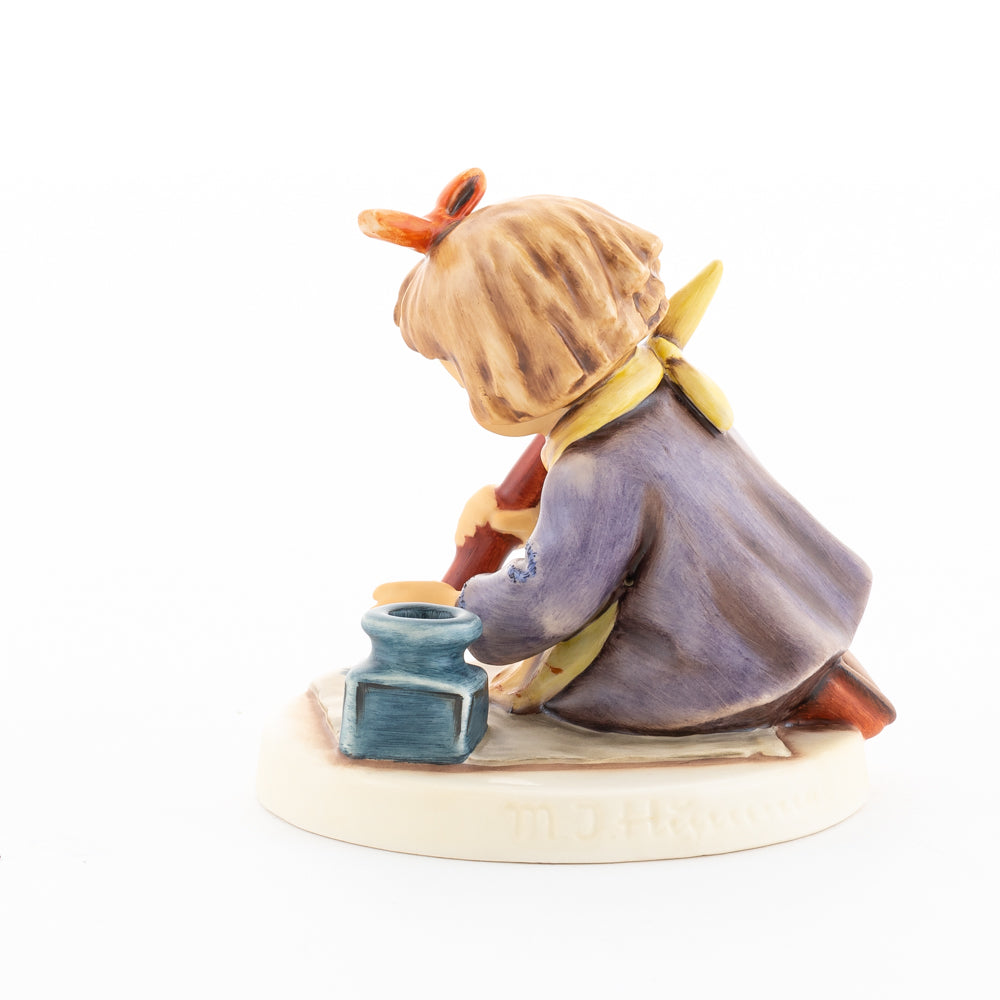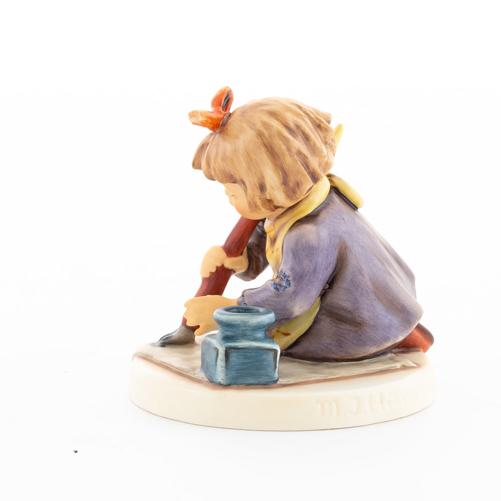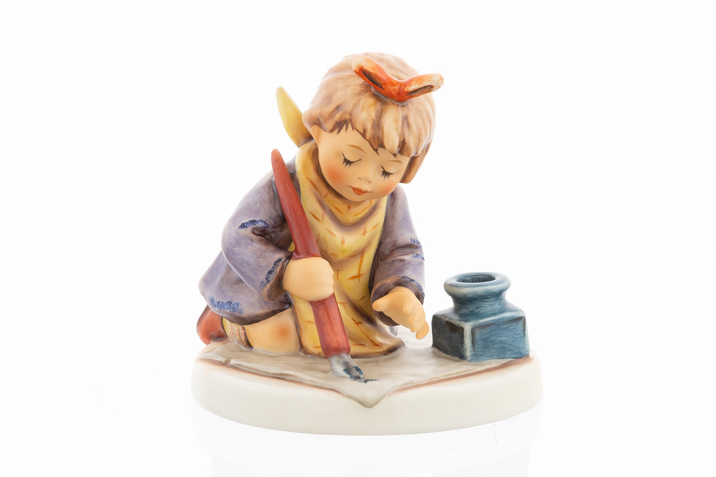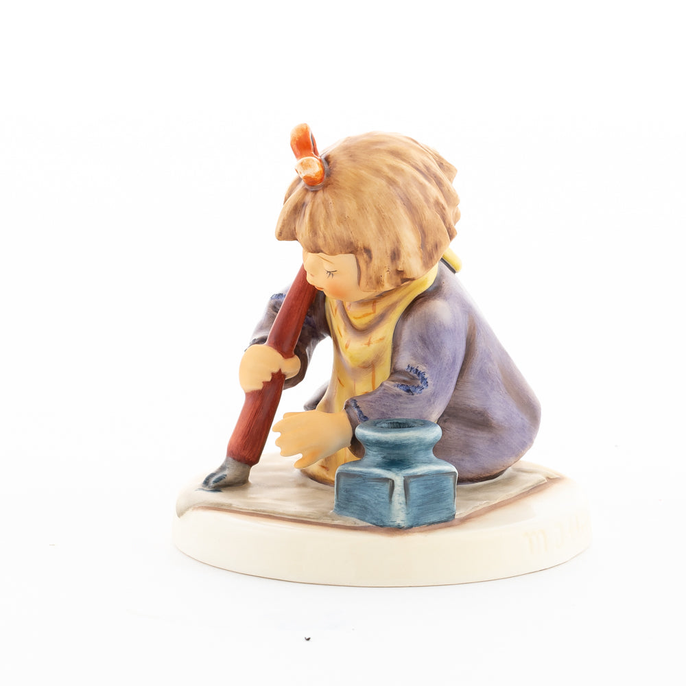 Mit dem blauen Tintenfass und der traditionellen Feder ist die Hummel-Figur „Ein lieber Gruß“ (HUM 446) ein wahrer Hingucker auf jedem Schreibtisch und ein lieblicher Begleiter für alle, die gern handgeschriebene Briefe verschicken oder bekommen.