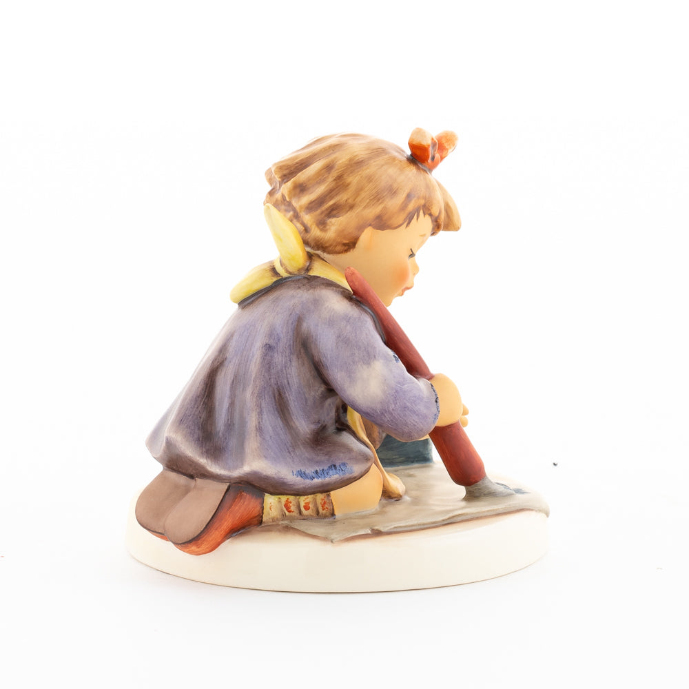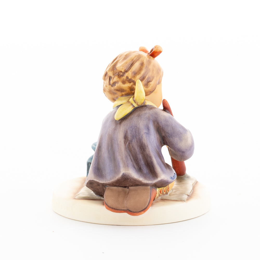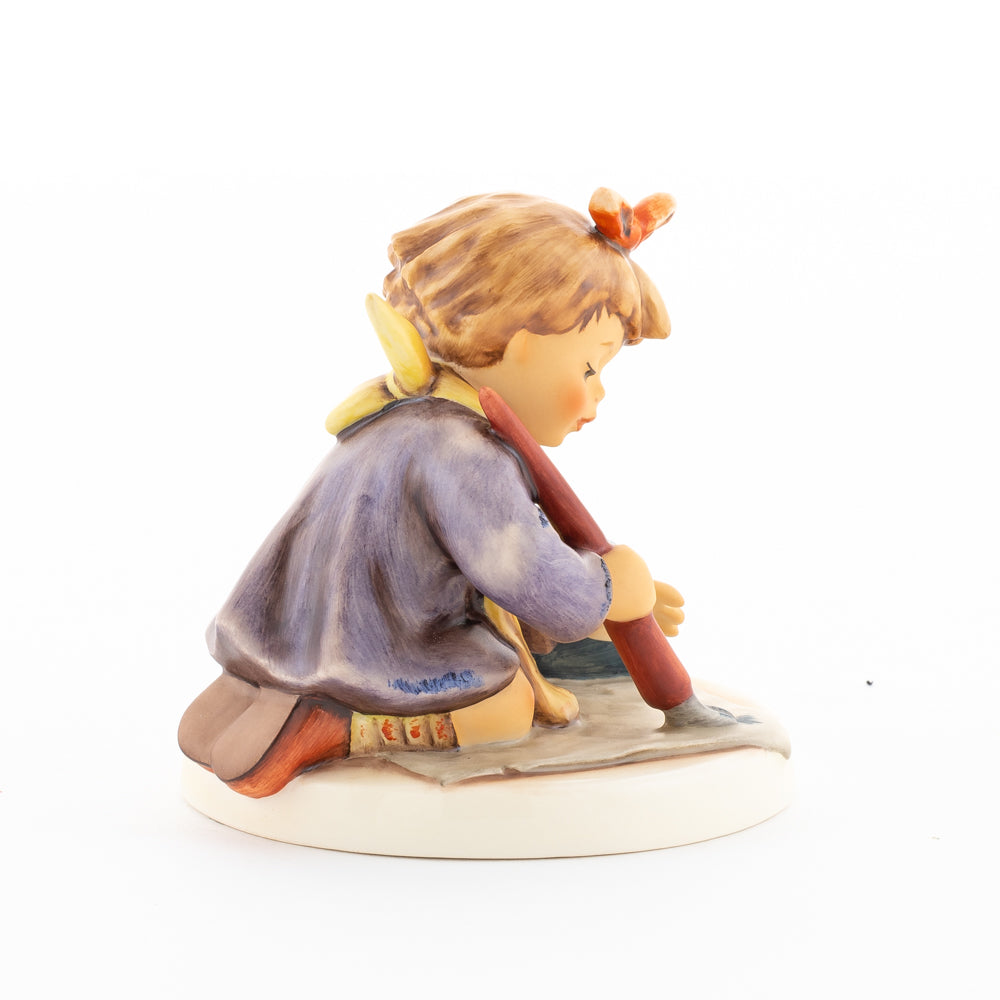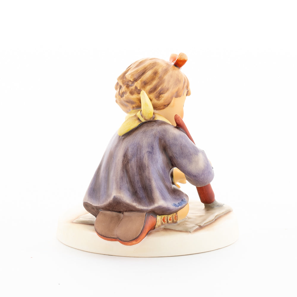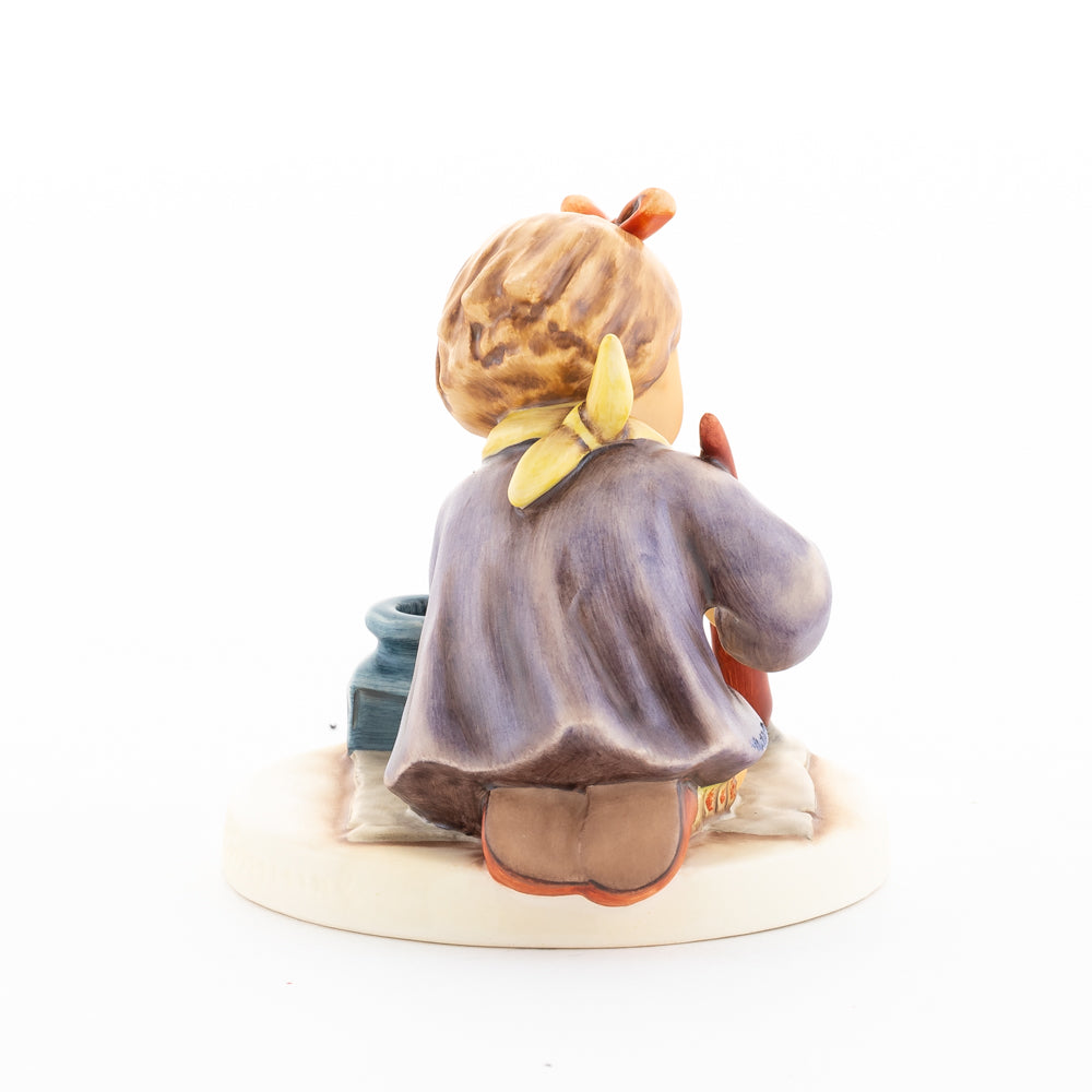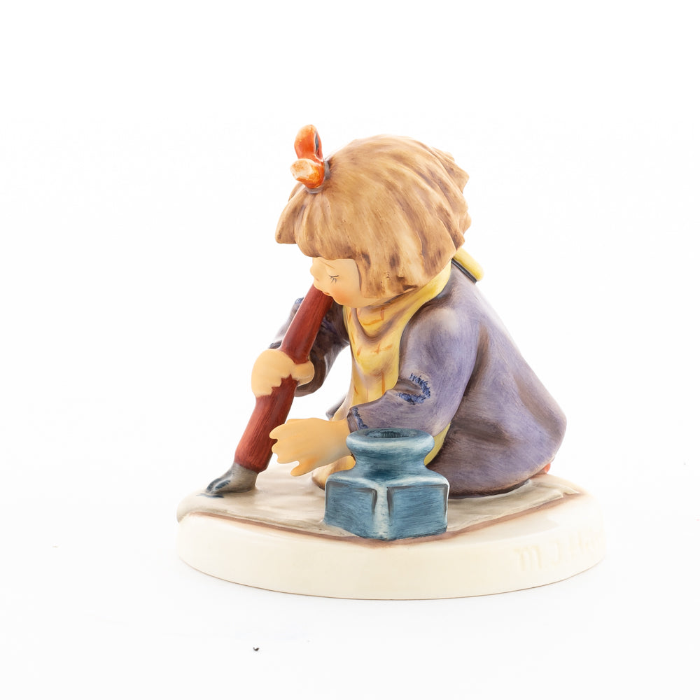 Ganz vertieft in seinen Brief ist das Madl in dieser Szene. Neben ihr das Tintenfass und in der Hand die Feder, schaut die kleine Schreiberin auf ihr Blatt hinunter – fest entschlossen, ein paar liebevolle Zeilen zu hinterlassen. Oder ist es gar ein Liebesbrief, den das Hummel-Mädchen hier verfasst?