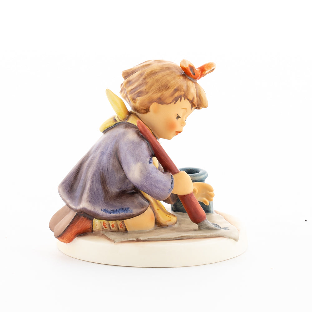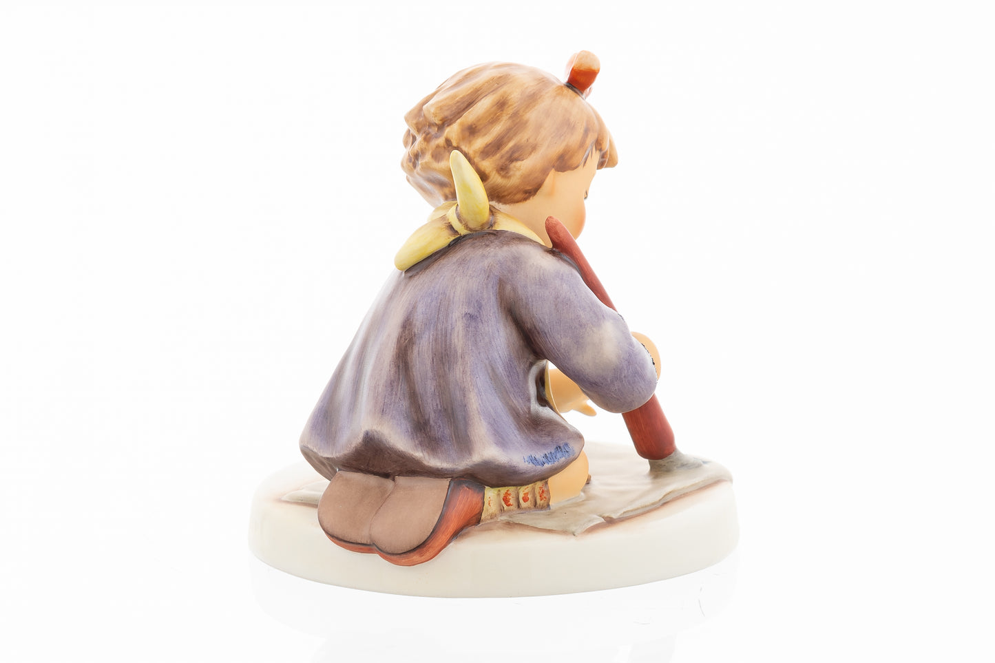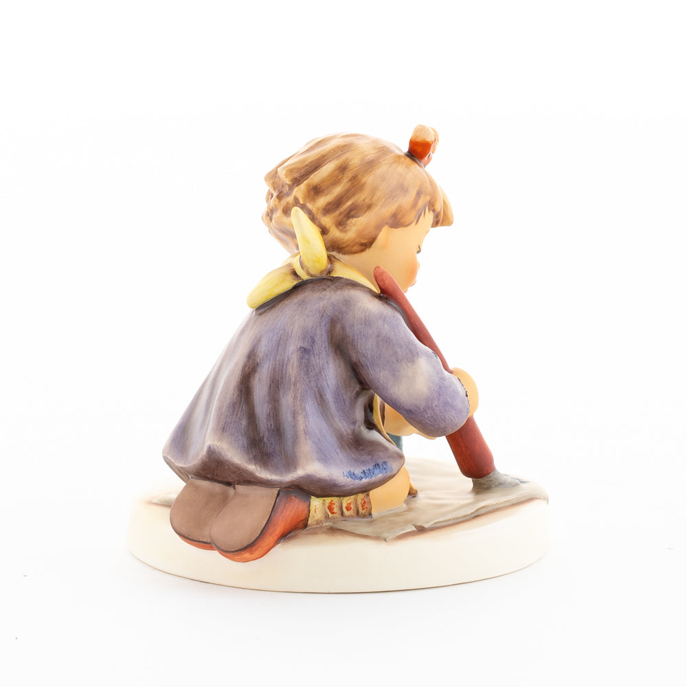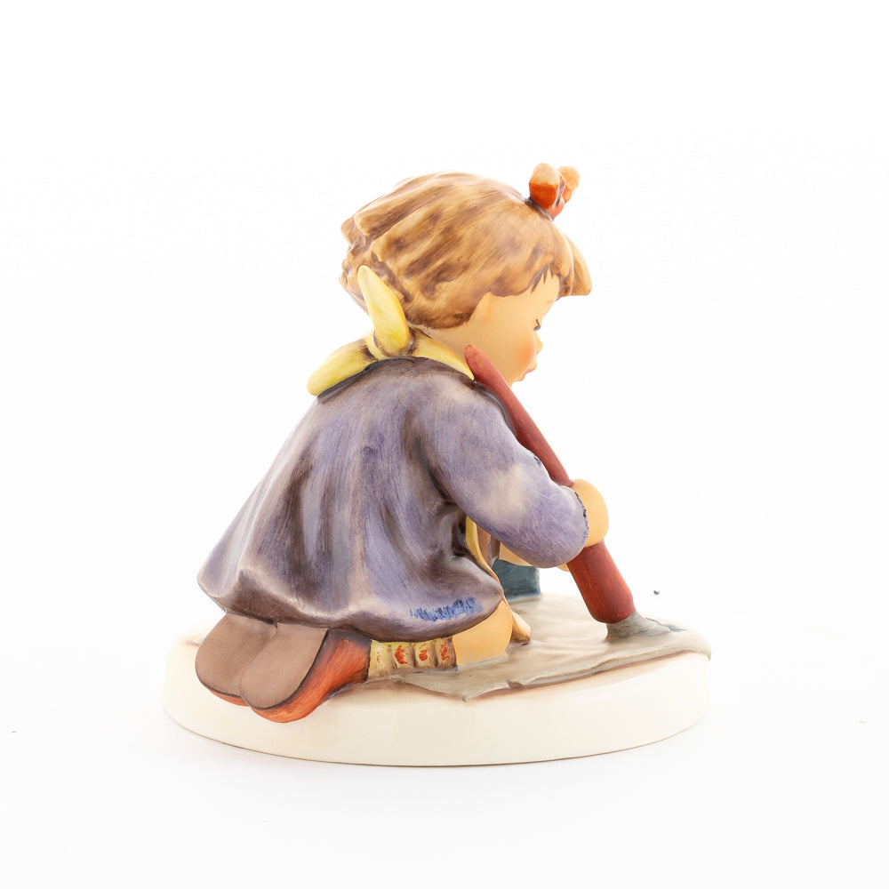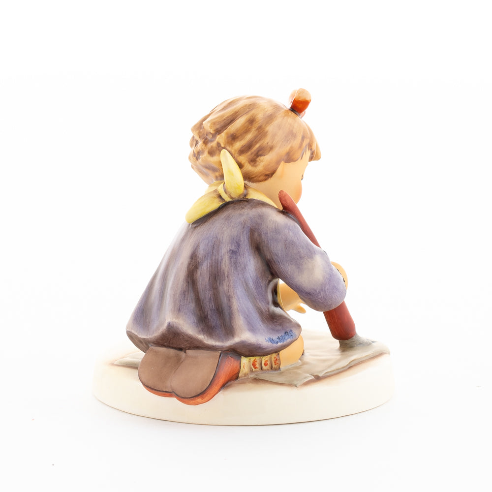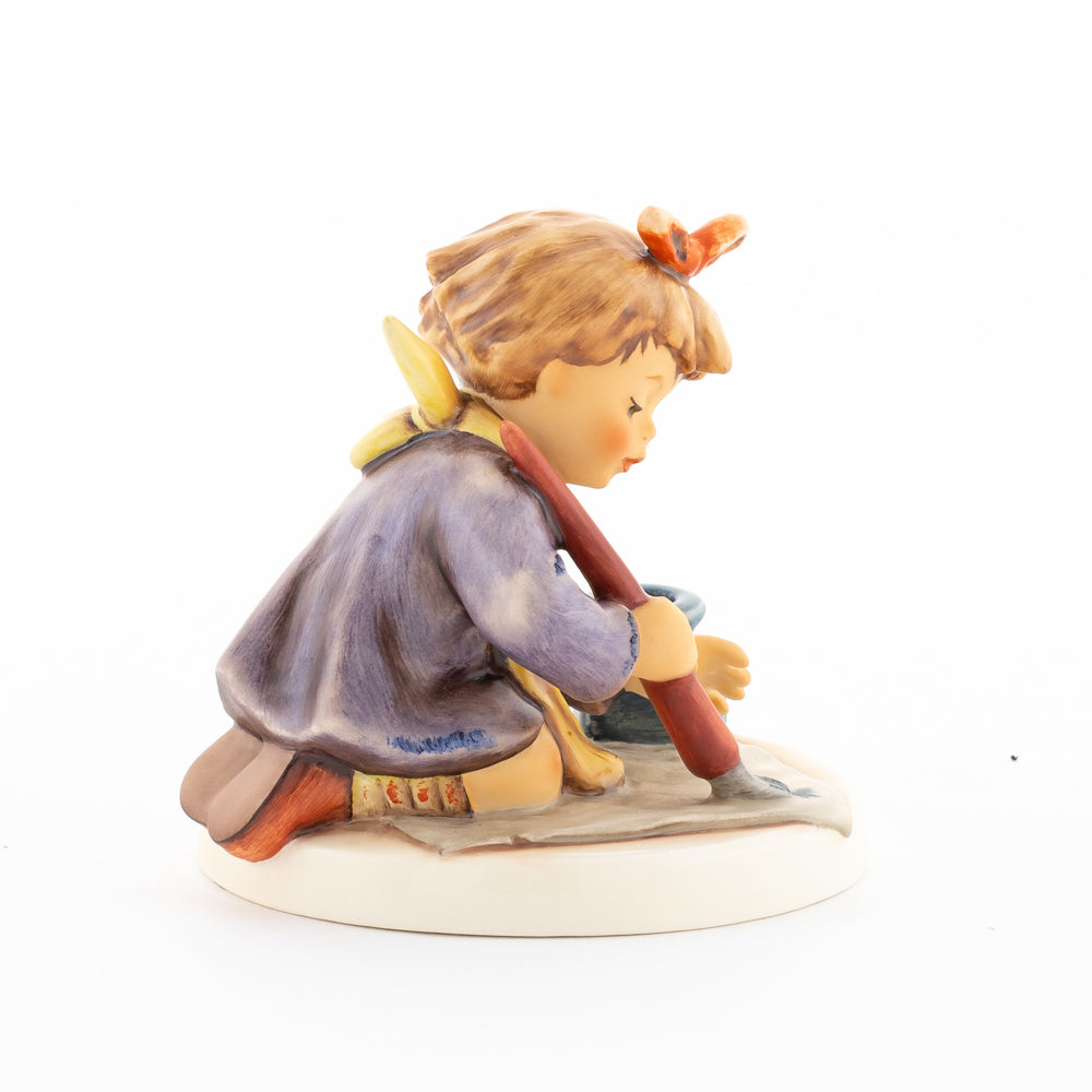 Ganz vertieft in seinen Brief ist das Madl in dieser Szene. Neben ihr das Tintenfass und in der Hand die Feder, schaut die kleine Schreiberin auf ihr Blatt hinunter – fest entschlossen, ein paar liebevolle Zeilen zu hinterlassen. Oder ist es gar ein Liebesbrief, den das Hummel-Mädchen hier verfasst?