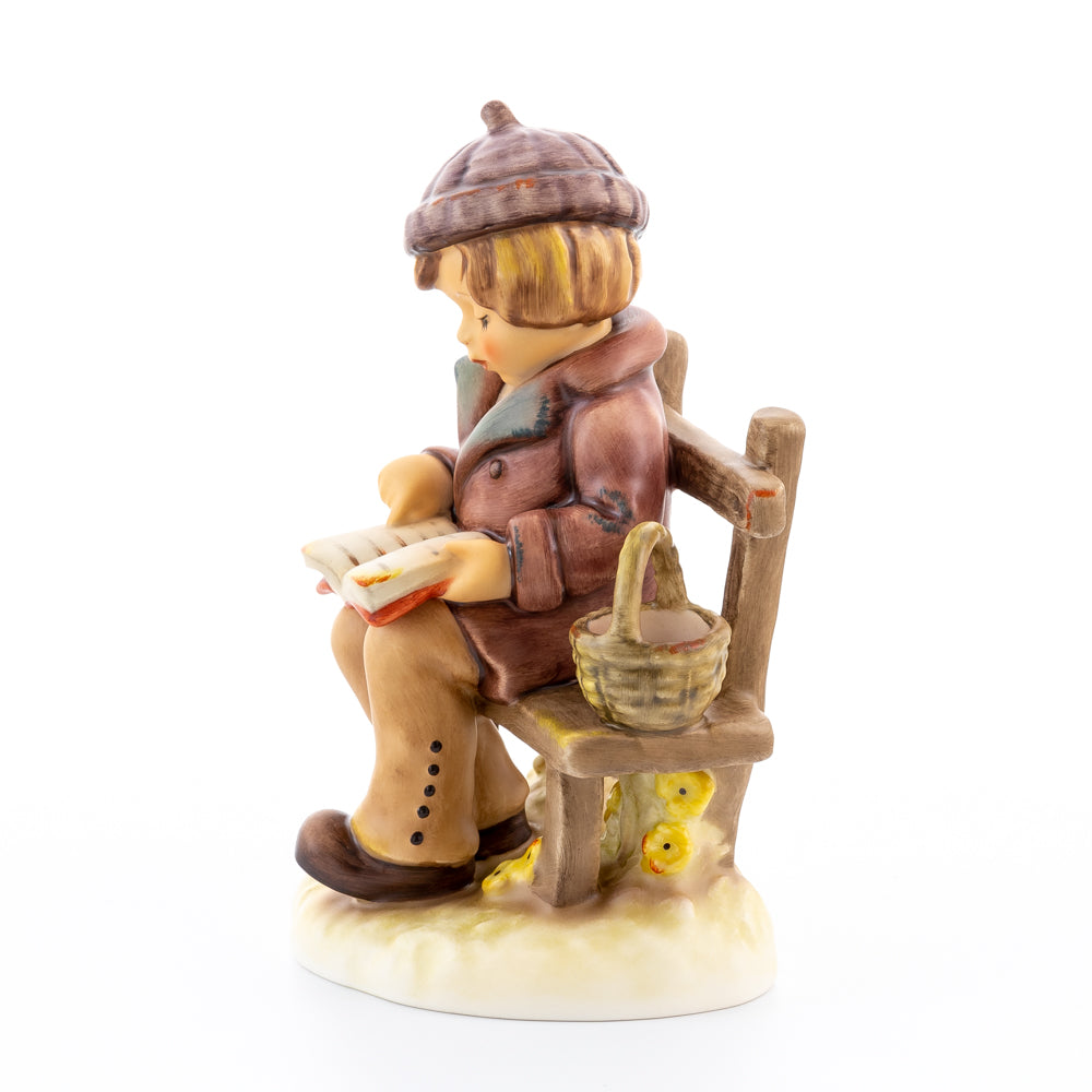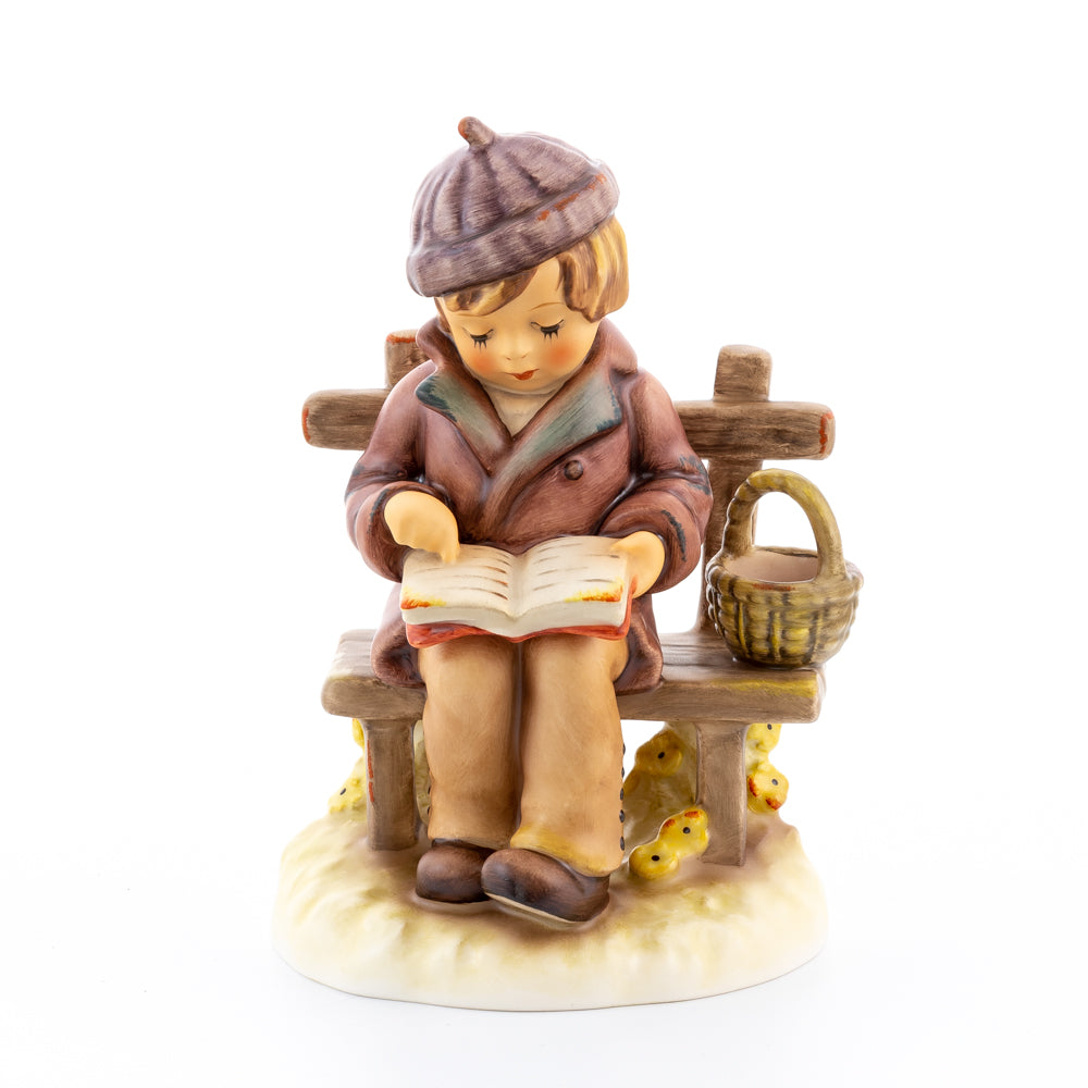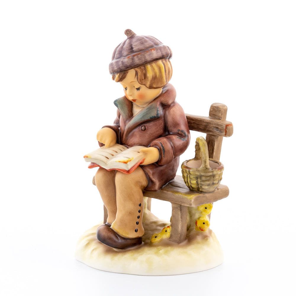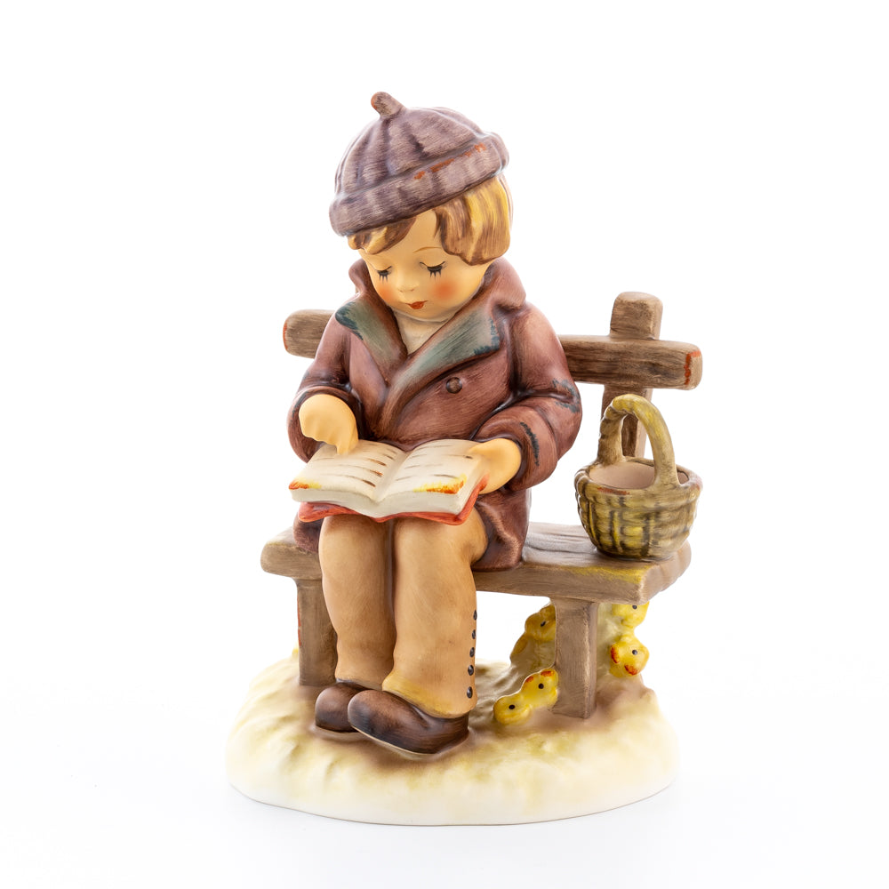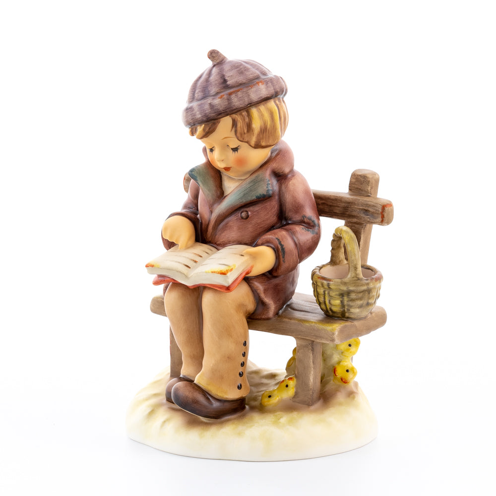 Tief in den Text versunken liest es still und in sich ruhend in einem aufgeschlagenen Buch. Ist es eine spannende Geschichte, die unser Hummel-Kind liest oder sogar ein Gedicht?