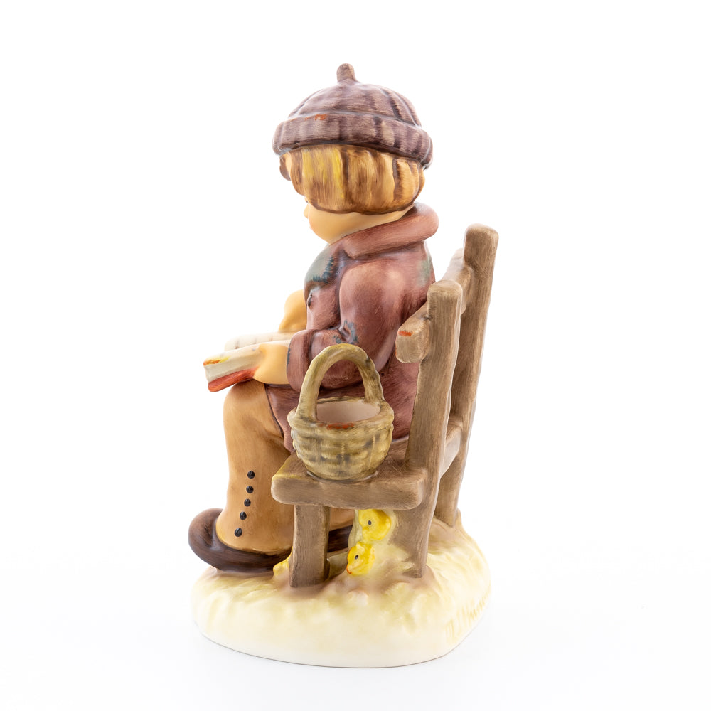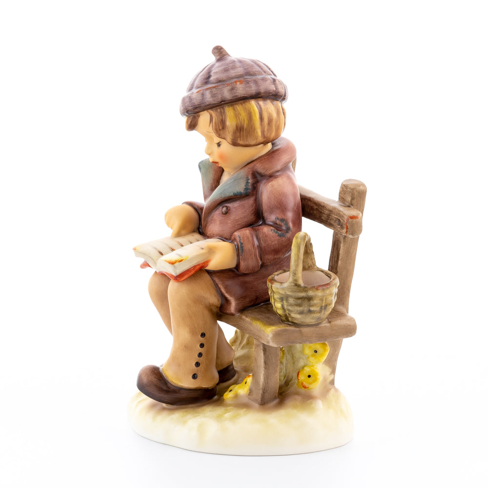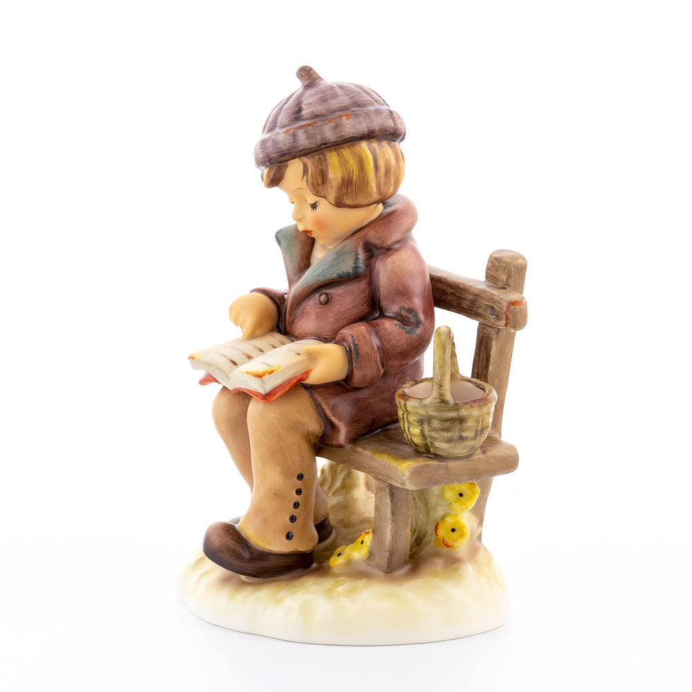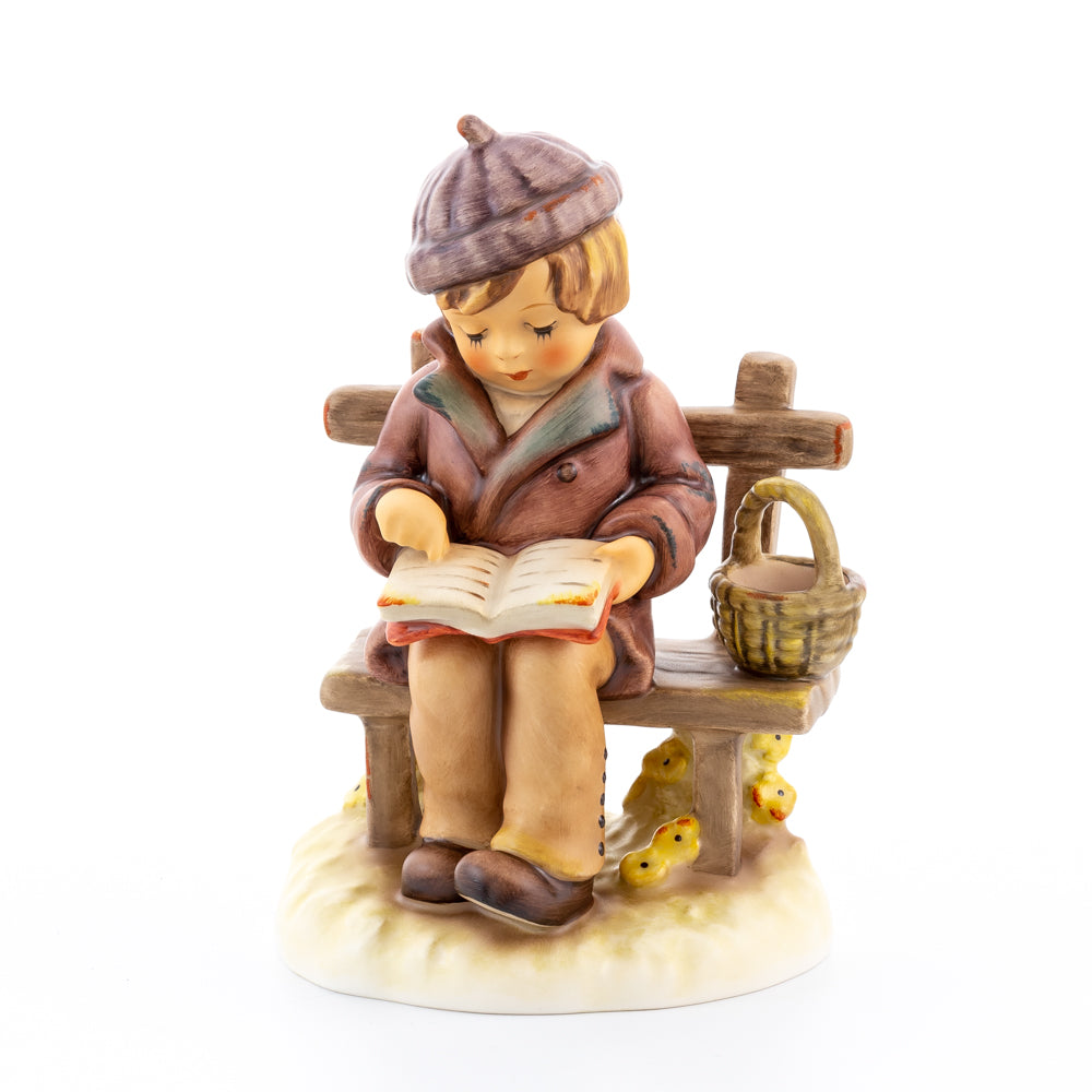 Tief in den Text versunken liest es still und in sich ruhend in einem aufgeschlagenen Buch. Ist es eine spannende Geschichte, die unser Hummel-Kind liest oder sogar ein Gedicht?
