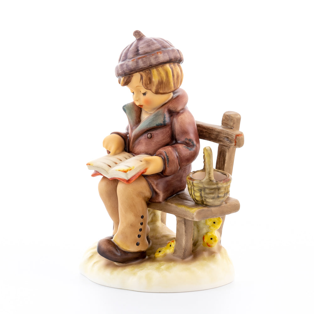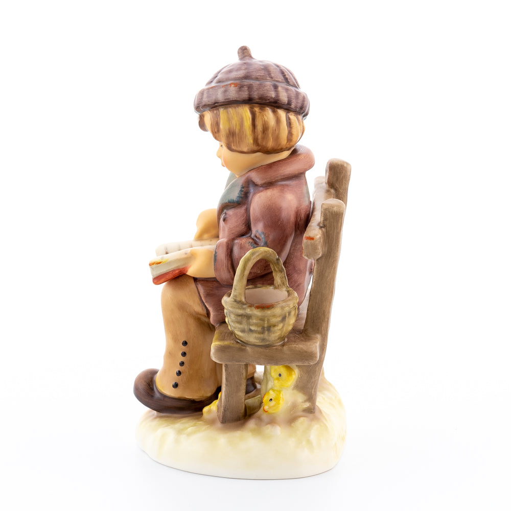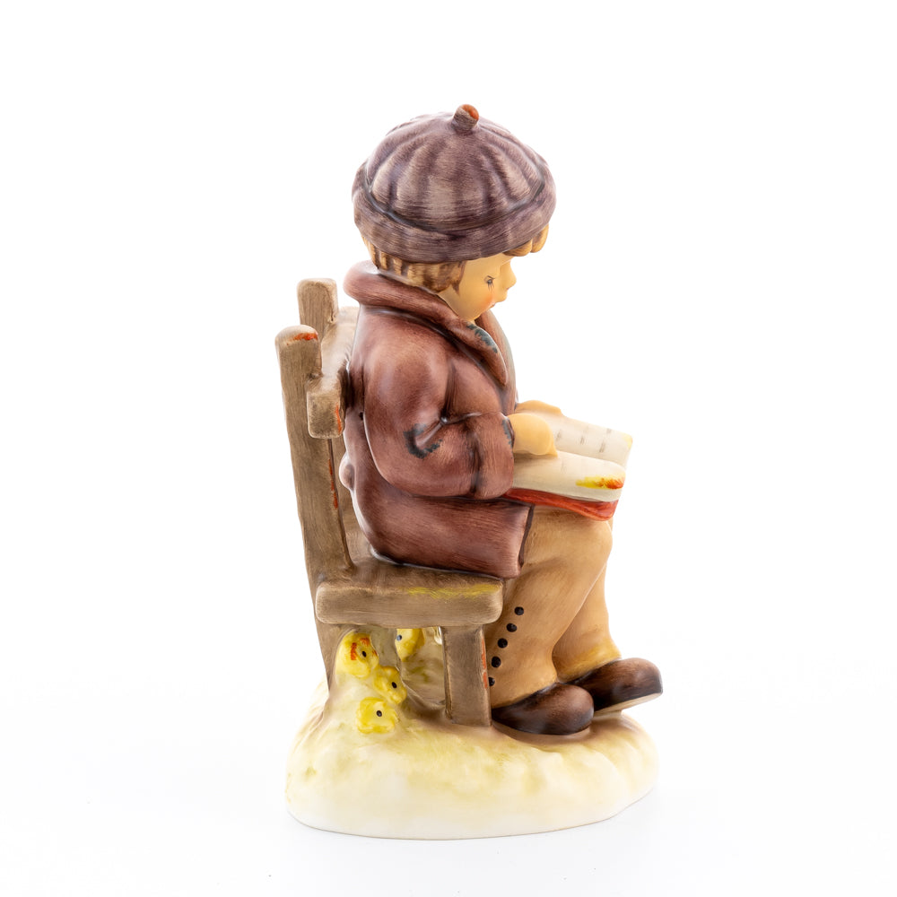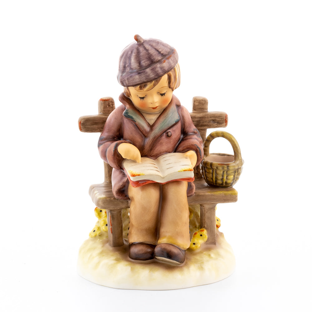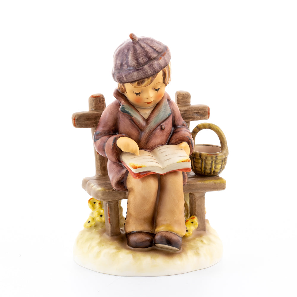 Tief in den Text versunken liest es still und in sich ruhend in einem aufgeschlagenen Buch. Ist es eine spannende Geschichte, die unser Hummel-Kind liest oder sogar ein Gedicht?