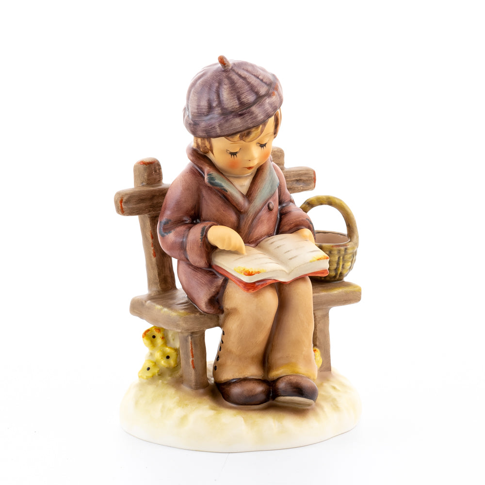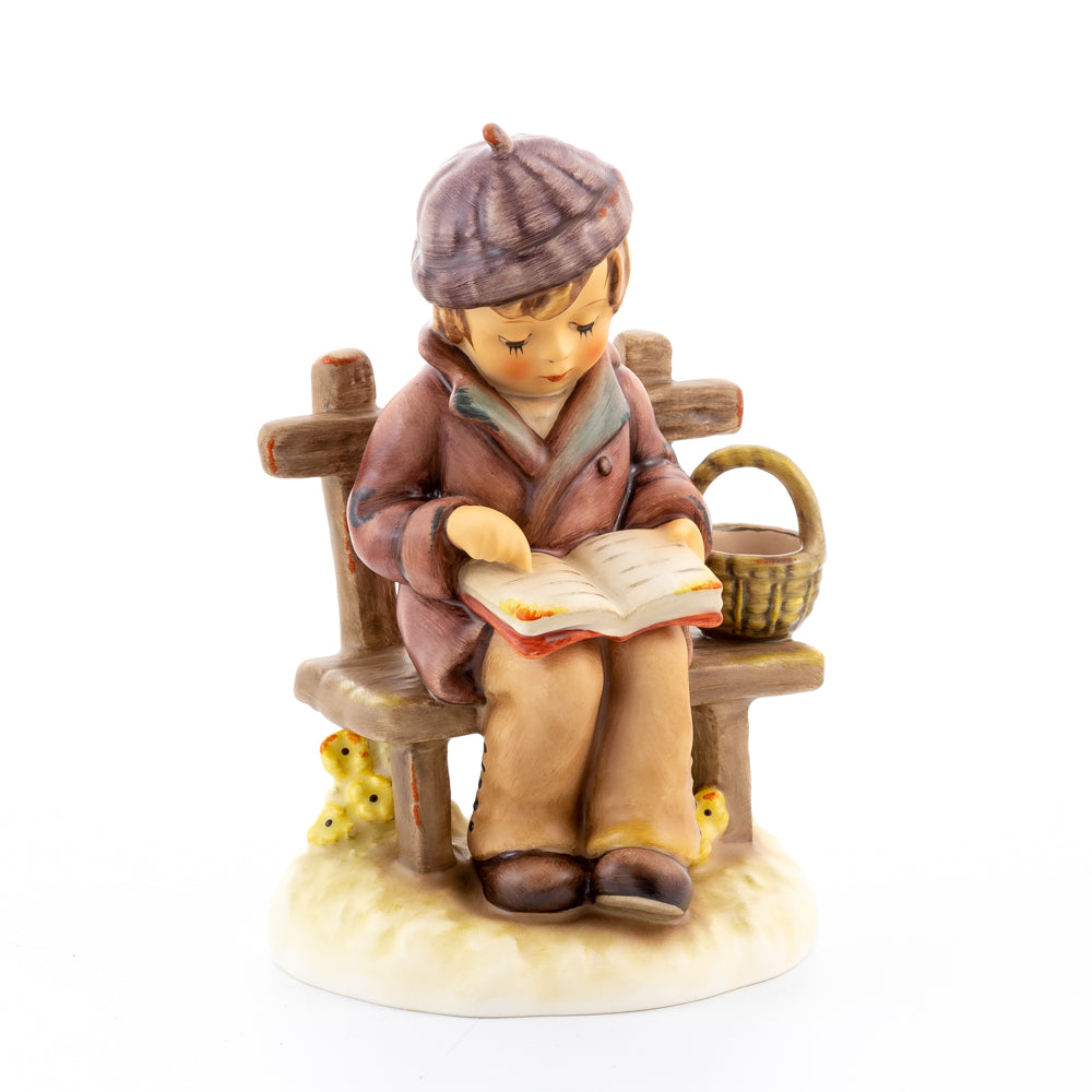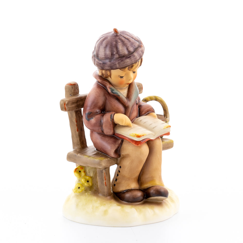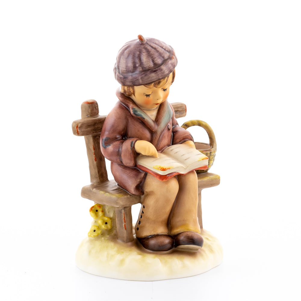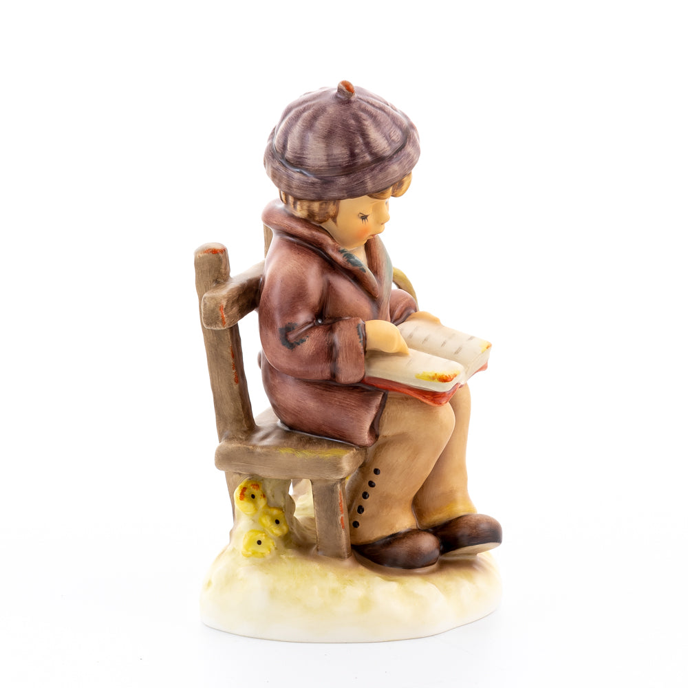 Tief in den Text versunken liest es still und in sich ruhend in einem aufgeschlagenen Buch. Ist es eine spannende Geschichte, die unser Hummel-Kind liest oder sogar ein Gedicht?