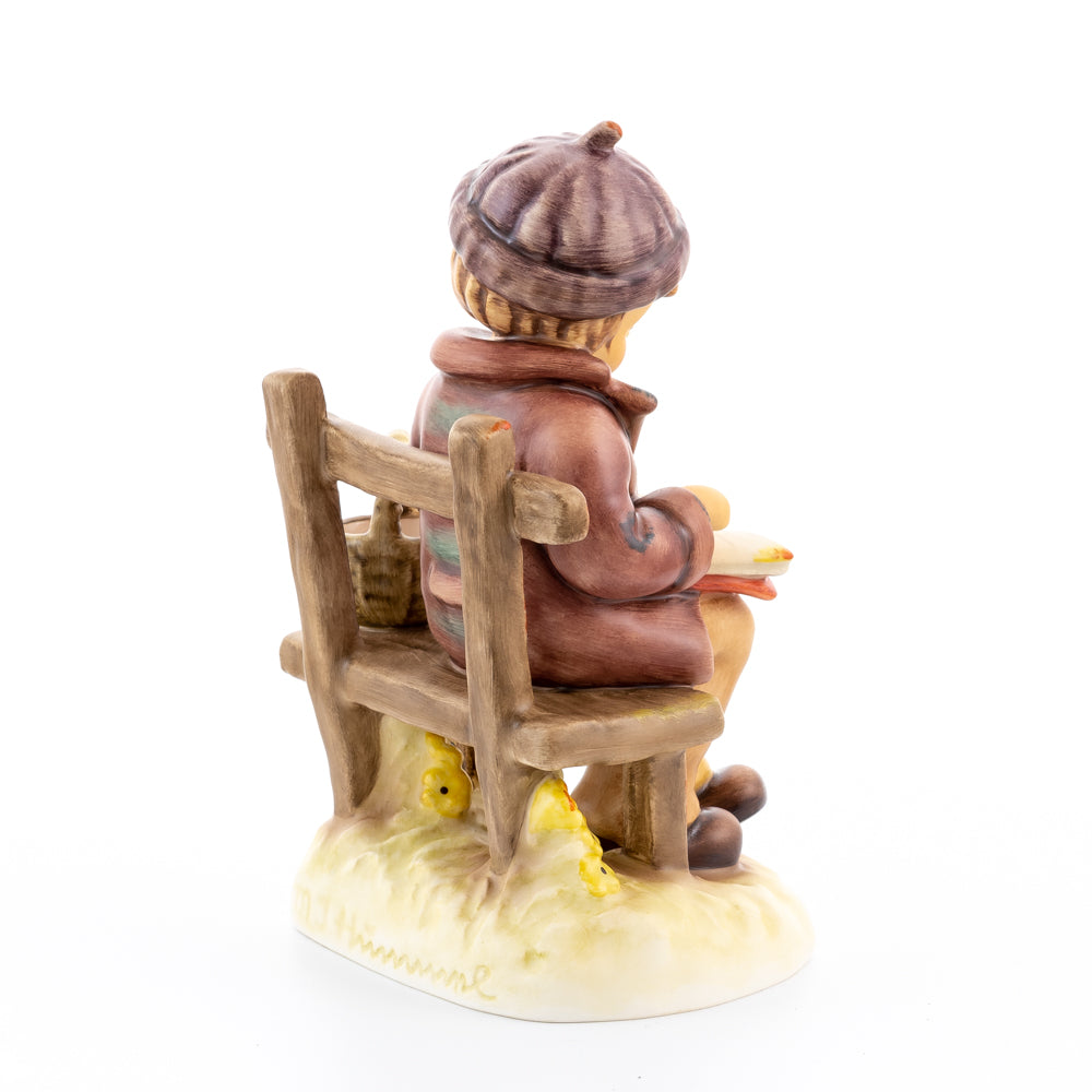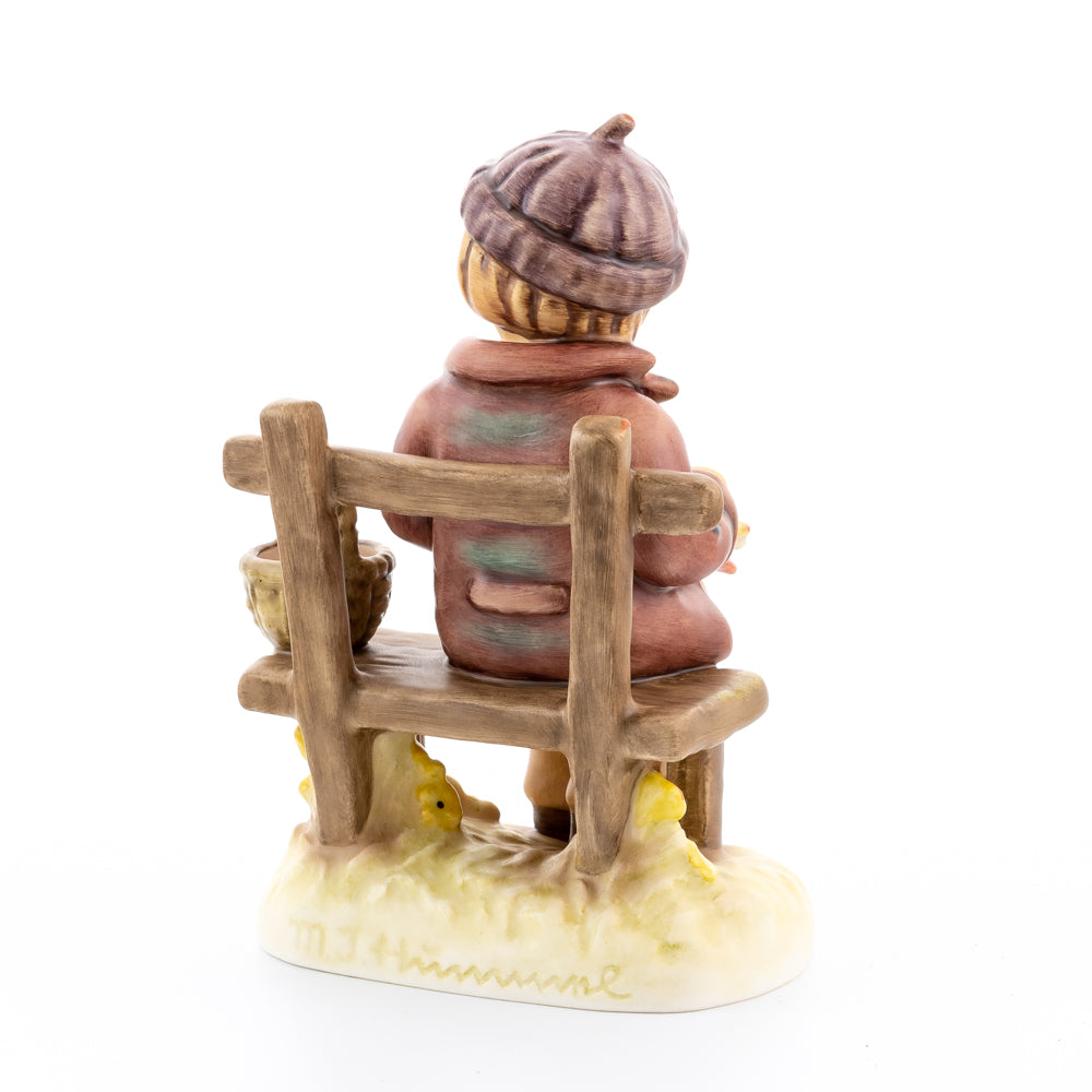 „Versunken“ wurde 2021 von der Modelleurin Marion Huschka gefertigt und begeistert mit liebevollen Details, so zum Beispiel der kleine Korb, die lila Mütze oder die kleinen gelben Blüten, die unter der Holzbank wachsen. Mit der Höhe von 13,5 Zentimetern ist die Hummel-Figur eine wunderbare Frühlingsdekoration und perfekt geeignet für die ersten Frühlingstage. Ideal zum Verschenken oder für das eigene Zuhause.