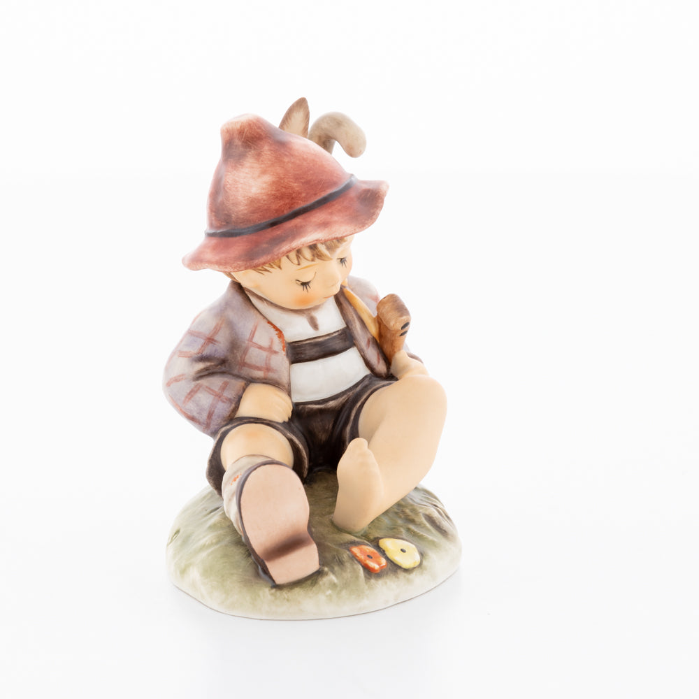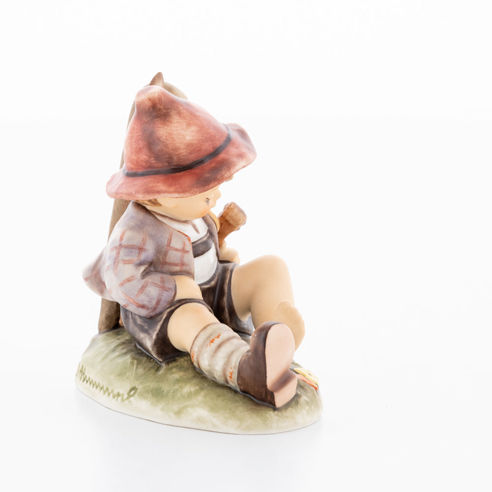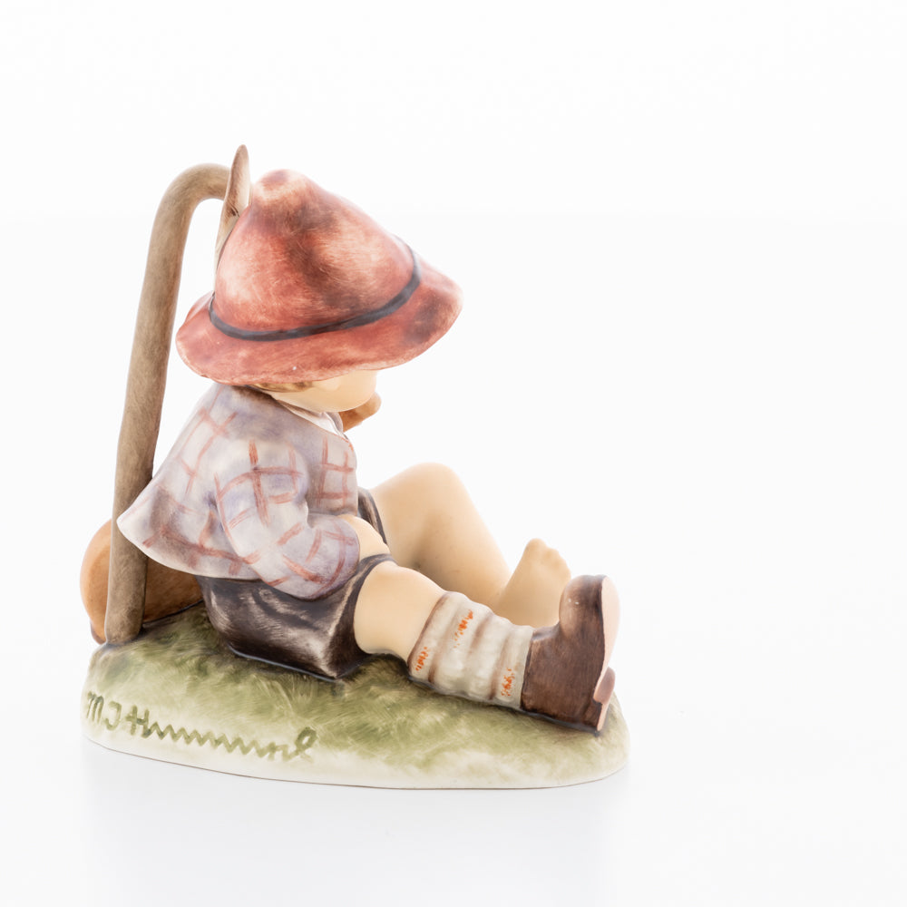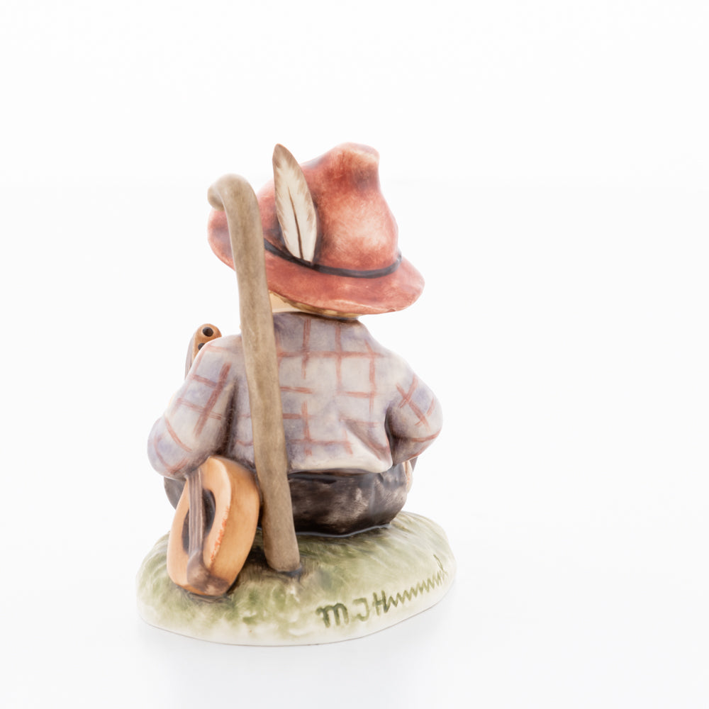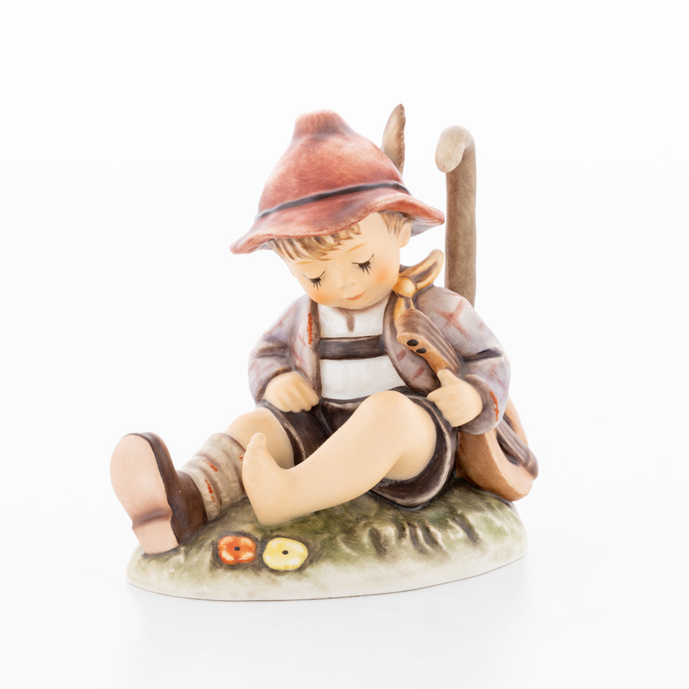 Wie der kleinen Hummel-Figur "So geh i net" ist es schon vielen Wanderern ergangen. Denn der kleine Geselle macht erst einmal Pause, um Strumpf und Schuh auszuziehen, damit ein wenig Luft an den lädierten Fußzeh kommt. Diese original M.I. Hummel-Figur wurde 1986 von Meistermodelleur Gerhard Skrobek geschaffen und verzaubert nun durch die typische Hummel-Optik nicht nur Wanderfreunde mit seinem Charme.