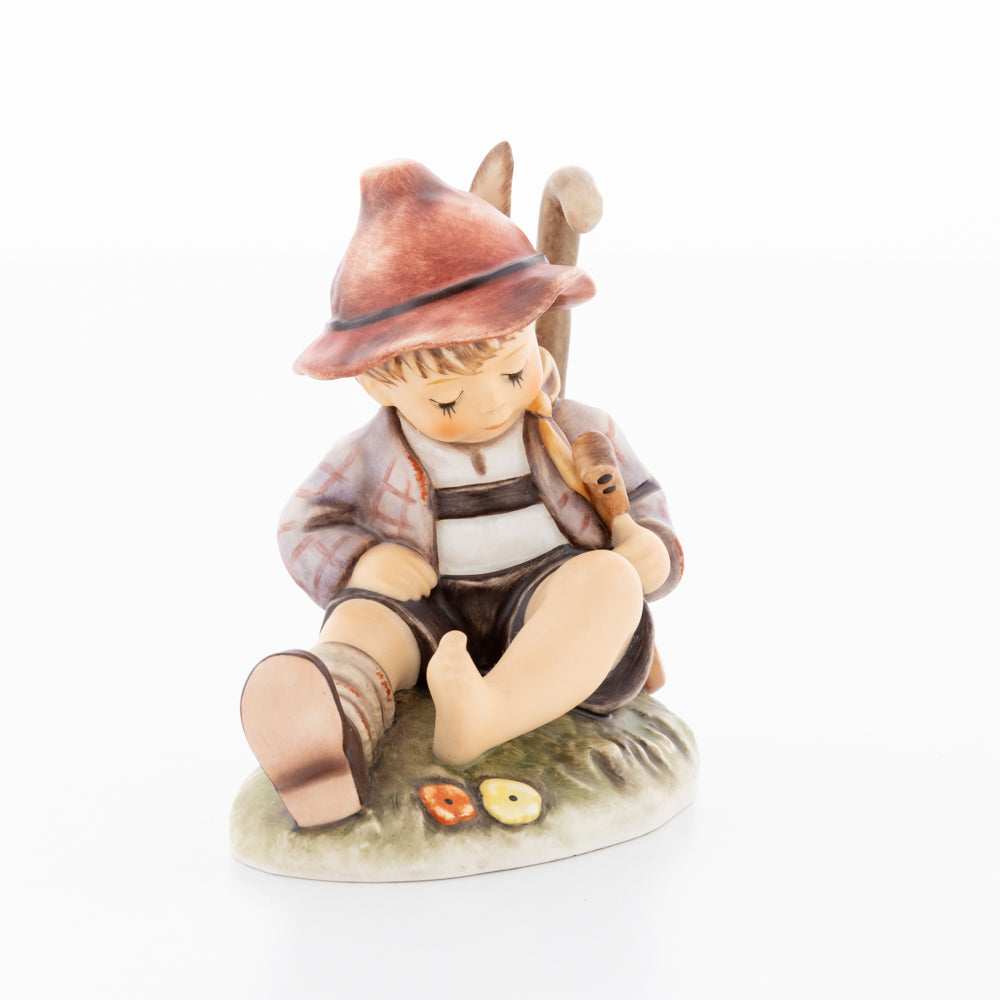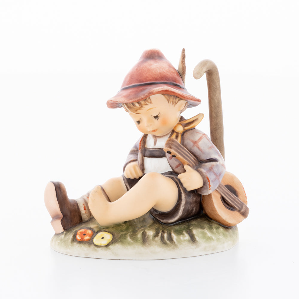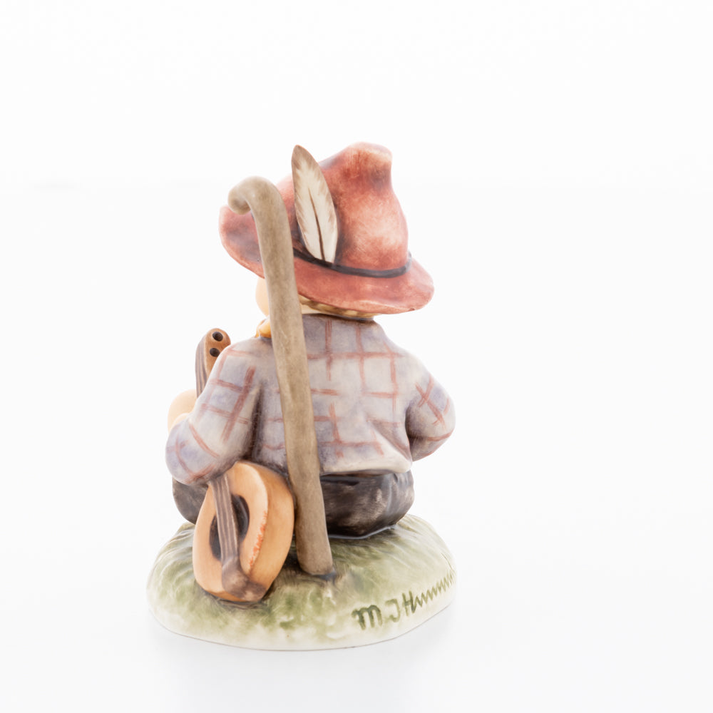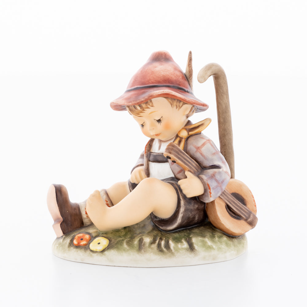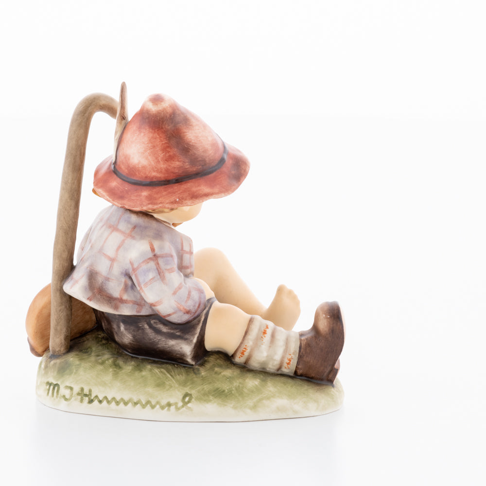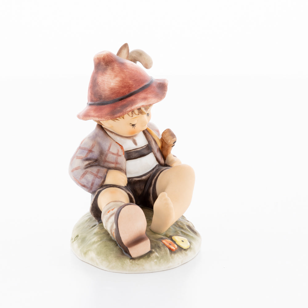 Wie der kleinen Hummel-Figur "So geh i net" ist es schon vielen Wanderern ergangen. Denn der kleine Geselle macht erst einmal Pause, um Strumpf und Schuh auszuziehen, damit ein wenig Luft an den lädierten Fußzeh kommt. Diese original M.I. Hummel-Figur wurde 1986 von Meistermodelleur Gerhard Skrobek geschaffen und verzaubert nun durch die typische Hummel-Optik nicht nur Wanderfreunde mit seinem Charme.