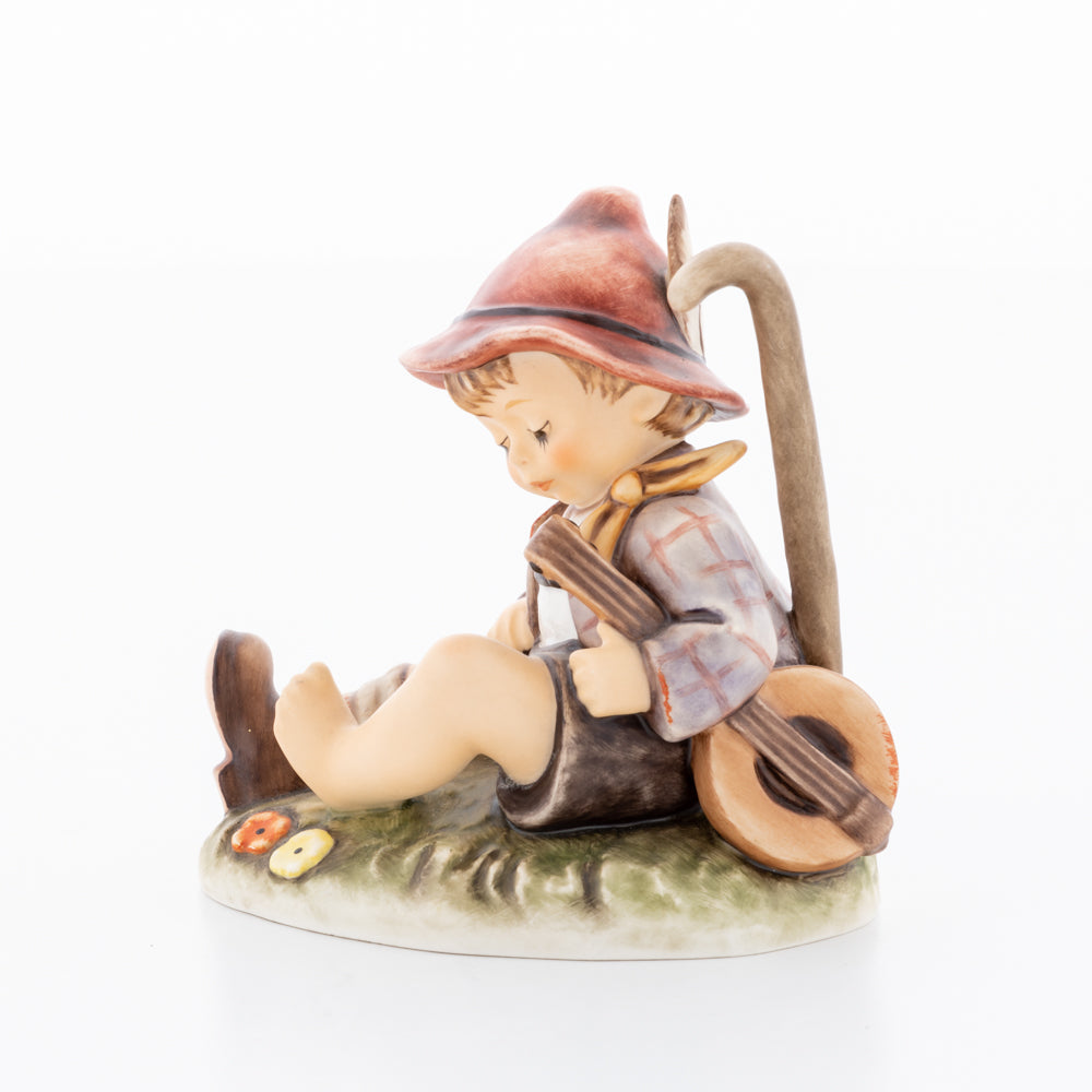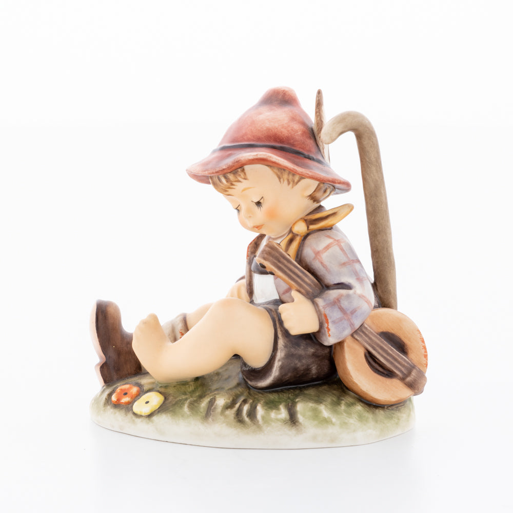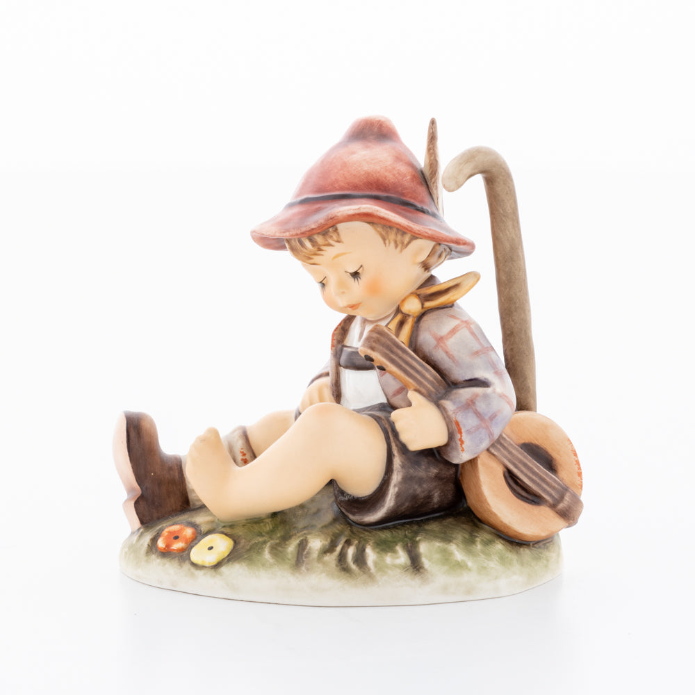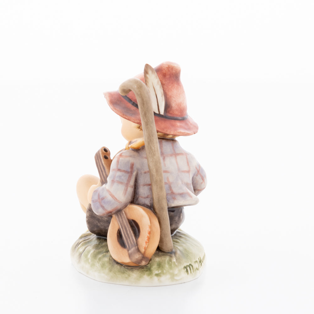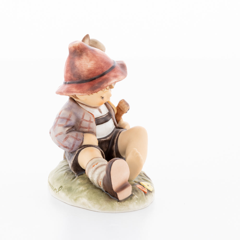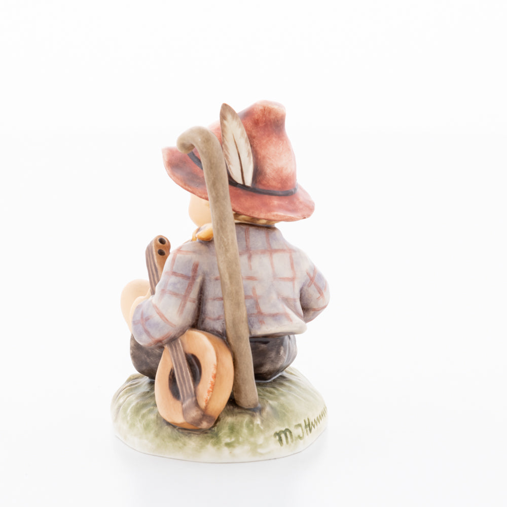 Wie der kleinen Hummel-Figur "So geh i net" ist es schon vielen Wanderern ergangen. Denn der kleine Geselle macht erst einmal Pause, um Strumpf und Schuh auszuziehen, damit ein wenig Luft an den lädierten Fußzeh kommt. Diese original M.I. Hummel-Figur wurde 1986 von Meistermodelleur Gerhard Skrobek geschaffen und verzaubert nun durch die typische Hummel-Optik nicht nur Wanderfreunde mit seinem Charme.