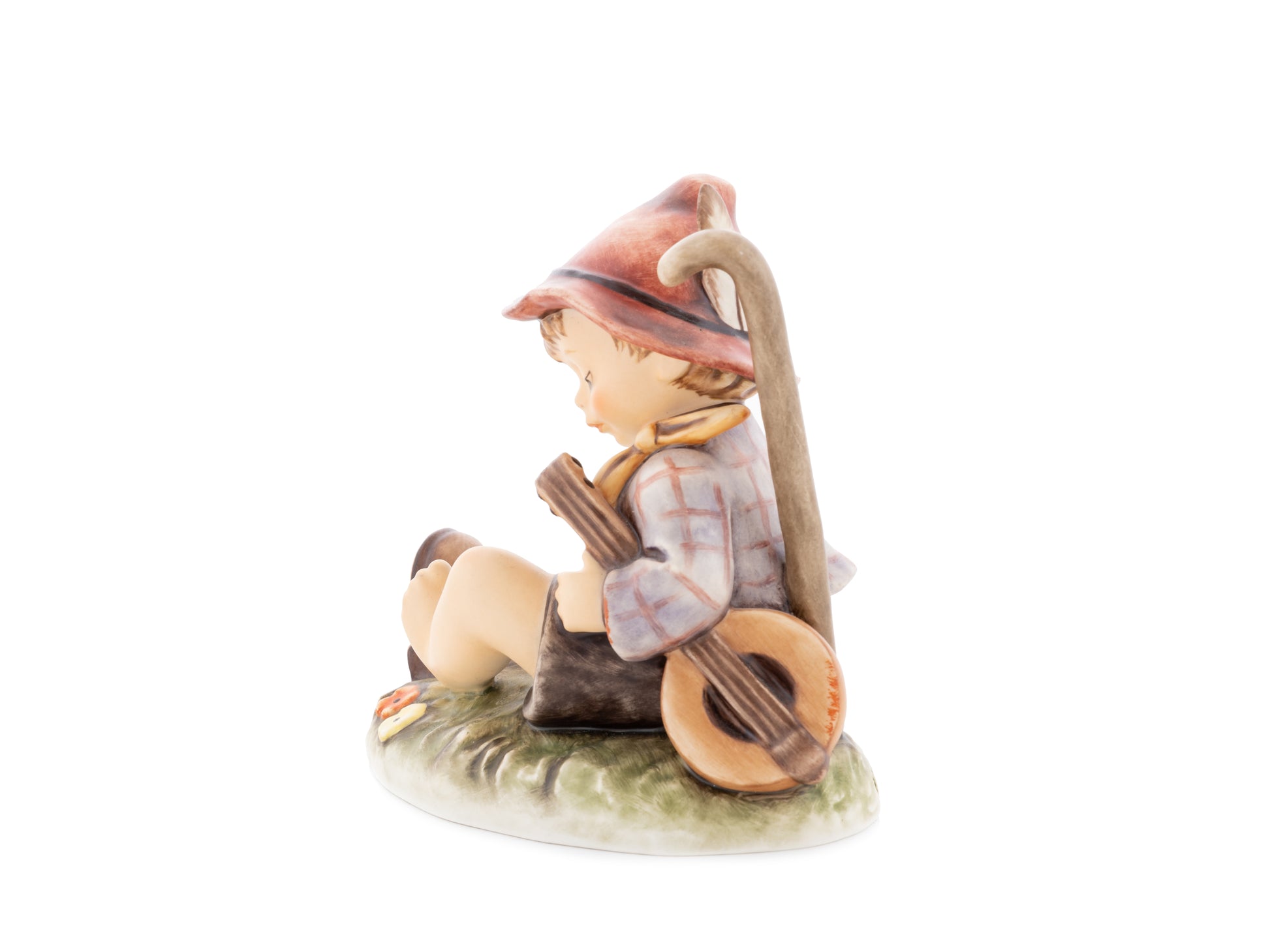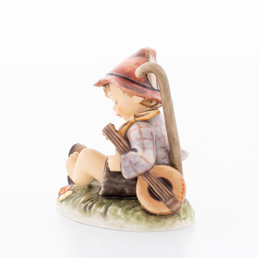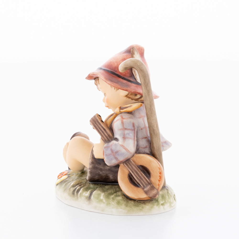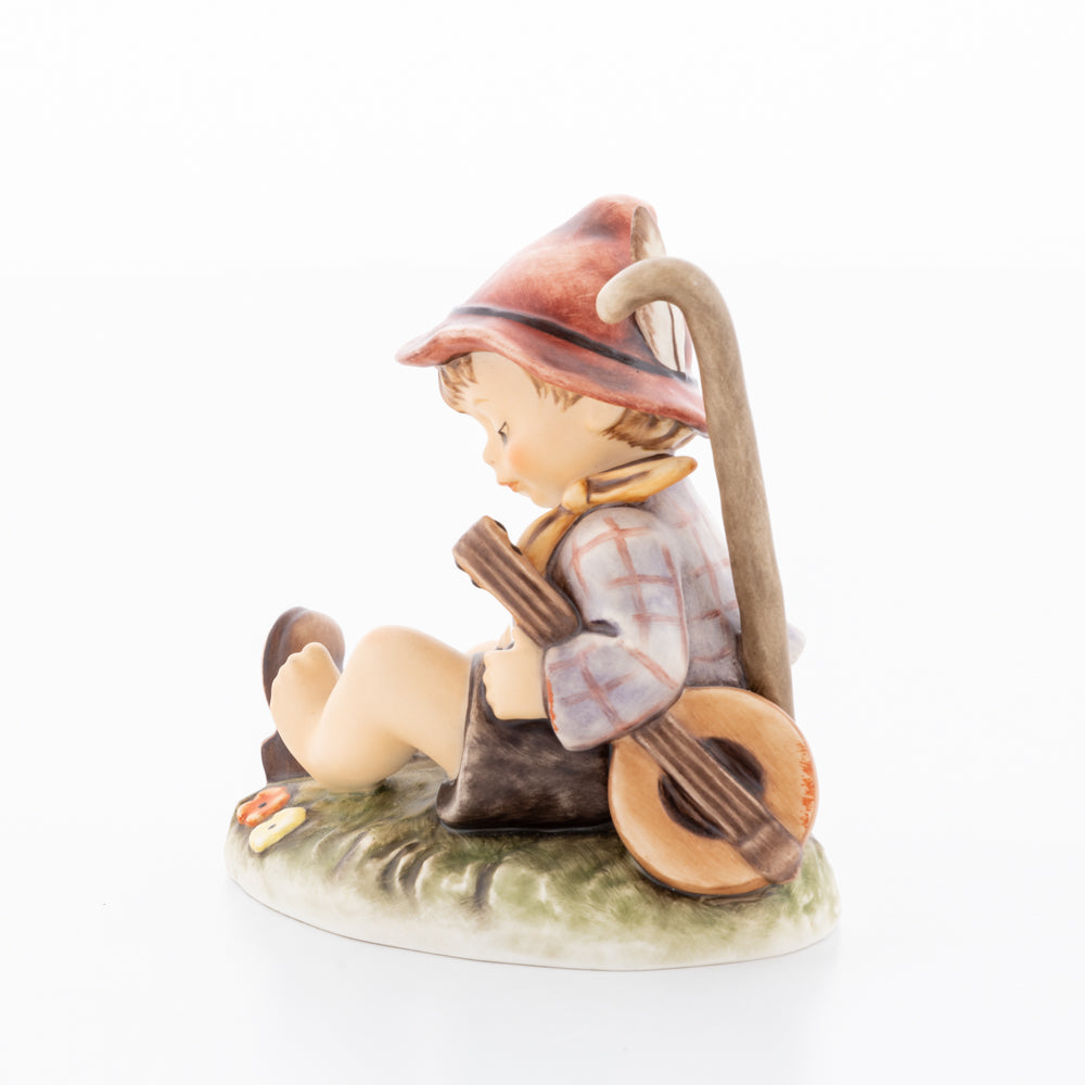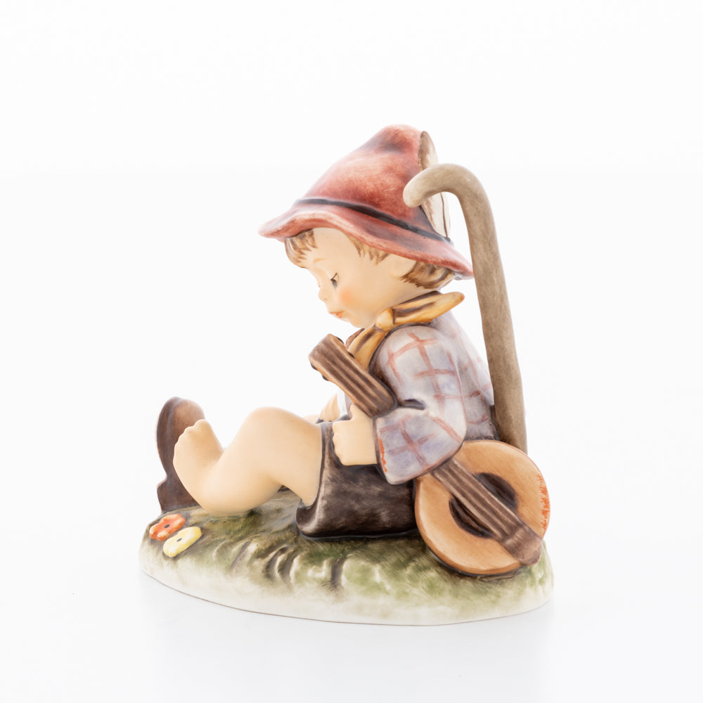 Wie der kleinen Hummel-Figur "So geh i net" ist es schon vielen Wanderern ergangen. Denn der kleine Geselle macht erst einmal Pause, um Strumpf und Schuh auszuziehen, damit ein wenig Luft an den lädierten Fußzeh kommt. Diese original M.I. Hummel-Figur wurde 1986 von Meistermodelleur Gerhard Skrobek geschaffen und verzaubert nun durch die typische Hummel-Optik nicht nur Wanderfreunde mit seinem Charme.