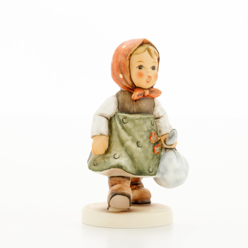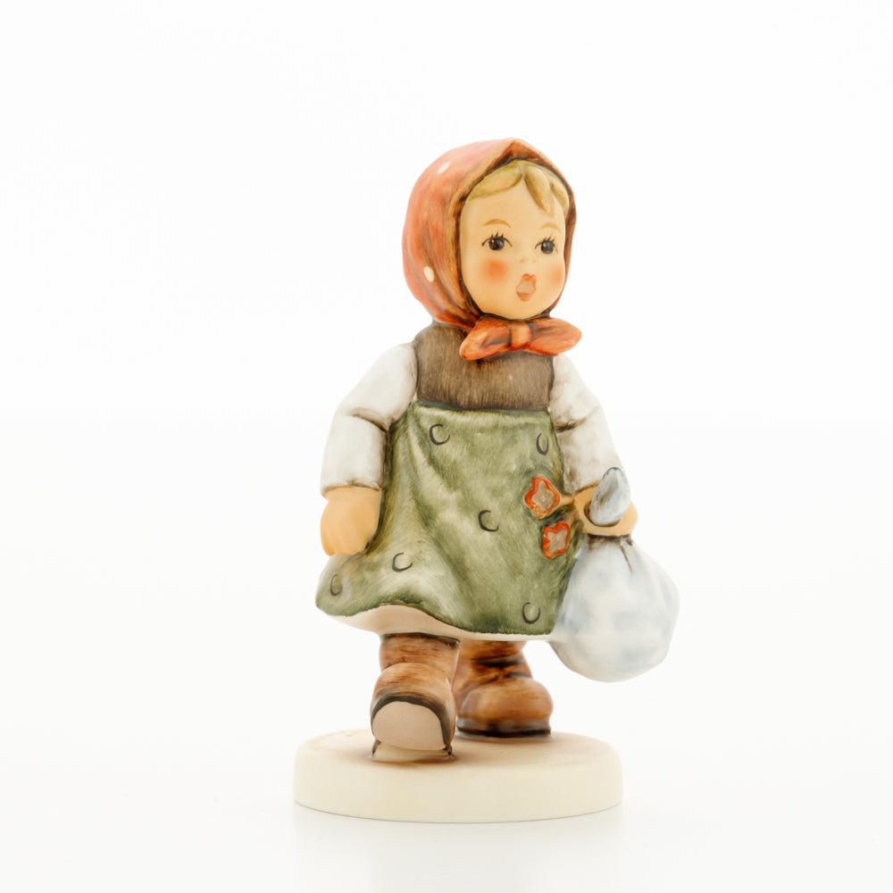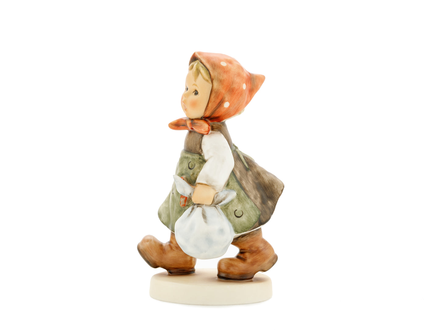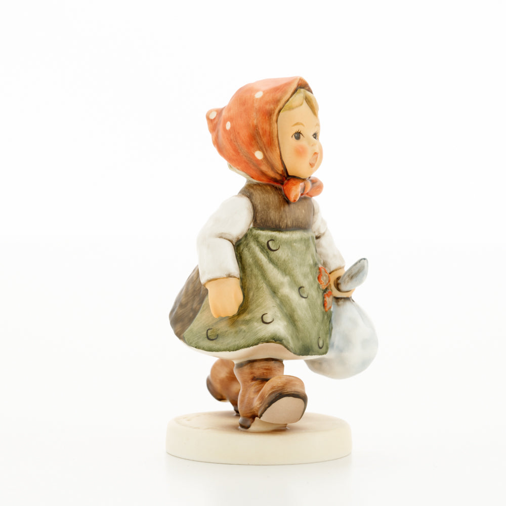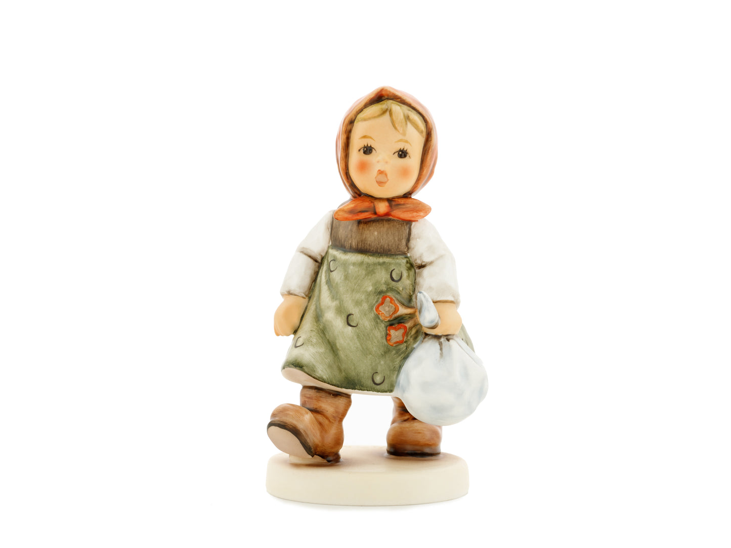 Mit dem Kopftuch auf dem Haupt und einem kleinen Beutelchen in der Hand marschiert das kleine Hummel-Mädchen los. Denn sie möchte der Großmutter einen Besuch abstatten. So wurde die original M.I. Hummel-Figur auf den Namen "Großmutter wartet" getauft. Aber ganz unbekannt ist das Mädchen aus dem Hause Hummel nicht. Denn die größere Variante der Hummel-Figur findet sich in der Figur "Wanderfreunde" (HUM 383) wieder. Erschaffen wurde die Keramikfigur 1989 von Helmut Fischer und kam im Sommer 1990 auf den amerikanischen Markt. Die passende Partnerfigur zu "Großmutter wartet" ist indes "Großvater wartet" (HUM 562) und fügt sich wunderbar an die Großmutter-Figur.