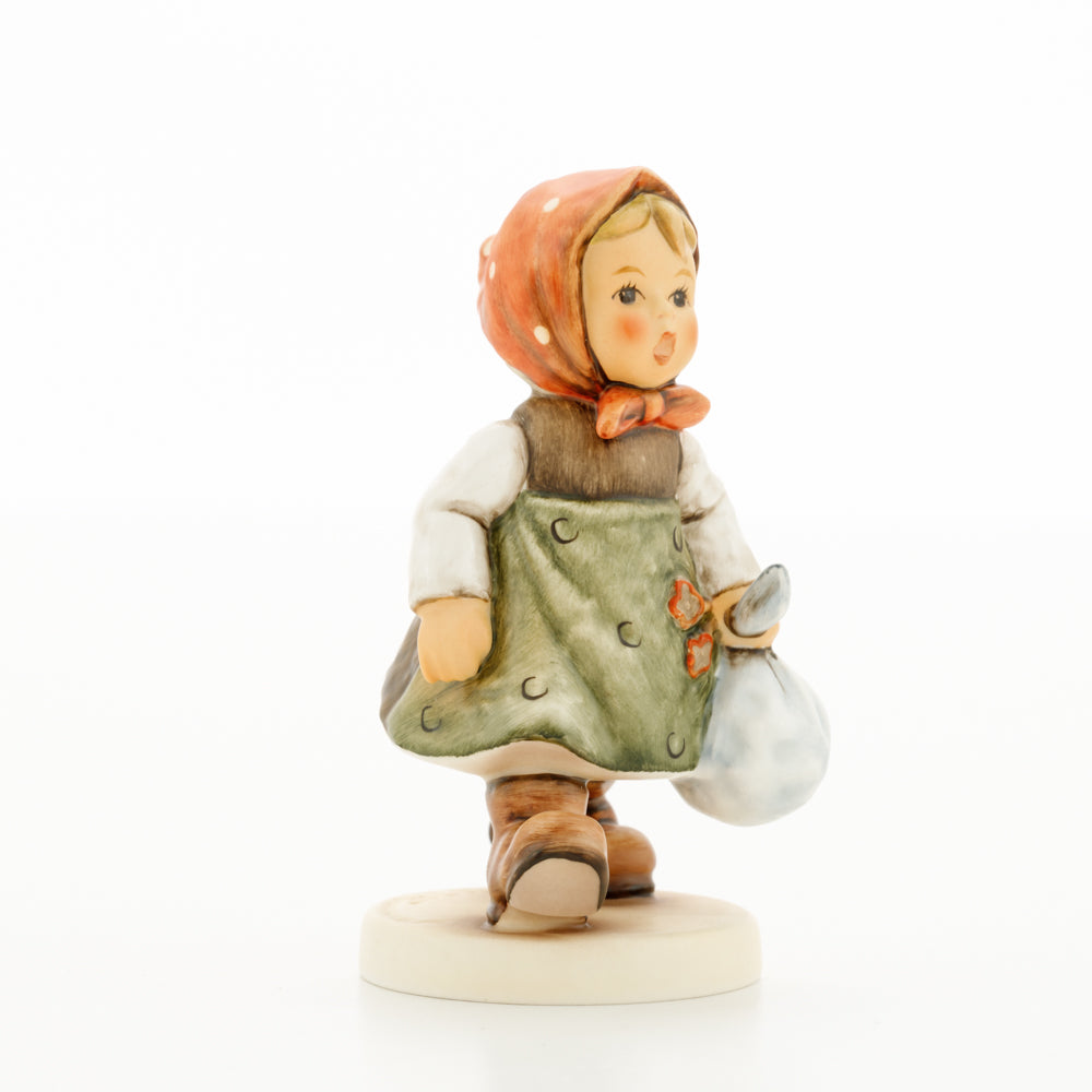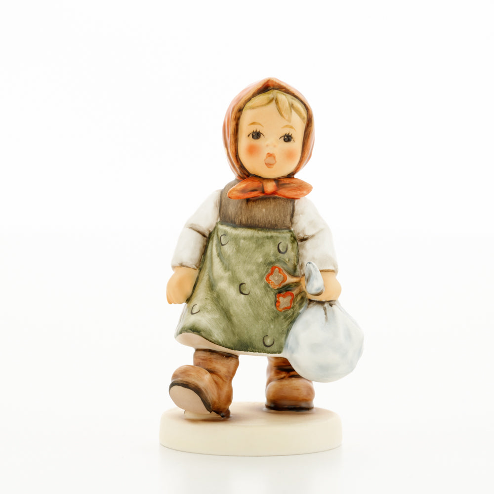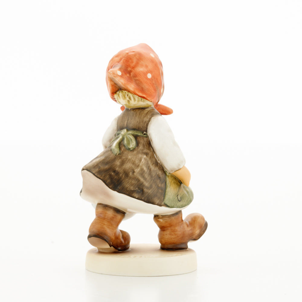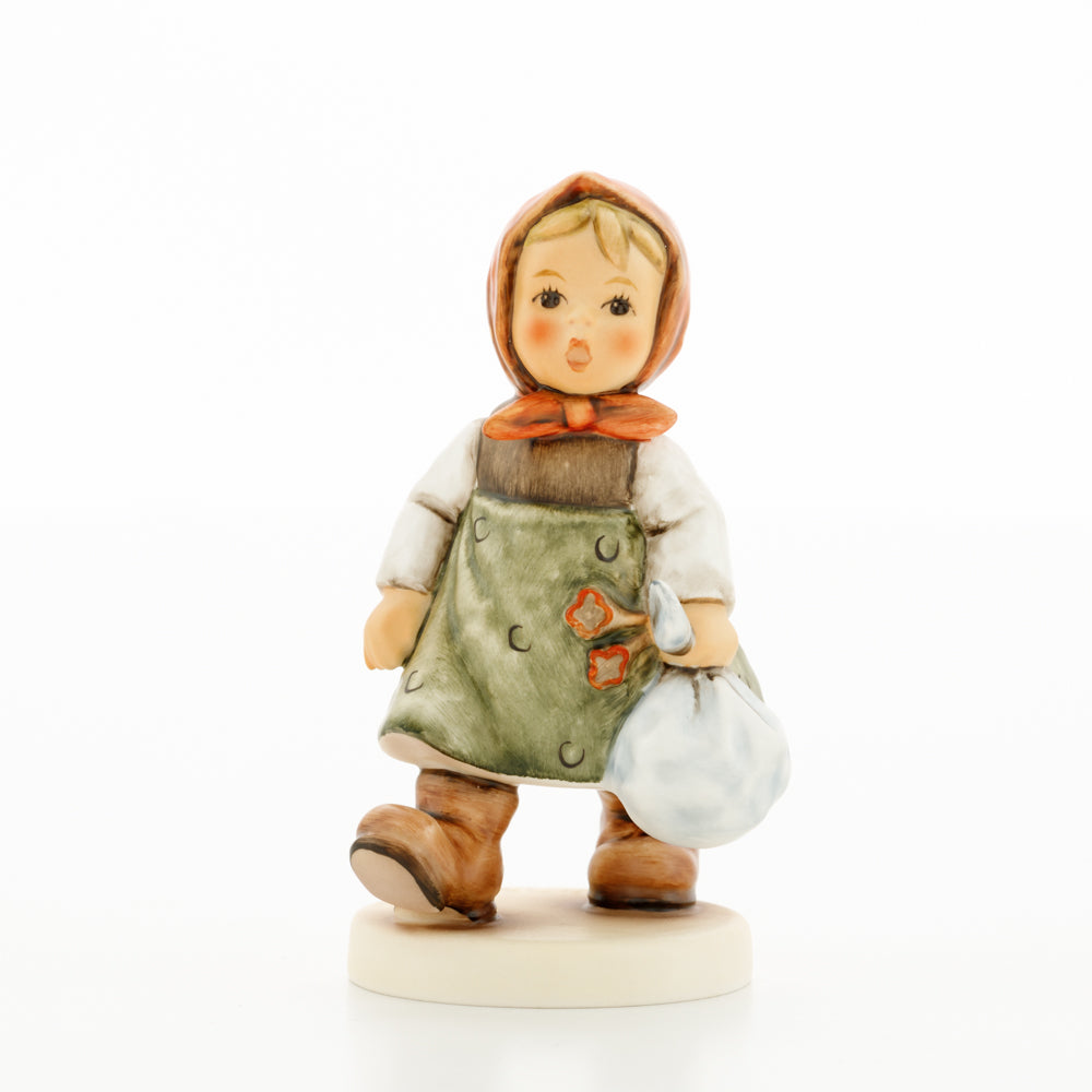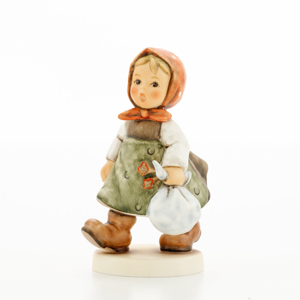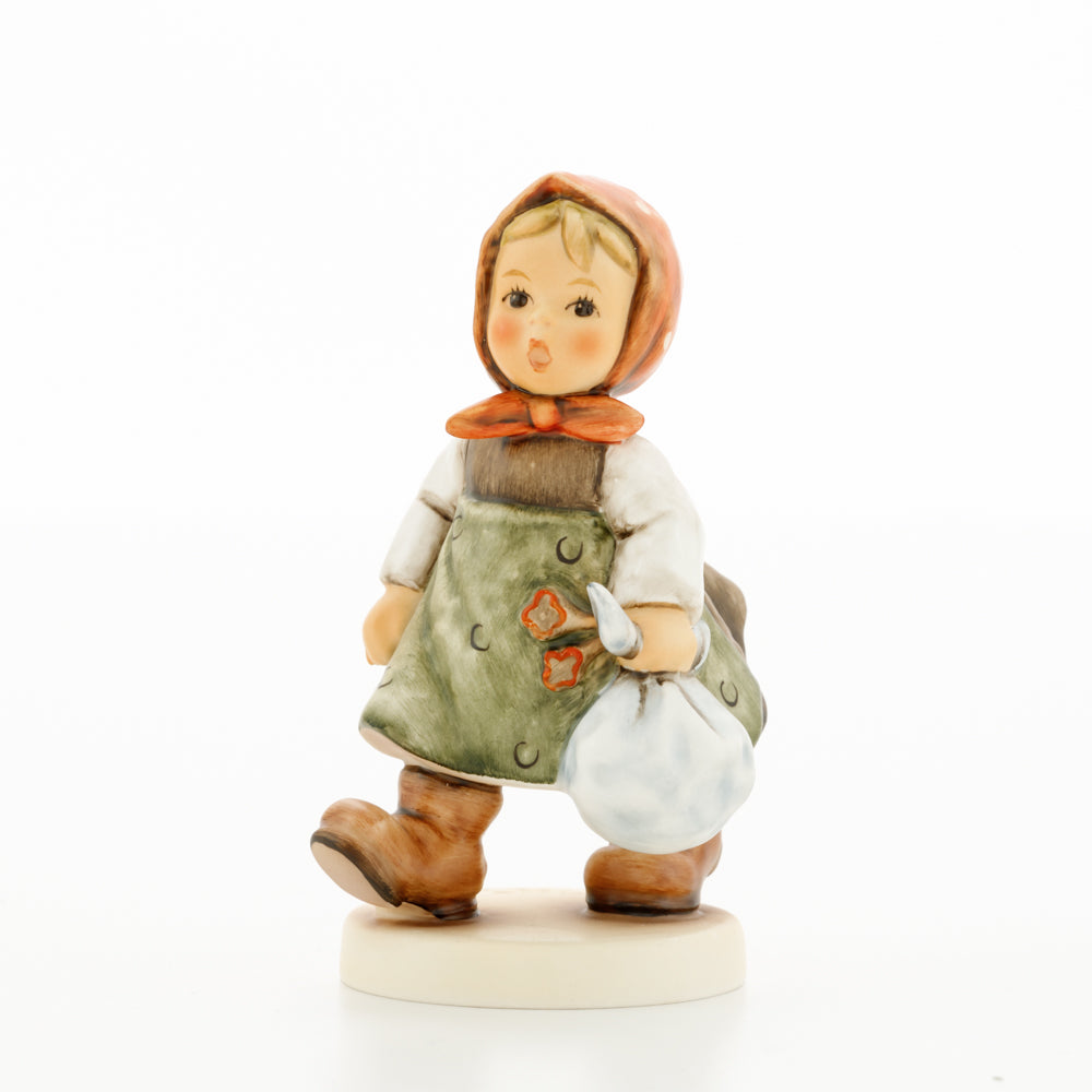 Mit dem Kopftuch auf dem Haupt und einem kleinen Beutelchen in der Hand marschiert das kleine Hummel-Mädchen los. Denn sie möchte der Großmutter einen Besuch abstatten. So wurde die original M.I. Hummel-Figur auf den Namen "Großmutter wartet" getauft. Aber ganz unbekannt ist das Mädchen aus dem Hause Hummel nicht. Denn die größere Variante der Hummel-Figur findet sich in der Figur "Wanderfreunde" (HUM 383) wieder. Erschaffen wurde die Keramikfigur 1989 von Helmut Fischer und kam im Sommer 1990 auf den amerikanischen Markt. Die passende Partnerfigur zu "Großmutter wartet" ist indes "Großvater wartet" (HUM 562) und fügt sich wunderbar an die Großmutter-Figur.