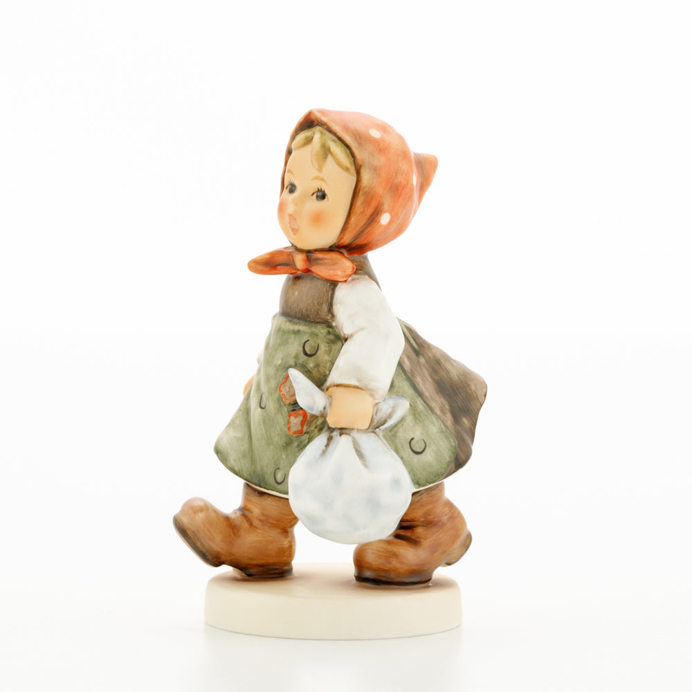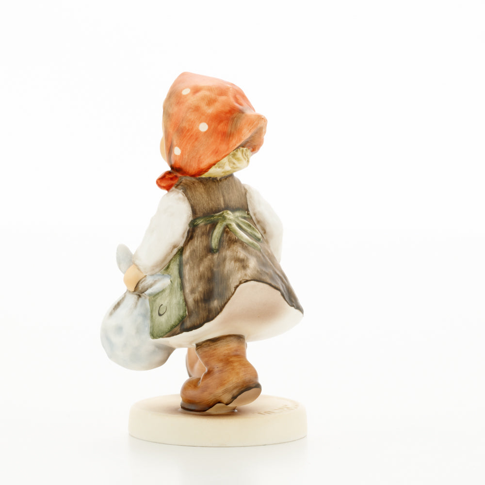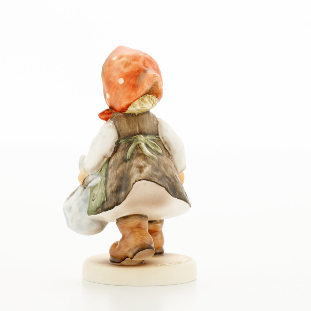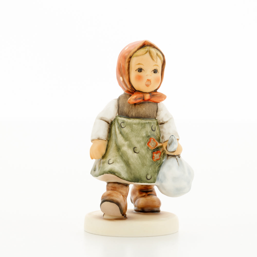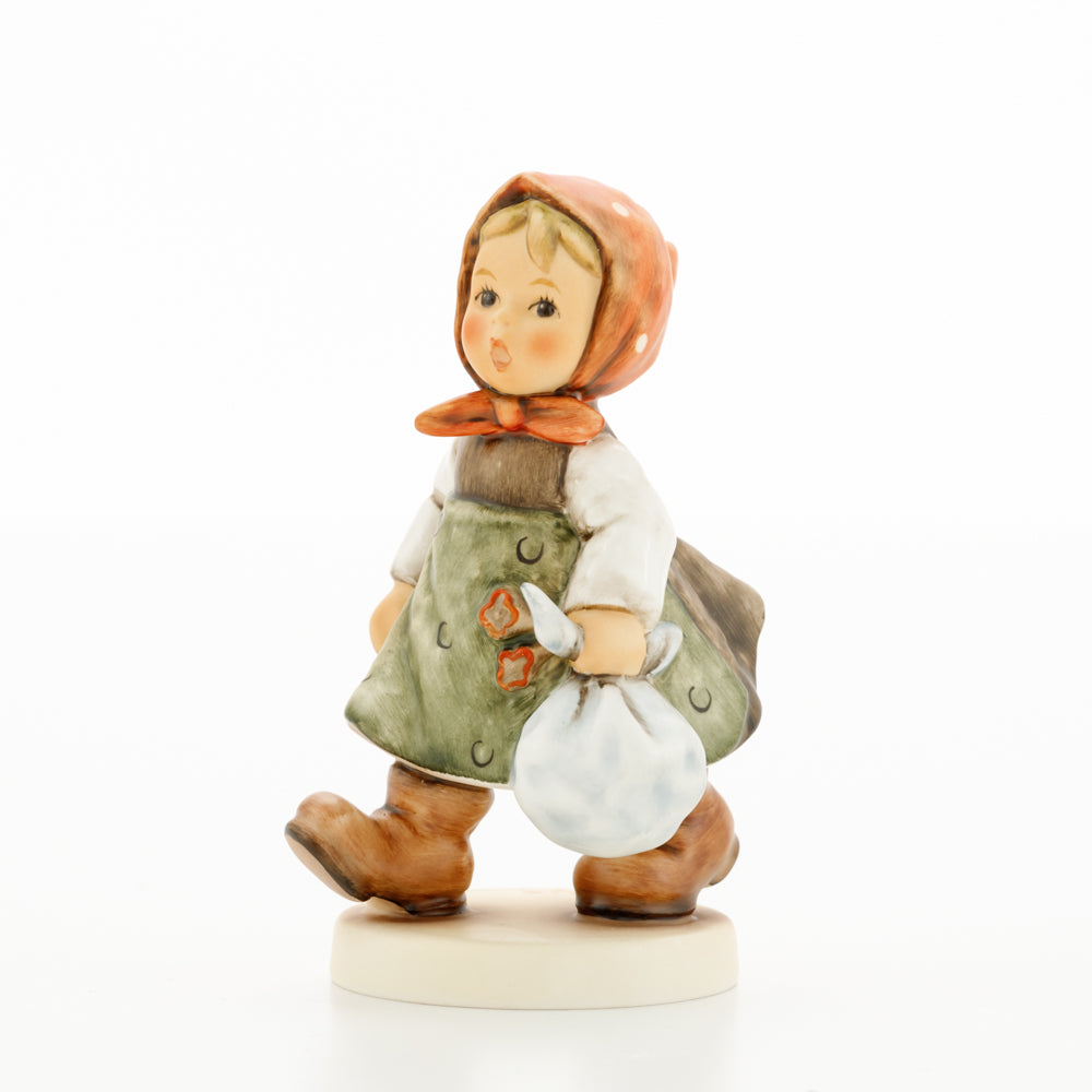 Mit dem Kopftuch auf dem Haupt und einem kleinen Beutelchen in der Hand marschiert das kleine Hummel-Mädchen los. Denn sie möchte der Großmutter einen Besuch abstatten. So wurde die original M.I. Hummel-Figur auf den Namen "Großmutter wartet" getauft. Aber ganz unbekannt ist das Mädchen aus dem Hause Hummel nicht. Denn die größere Variante der Hummel-Figur findet sich in der Figur "Wanderfreunde" (HUM 383) wieder. Erschaffen wurde die Keramikfigur 1989 von Helmut Fischer und kam im Sommer 1990 auf den amerikanischen Markt. Die passende Partnerfigur zu "Großmutter wartet" ist indes "Großvater wartet" (HUM 562) und fügt sich wunderbar an die Großmutter-Figur.