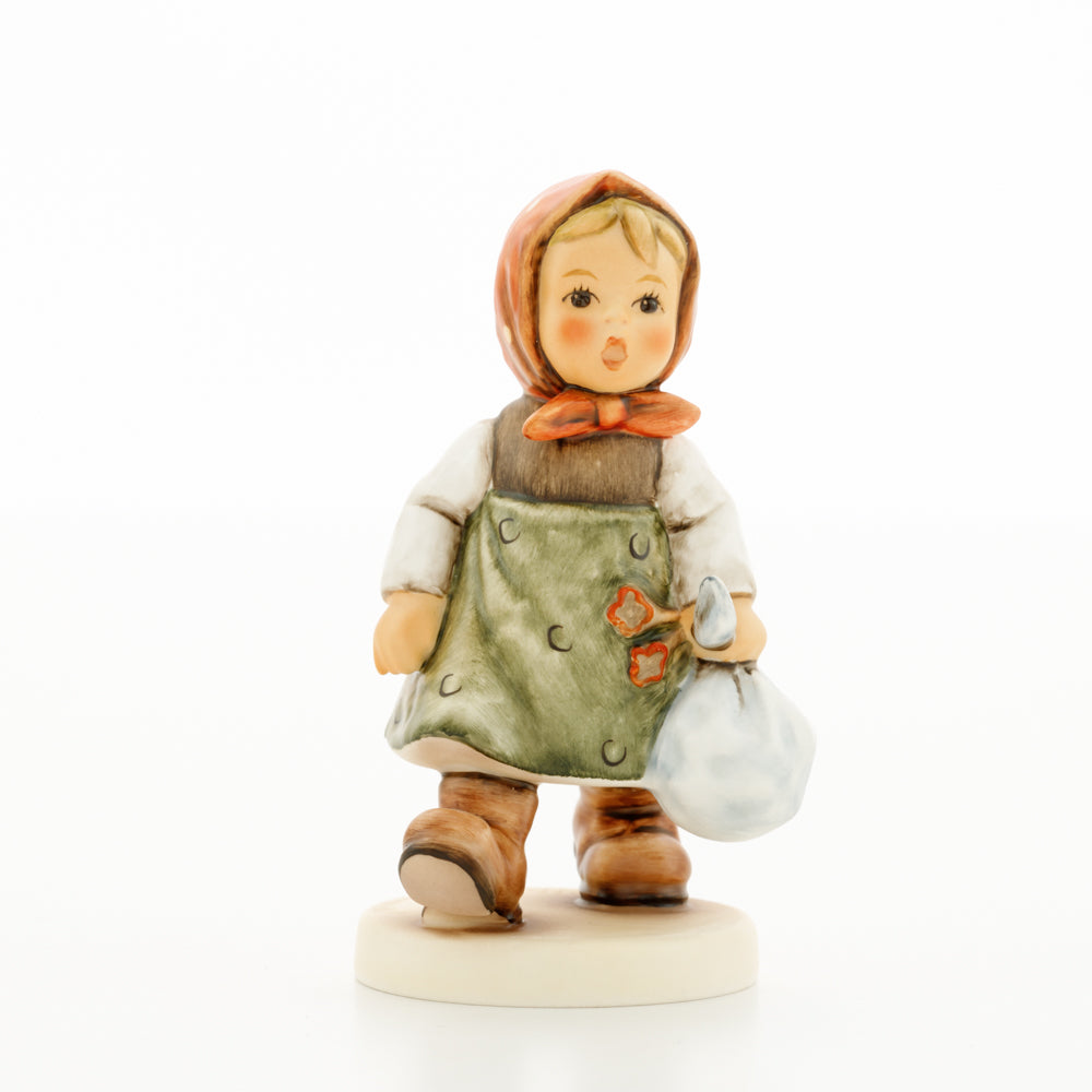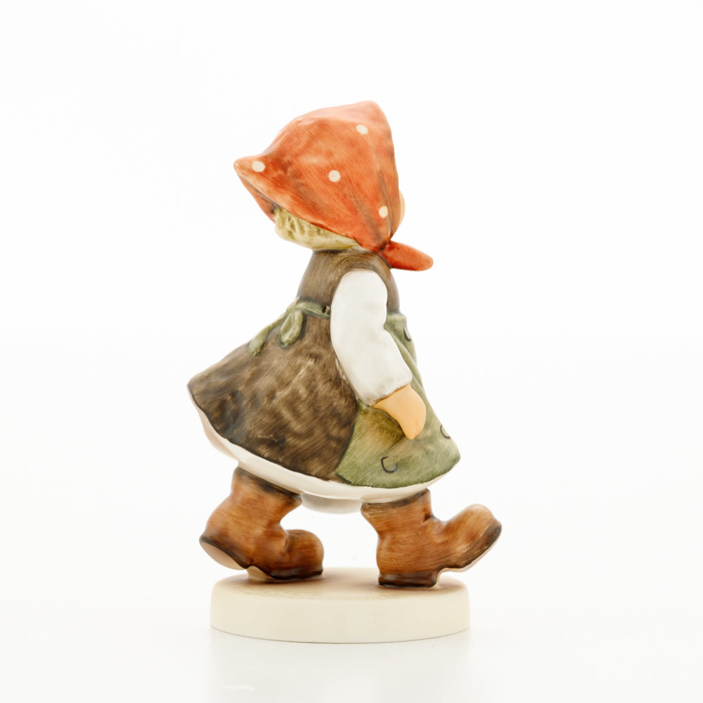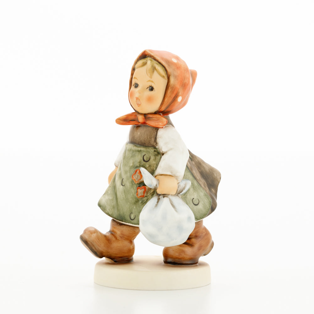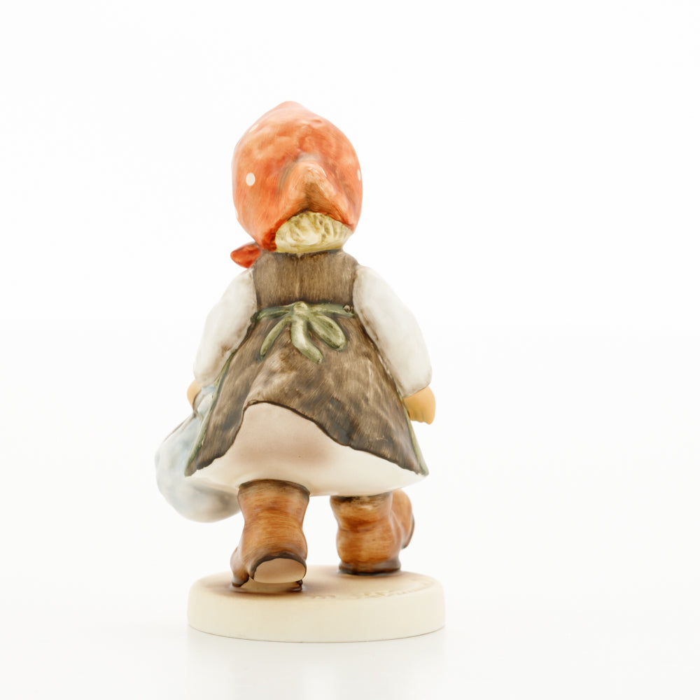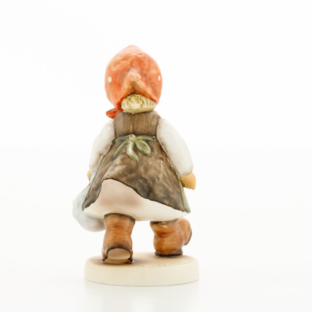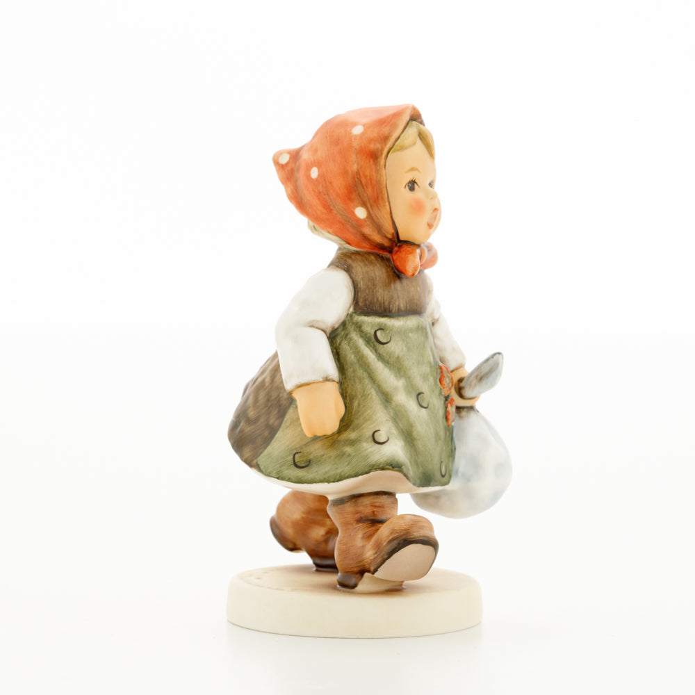 Mit dem Kopftuch auf dem Haupt und einem kleinen Beutelchen in der Hand marschiert das kleine Hummel-Mädchen los. Denn sie möchte der Großmutter einen Besuch abstatten. So wurde die original M.I. Hummel-Figur auf den Namen "Großmutter wartet" getauft. Aber ganz unbekannt ist das Mädchen aus dem Hause Hummel nicht. Denn die größere Variante der Hummel-Figur findet sich in der Figur "Wanderfreunde" (HUM 383) wieder. Erschaffen wurde die Keramikfigur 1989 von Helmut Fischer und kam im Sommer 1990 auf den amerikanischen Markt. Die passende Partnerfigur zu "Großmutter wartet" ist indes "Großvater wartet" (HUM 562) und fügt sich wunderbar an die Großmutter-Figur.
