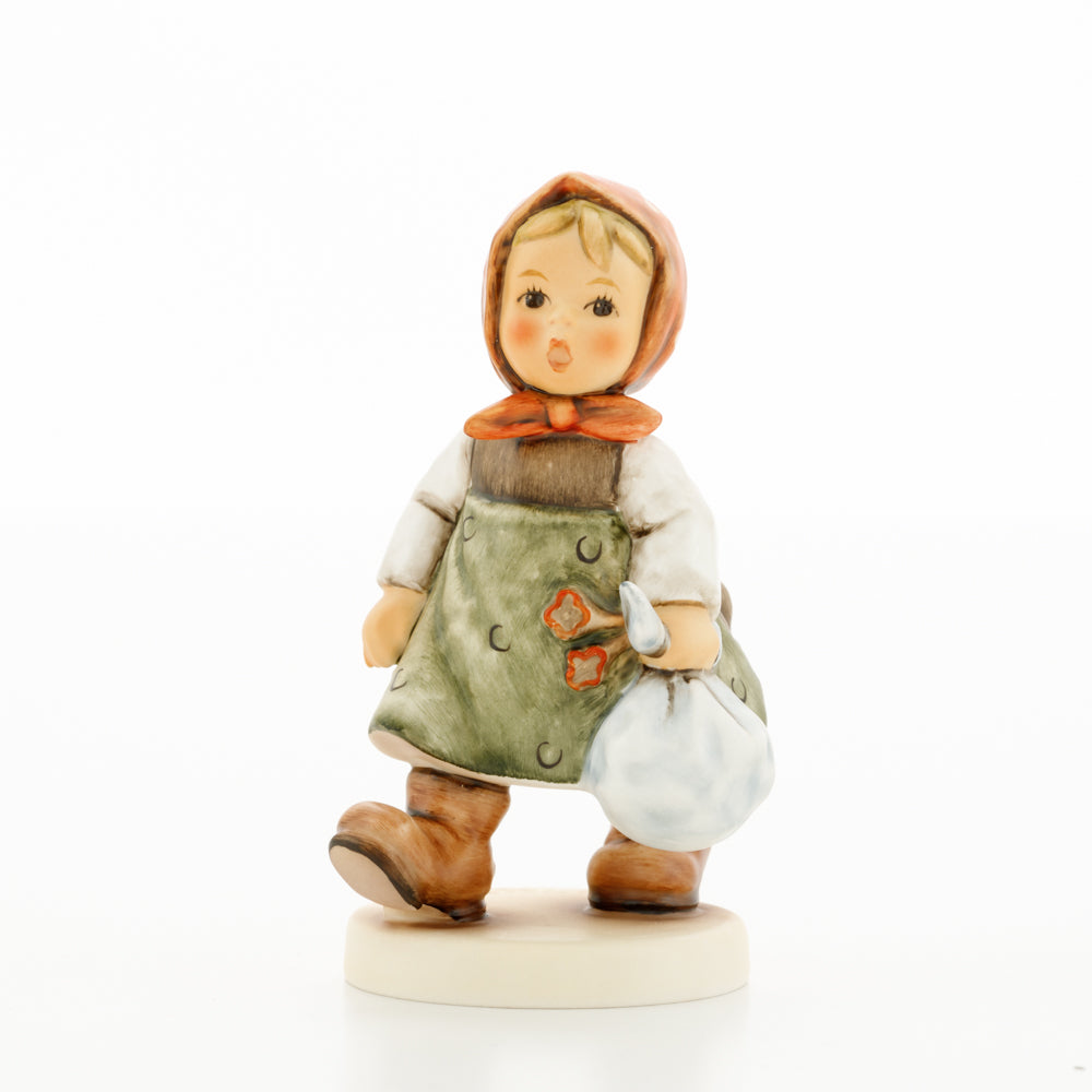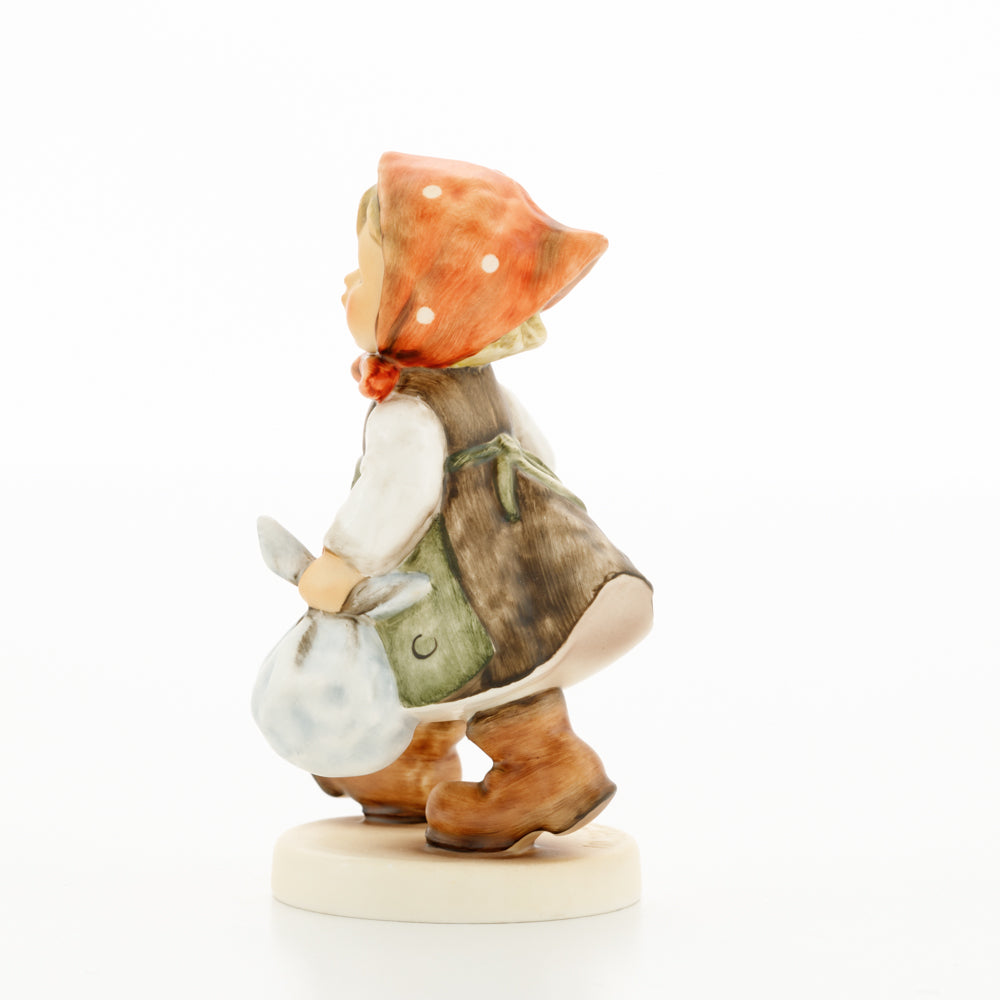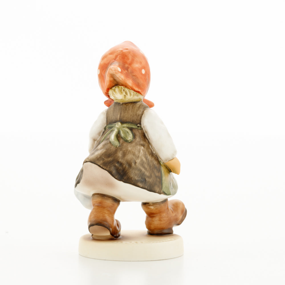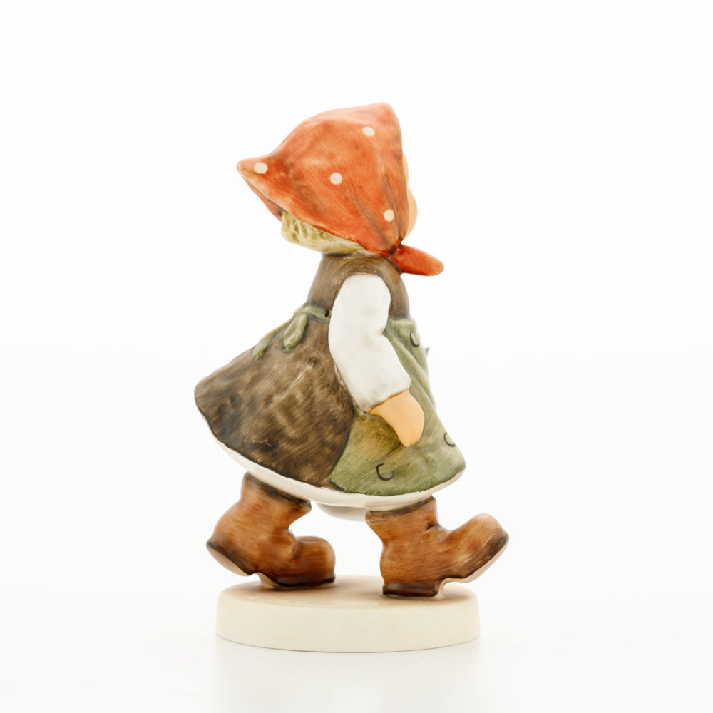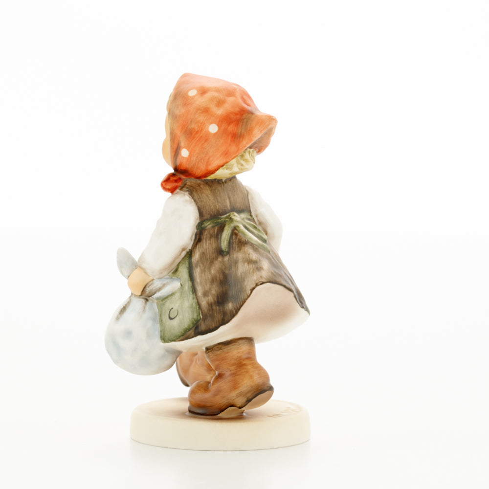 Mit dem Kopftuch auf dem Haupt und einem kleinen Beutelchen in der Hand marschiert das kleine Hummel-Mädchen los. Denn sie möchte der Großmutter einen Besuch abstatten. So wurde die original M.I. Hummel-Figur auf den Namen "Großmutter wartet" getauft. Aber ganz unbekannt ist das Mädchen aus dem Hause Hummel nicht. Denn die größere Variante der Hummel-Figur findet sich in der Figur "Wanderfreunde" (HUM 383) wieder. Erschaffen wurde die Keramikfigur 1989 von Helmut Fischer und kam im Sommer 1990 auf den amerikanischen Markt. Die passende Partnerfigur zu "Großmutter wartet" ist indes "Großvater wartet" (HUM 562) und fügt sich wunderbar an die Großmutter-Figur.