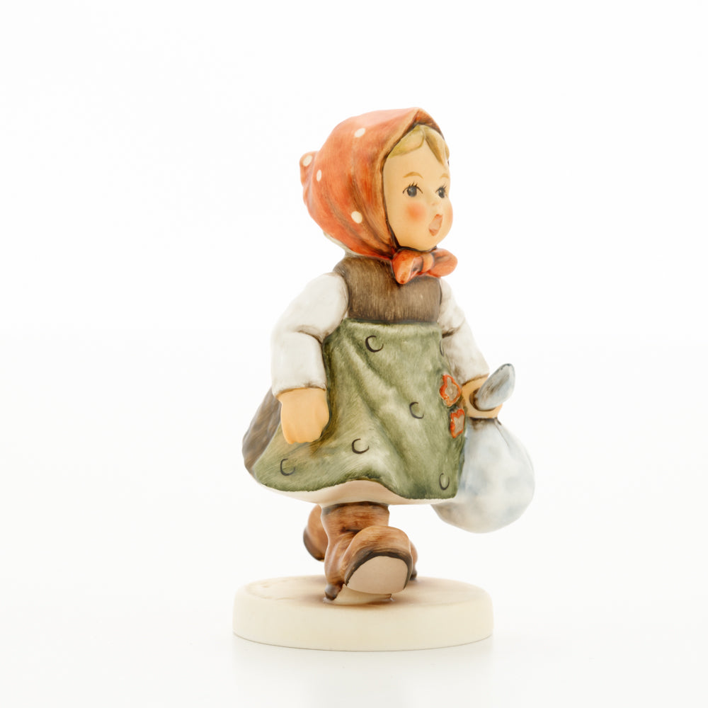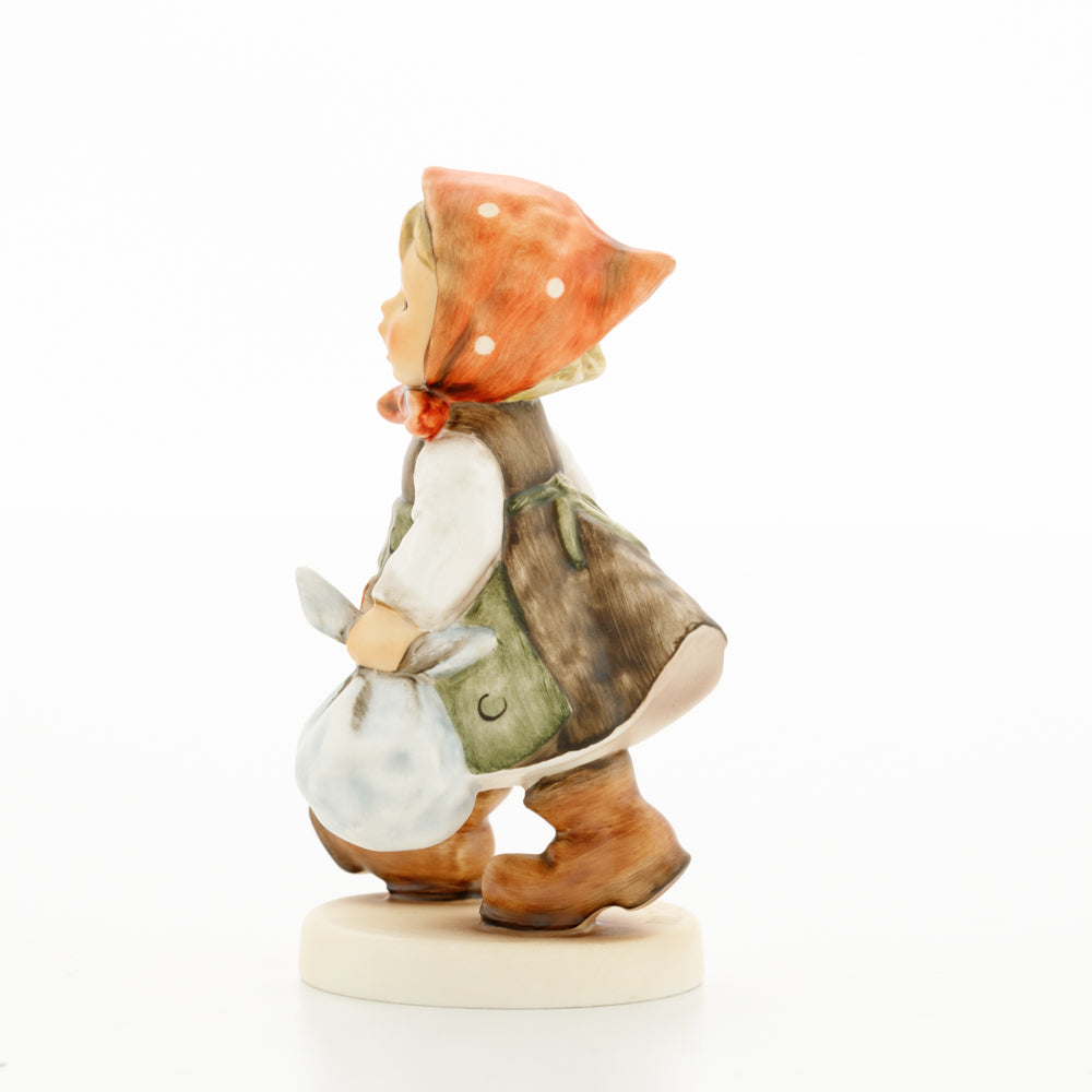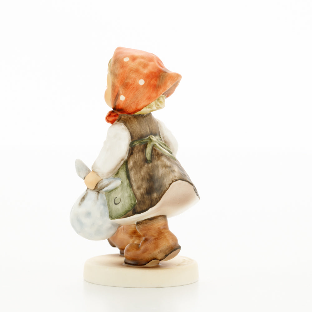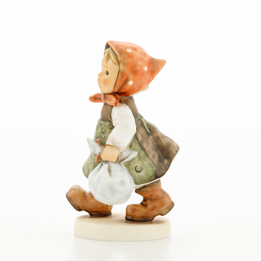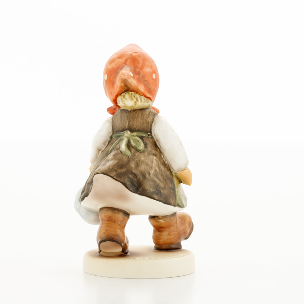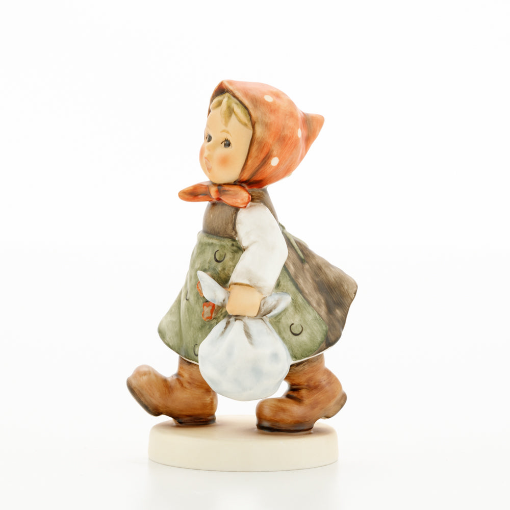 Mit dem Kopftuch auf dem Haupt und einem kleinen Beutelchen in der Hand marschiert das kleine Hummel-Mädchen los. Denn sie möchte der Großmutter einen Besuch abstatten. So wurde die original M.I. Hummel-Figur auf den Namen "Großmutter wartet" getauft. Aber ganz unbekannt ist das Mädchen aus dem Hause Hummel nicht. Denn die größere Variante der Hummel-Figur findet sich in der Figur "Wanderfreunde" (HUM 383) wieder. Erschaffen wurde die Keramikfigur 1989 von Helmut Fischer und kam im Sommer 1990 auf den amerikanischen Markt. Die passende Partnerfigur zu "Großmutter wartet" ist indes "Großvater wartet" (HUM 562) und fügt sich wunderbar an die Großmutter-Figur.