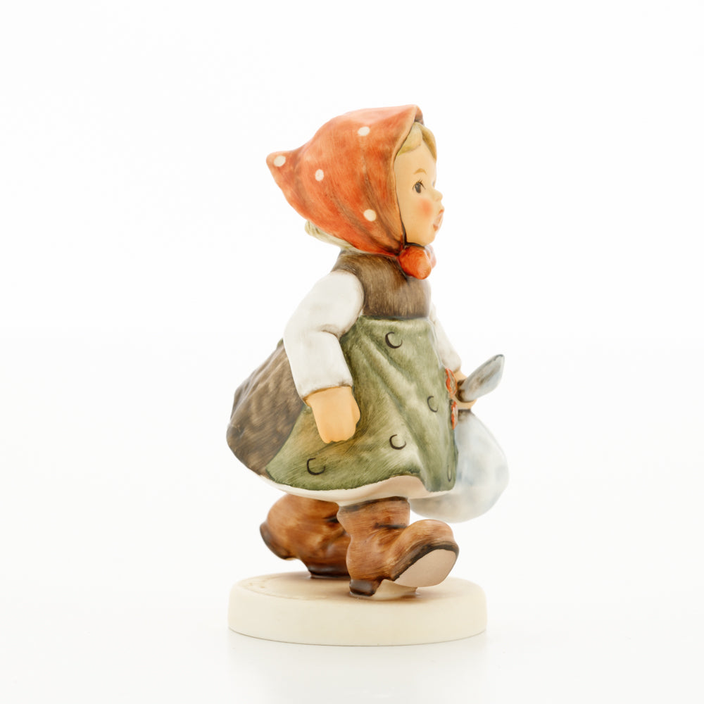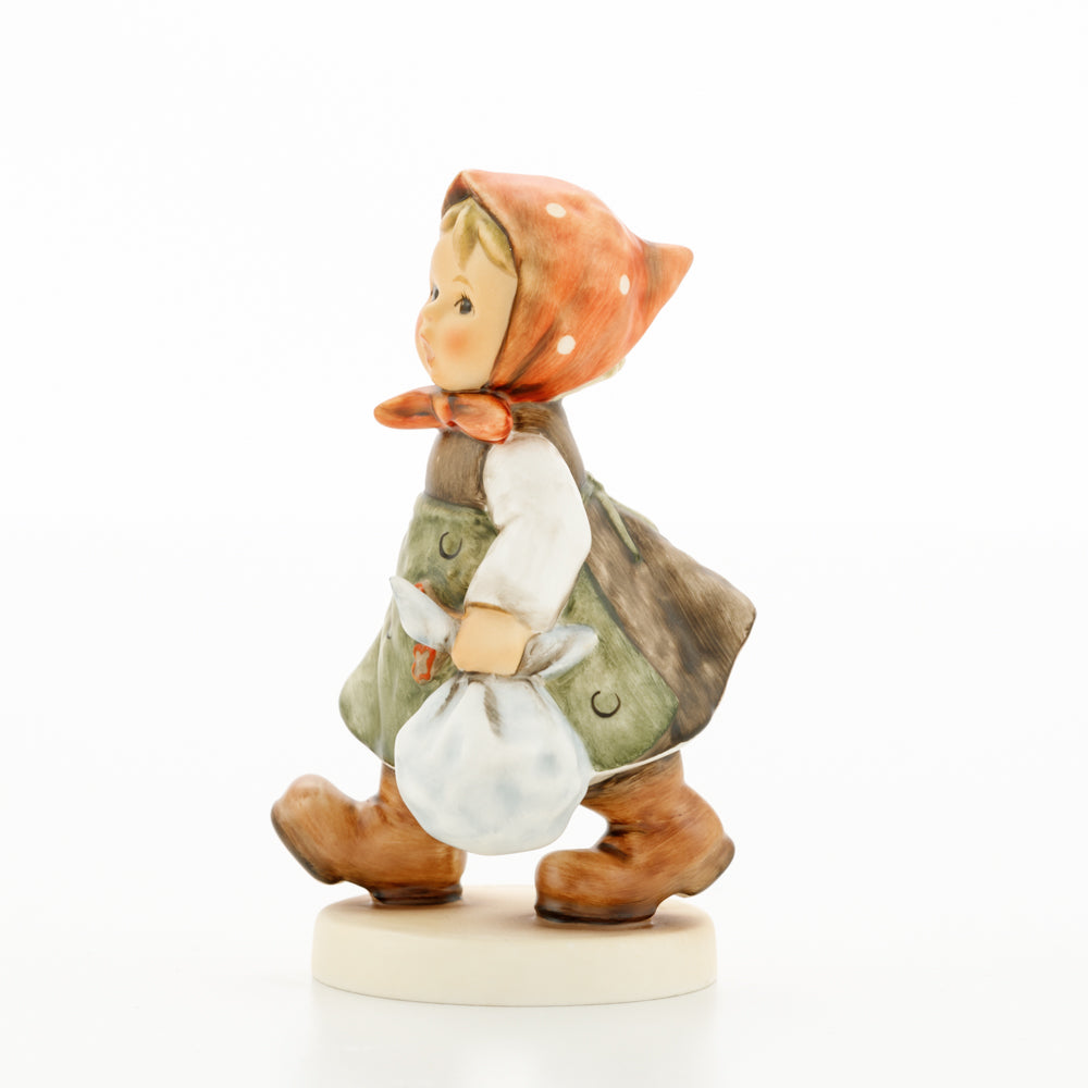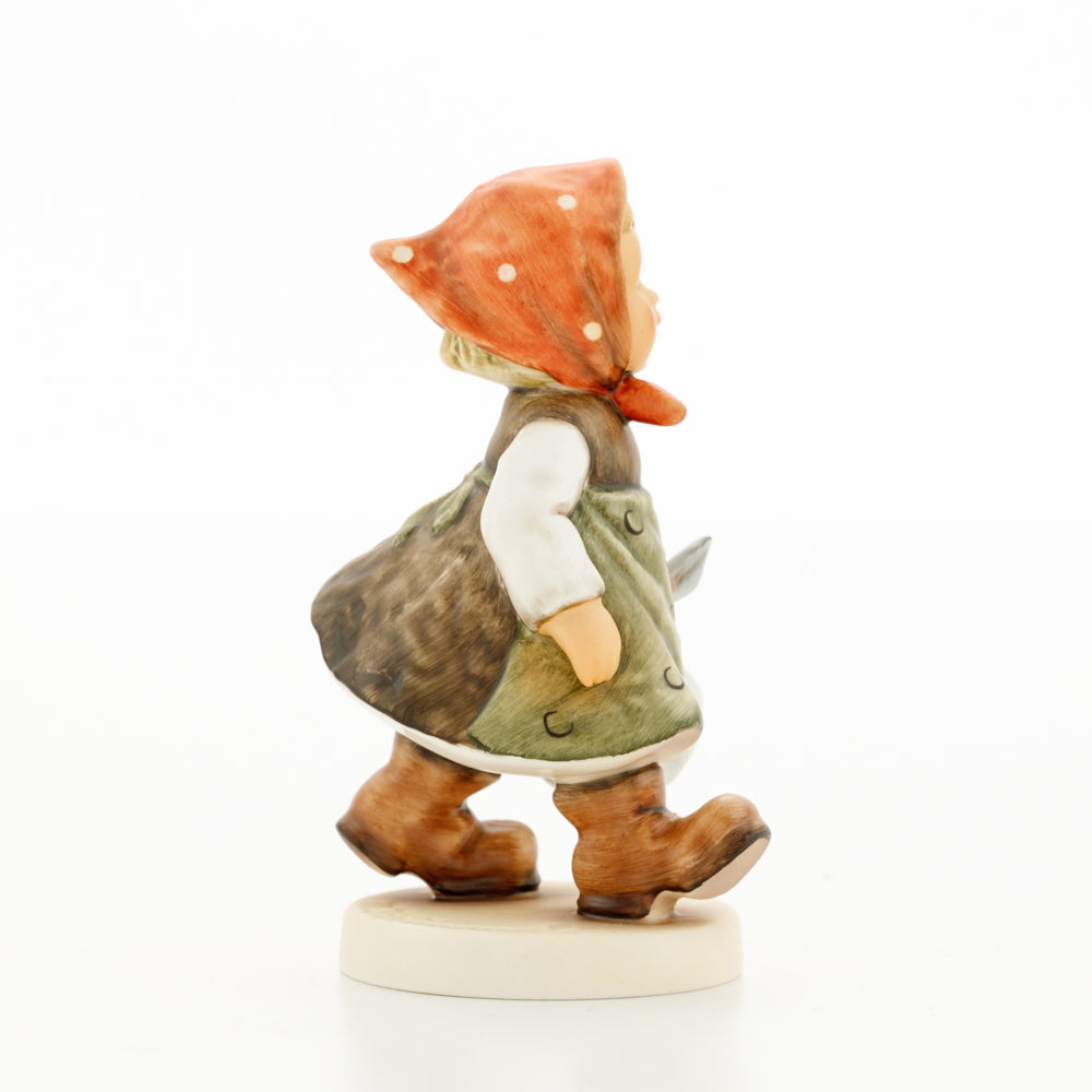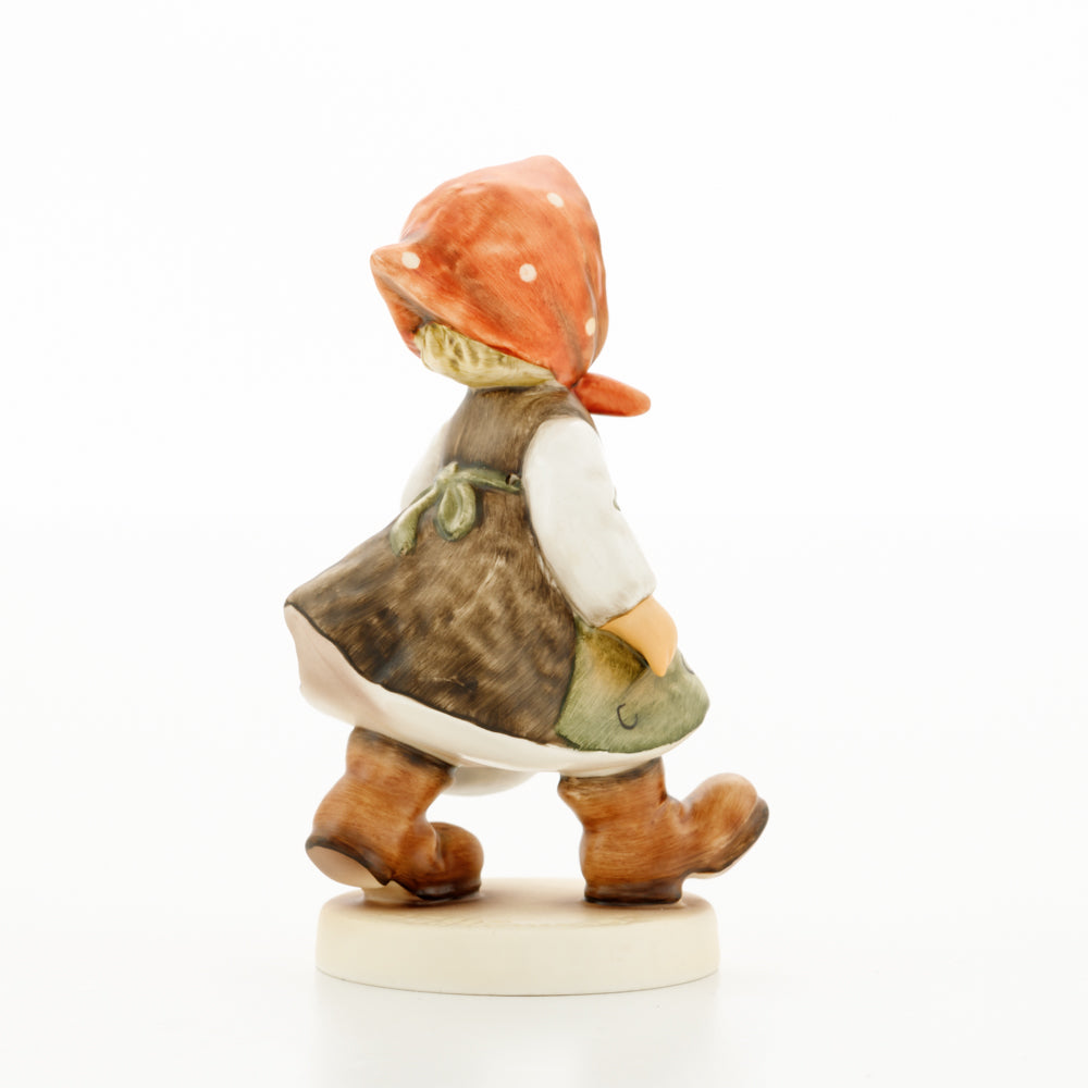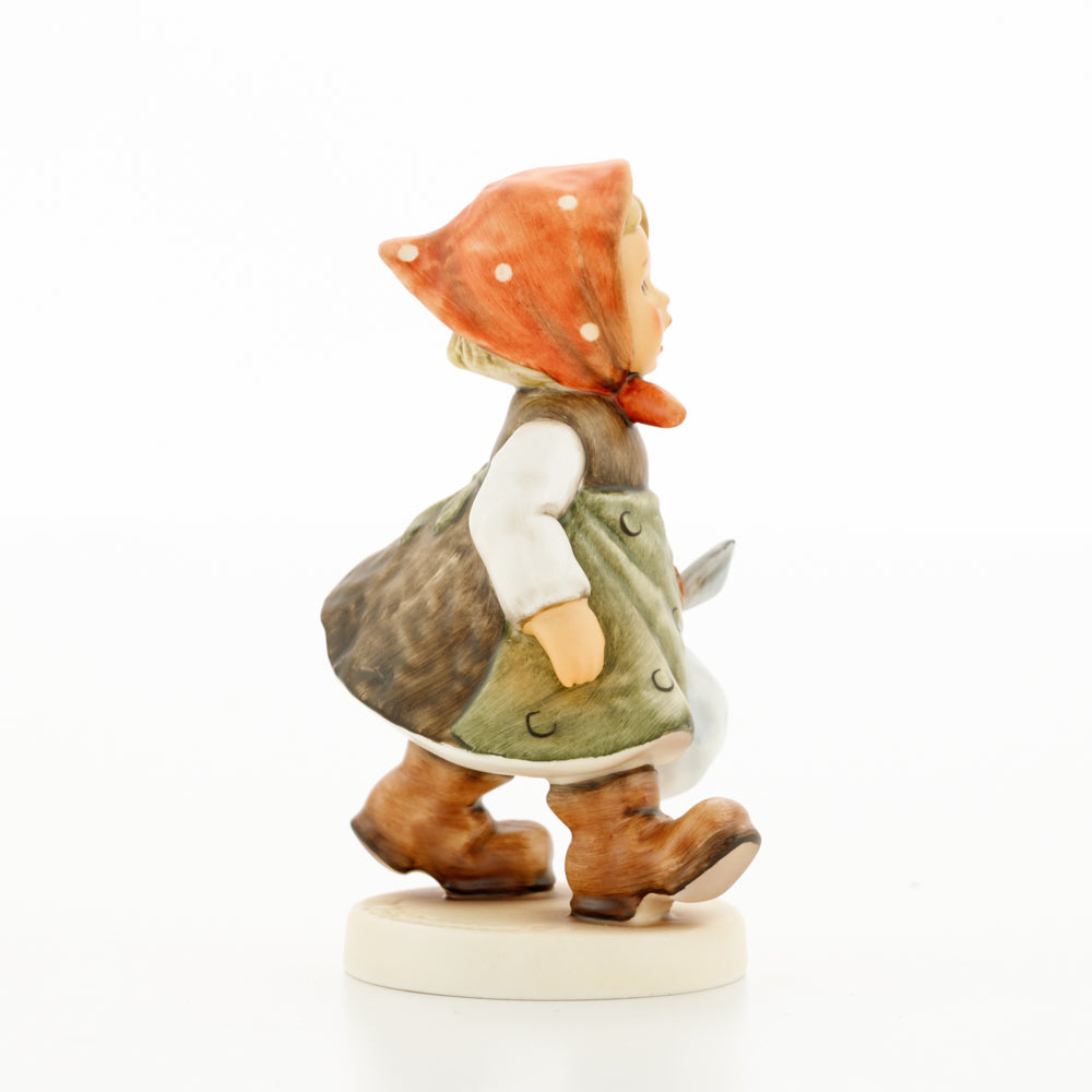 Mit dem Kopftuch auf dem Haupt und einem kleinen Beutelchen in der Hand marschiert das kleine Hummel-Mädchen los. Denn sie möchte der Großmutter einen Besuch abstatten. So wurde die original M.I. Hummel-Figur auf den Namen "Großmutter wartet" getauft. Aber ganz unbekannt ist das Mädchen aus dem Hause Hummel nicht. Denn die größere Variante der Hummel-Figur findet sich in der Figur "Wanderfreunde" (HUM 383) wieder. Erschaffen wurde die Keramikfigur 1989 von Helmut Fischer und kam im Sommer 1990 auf den amerikanischen Markt. Die passende Partnerfigur zu "Großmutter wartet" ist indes "Großvater wartet" (HUM 562) und fügt sich wunderbar an die Großmutter-Figur.