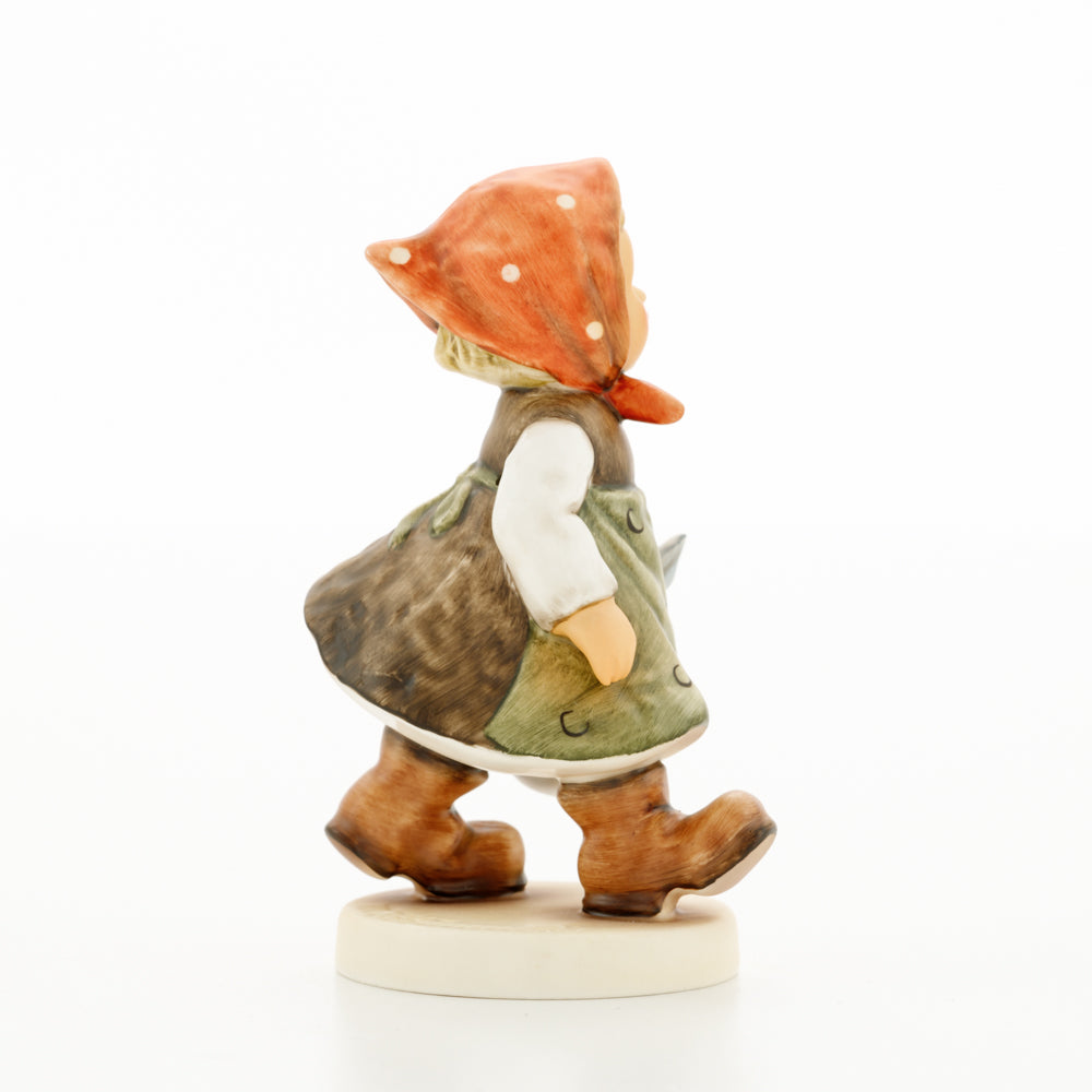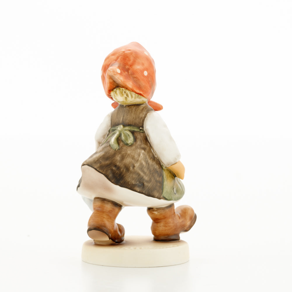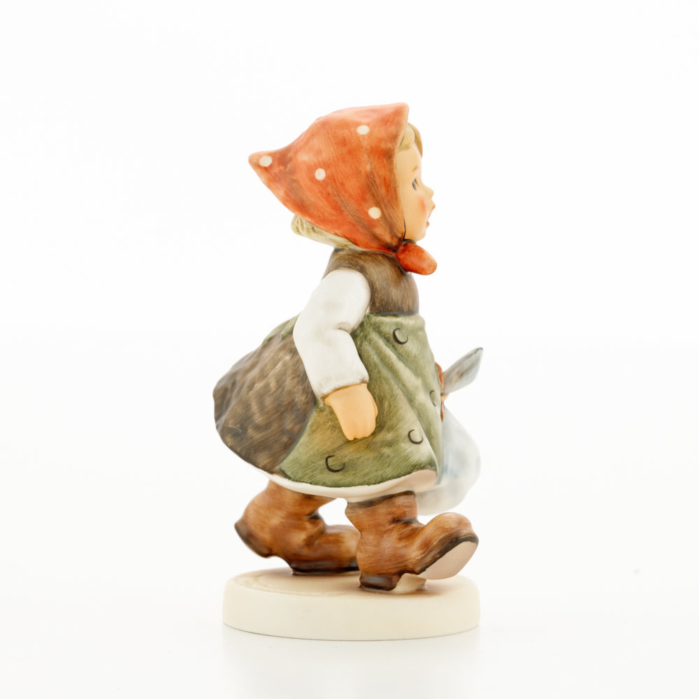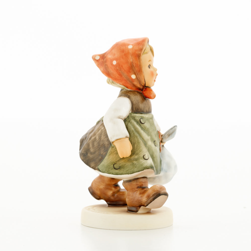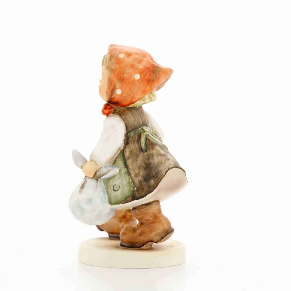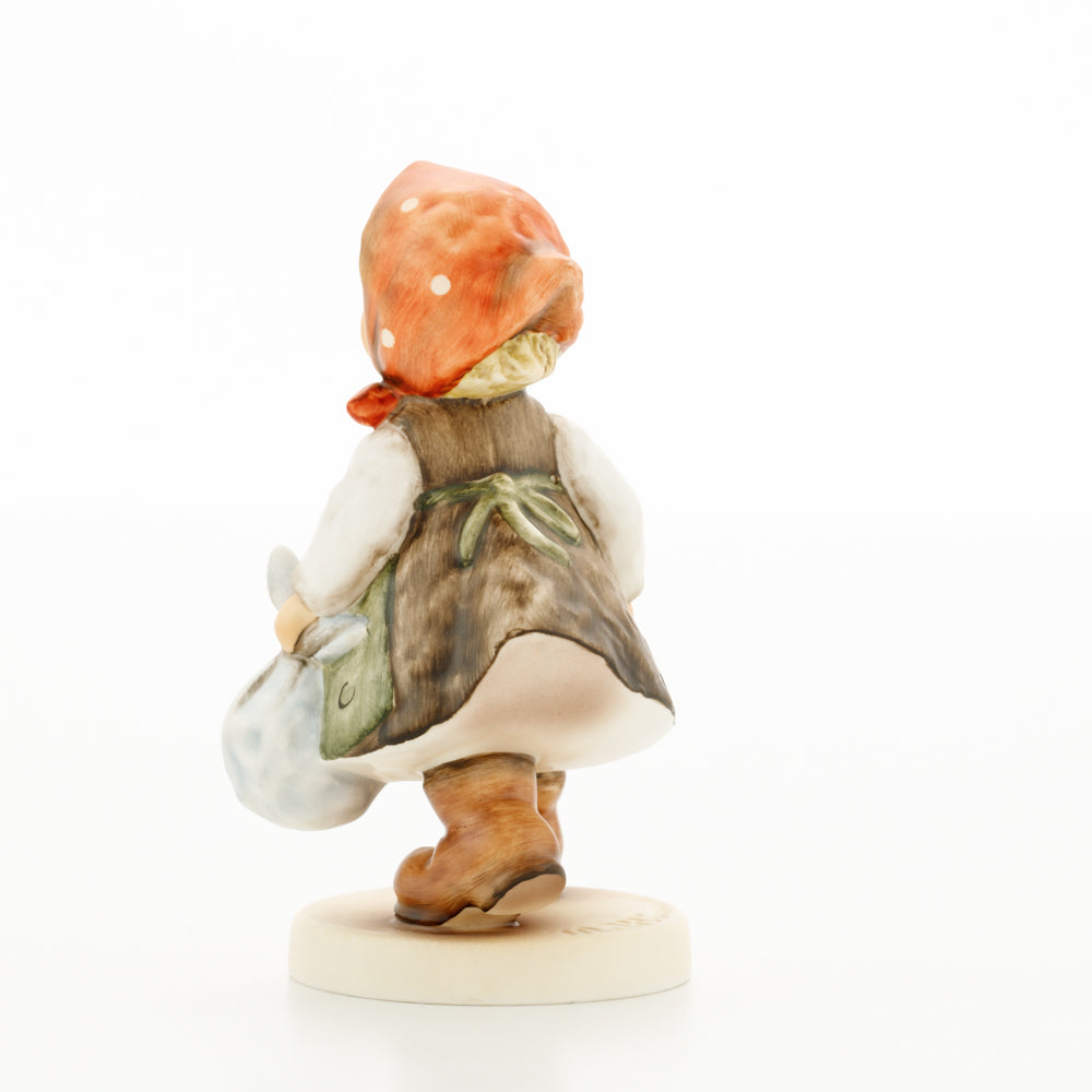 Mit dem Kopftuch auf dem Haupt und einem kleinen Beutelchen in der Hand marschiert das kleine Hummel-Mädchen los. Denn sie möchte der Großmutter einen Besuch abstatten. So wurde die original M.I. Hummel-Figur auf den Namen "Großmutter wartet" getauft. Aber ganz unbekannt ist das Mädchen aus dem Hause Hummel nicht. Denn die größere Variante der Hummel-Figur findet sich in der Figur "Wanderfreunde" (HUM 383) wieder. Erschaffen wurde die Keramikfigur 1989 von Helmut Fischer und kam im Sommer 1990 auf den amerikanischen Markt. Die passende Partnerfigur zu "Großmutter wartet" ist indes "Großvater wartet" (HUM 562) und fügt sich wunderbar an die Großmutter-Figur.