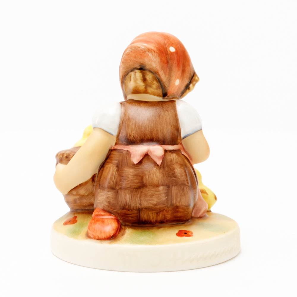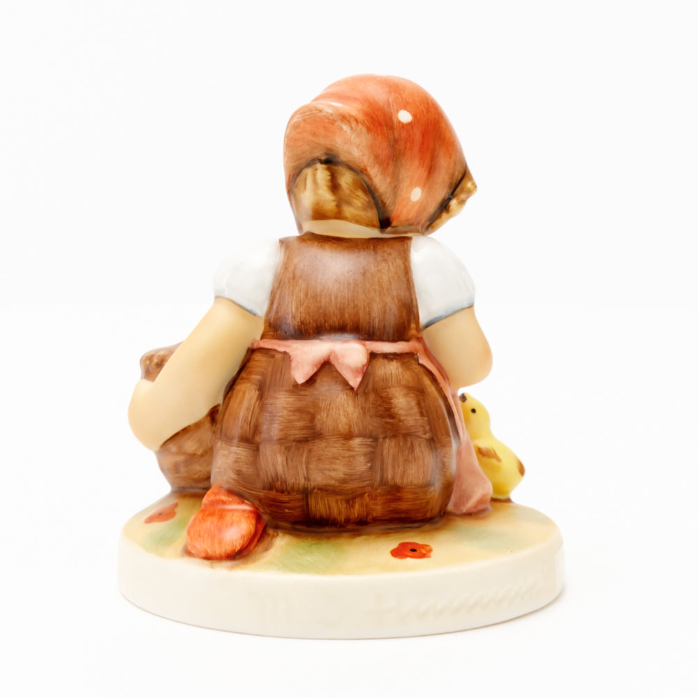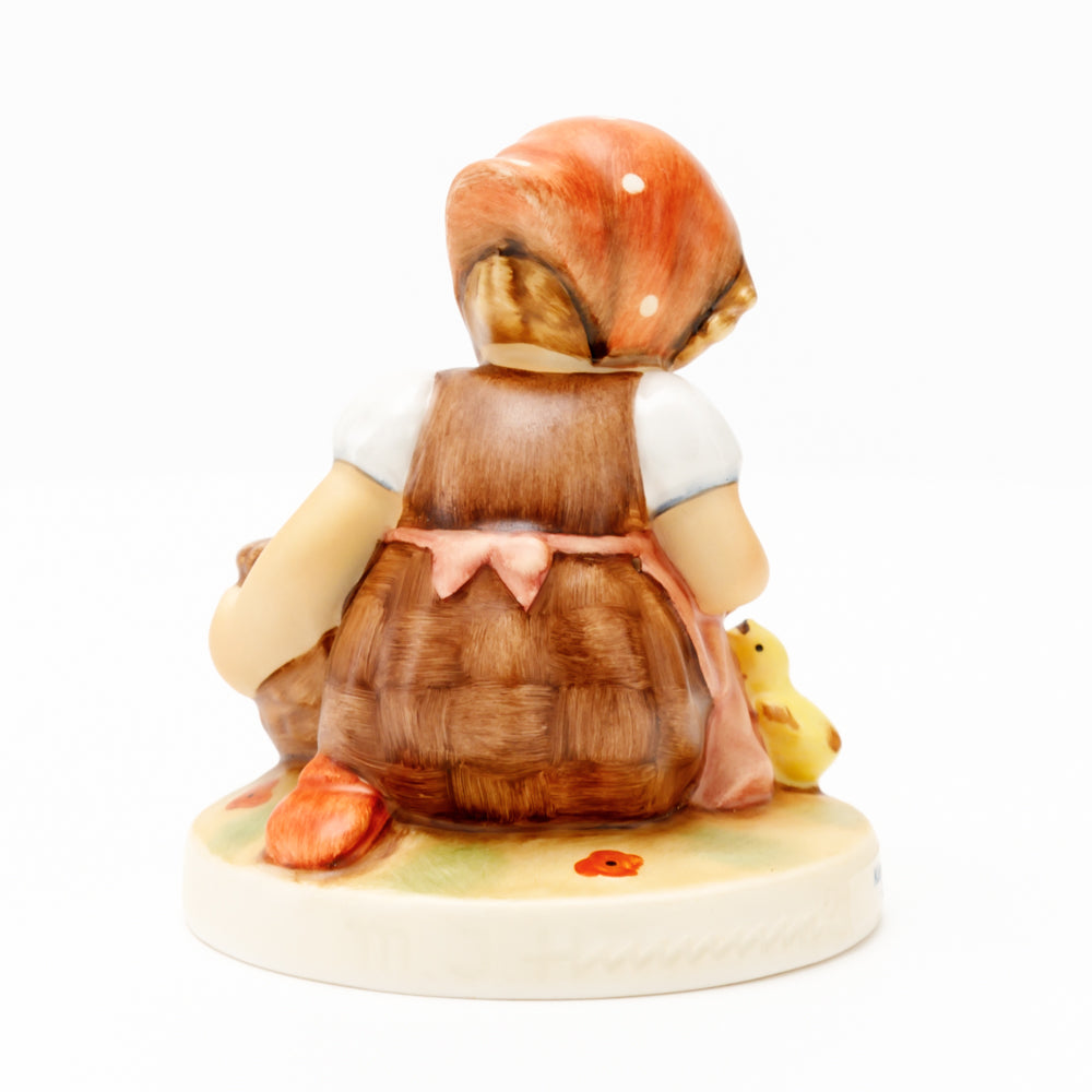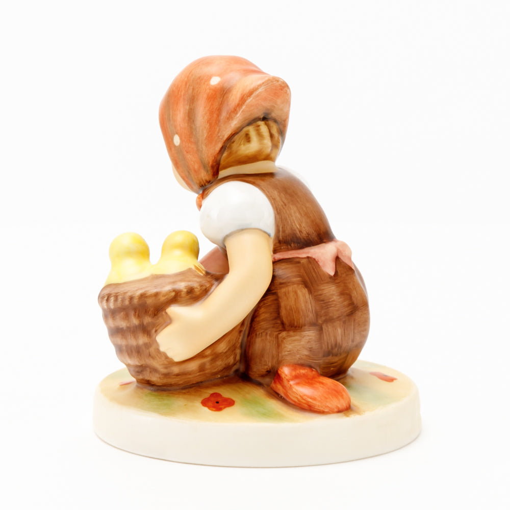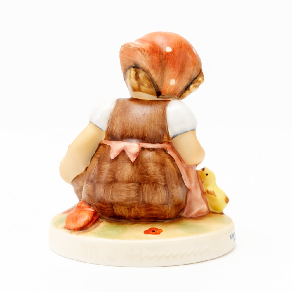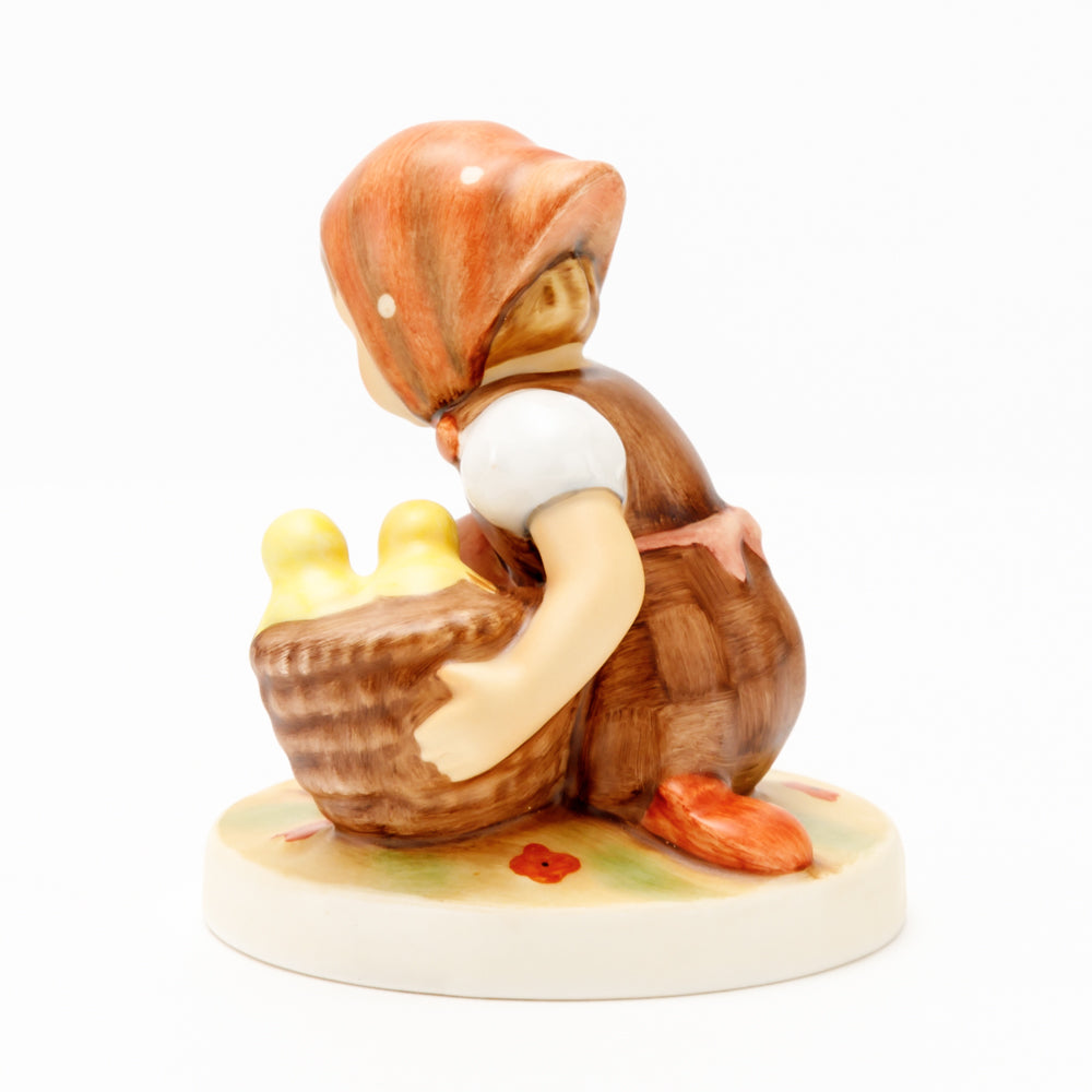 Das erste „Kükenmütterchen“-Modell stammt von Reinhold Unger aus dem Jahr 1936, wurde aber von Gerhard Skrobek 1964 umgestaltet. In dieser Version ist es seither erhältlich und hat sich im Laufe der Zeit zu einem echten Hummel-Klassiker gemausert. Besonders lieblich sind natürlich die kleinen gelben Küken dargestellt. Aber auch die leicht geröteten Wangen, der Korb und das rote Kopftuch verzaubern Hummel-Freunde und -Liebhaber auf der ganzen Welt. Kleine Größen der Figur enthalten zwei Küken im Korb, während bei Größe 57/I drei Küken im Korb sitzen. Diese Größe 57 2/0 kam erstmals 1985 auf den Markt.