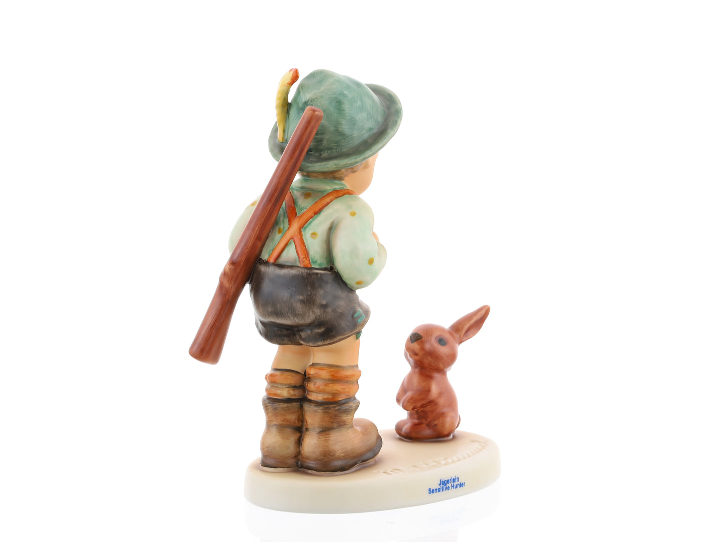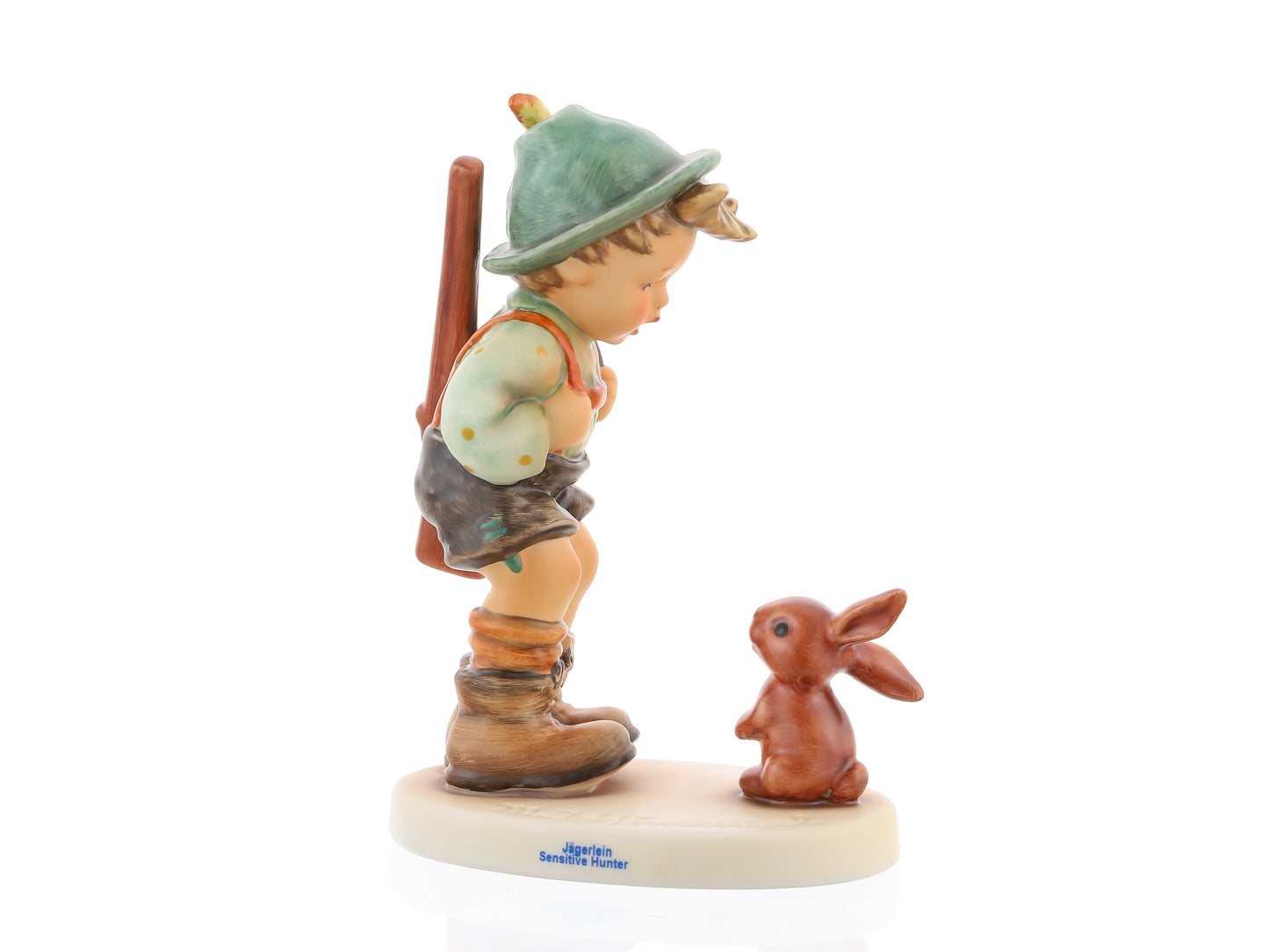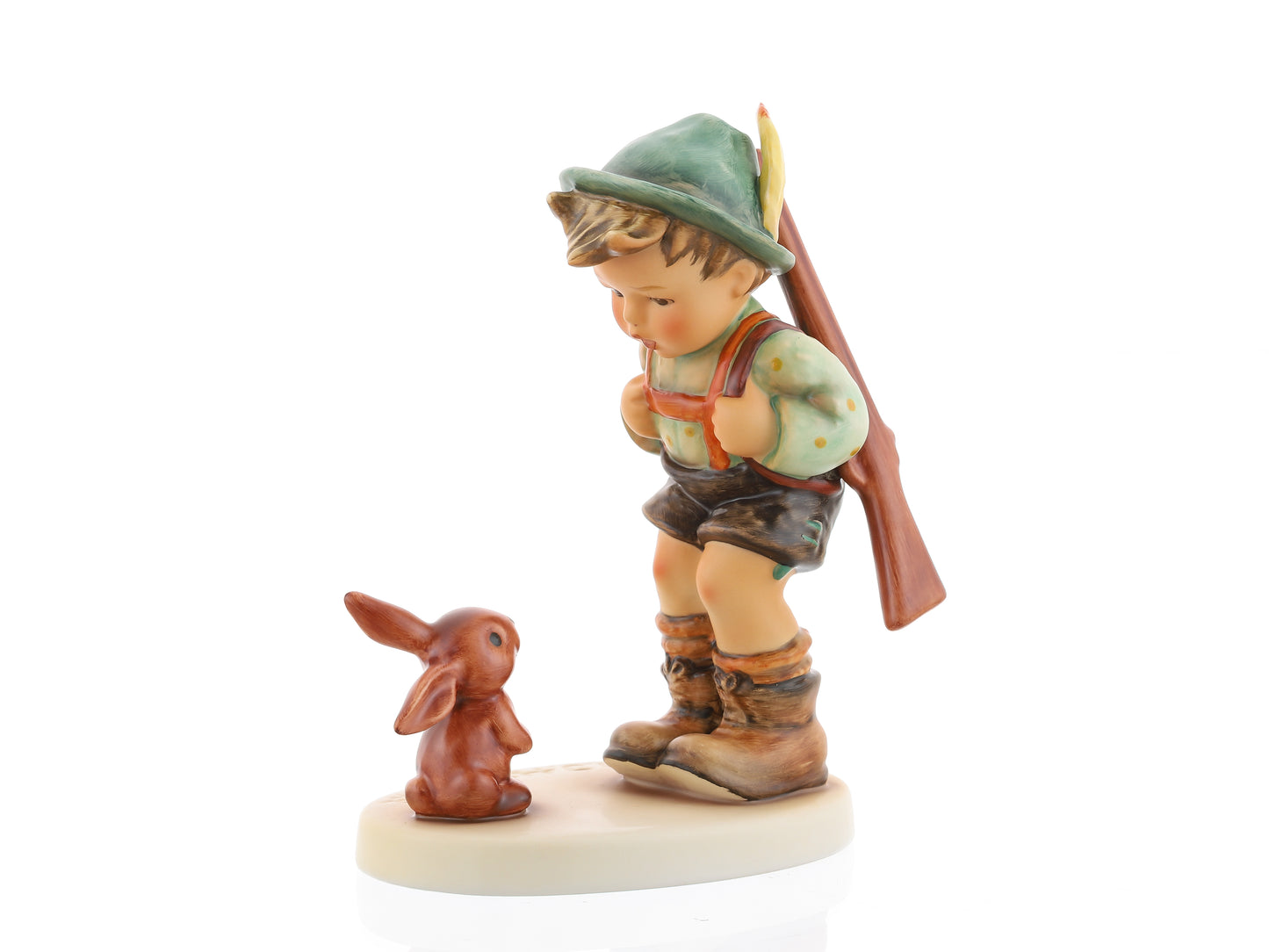 Schon immer verewigte Maria Innocentia das Zusammenspiel von Kind und Tier in ihren Zeichnungen, die als Vorlage für die original Hummel-Figuren dienen. Das „Jägerlein“ war eine der ersten Figuren, die von der Manufaktur auf den Markt gebracht wurden – gut zu erkennen an der niedrigen HUM-Nummer. Der Klassiker ist auch heute noch bei Hummel-Fans auf der ganzen Welt beliebt und darf in keiner Hummel-Sammlung fehlen.