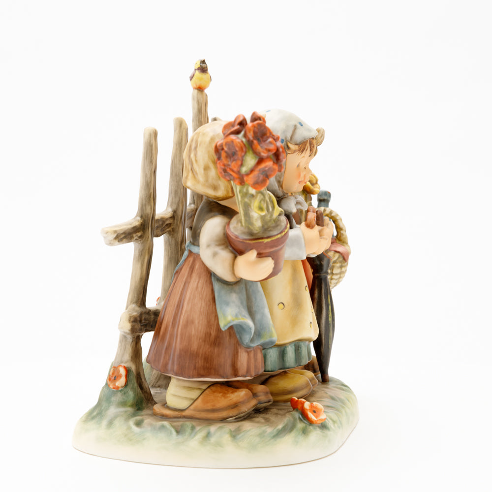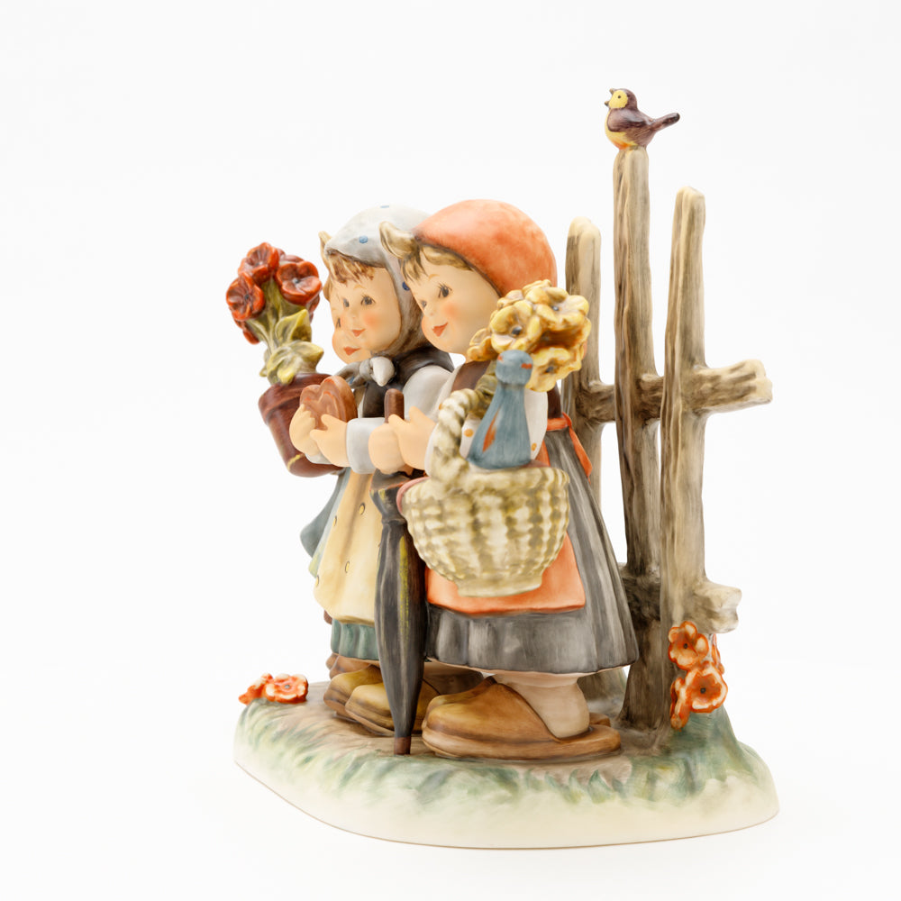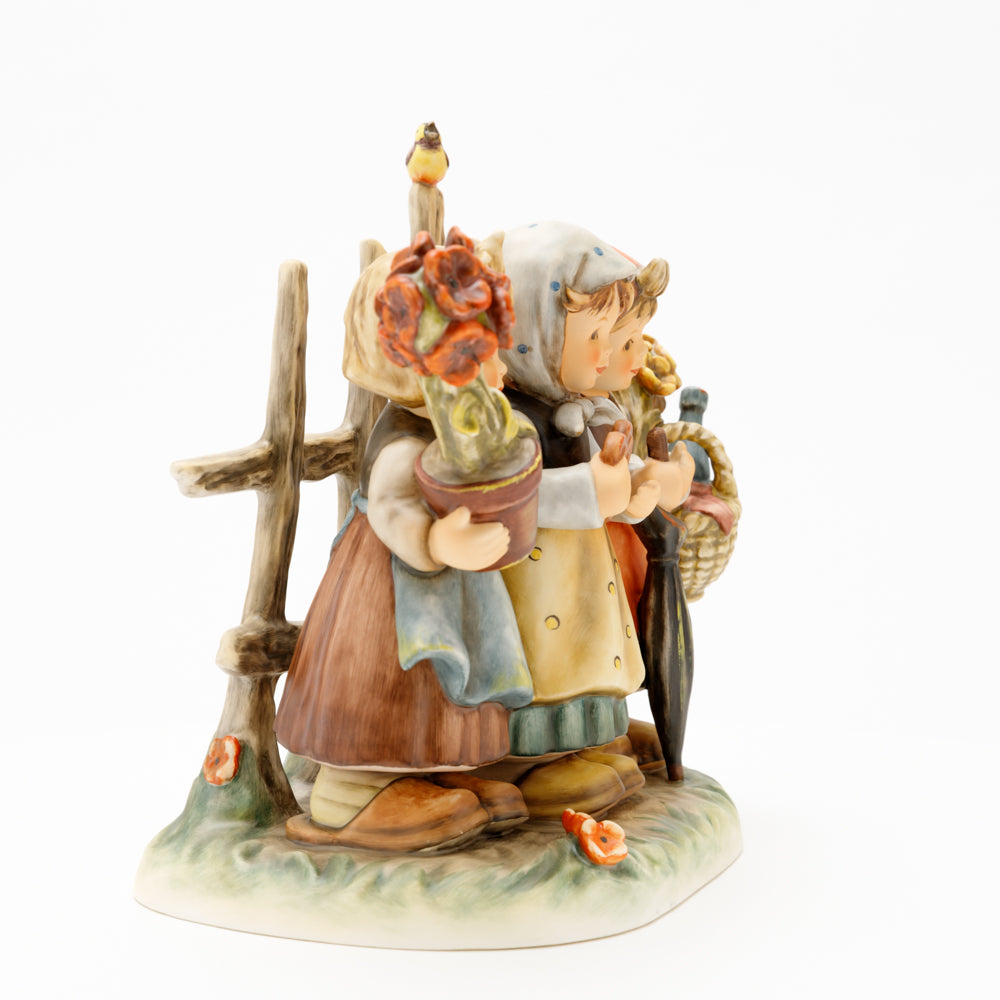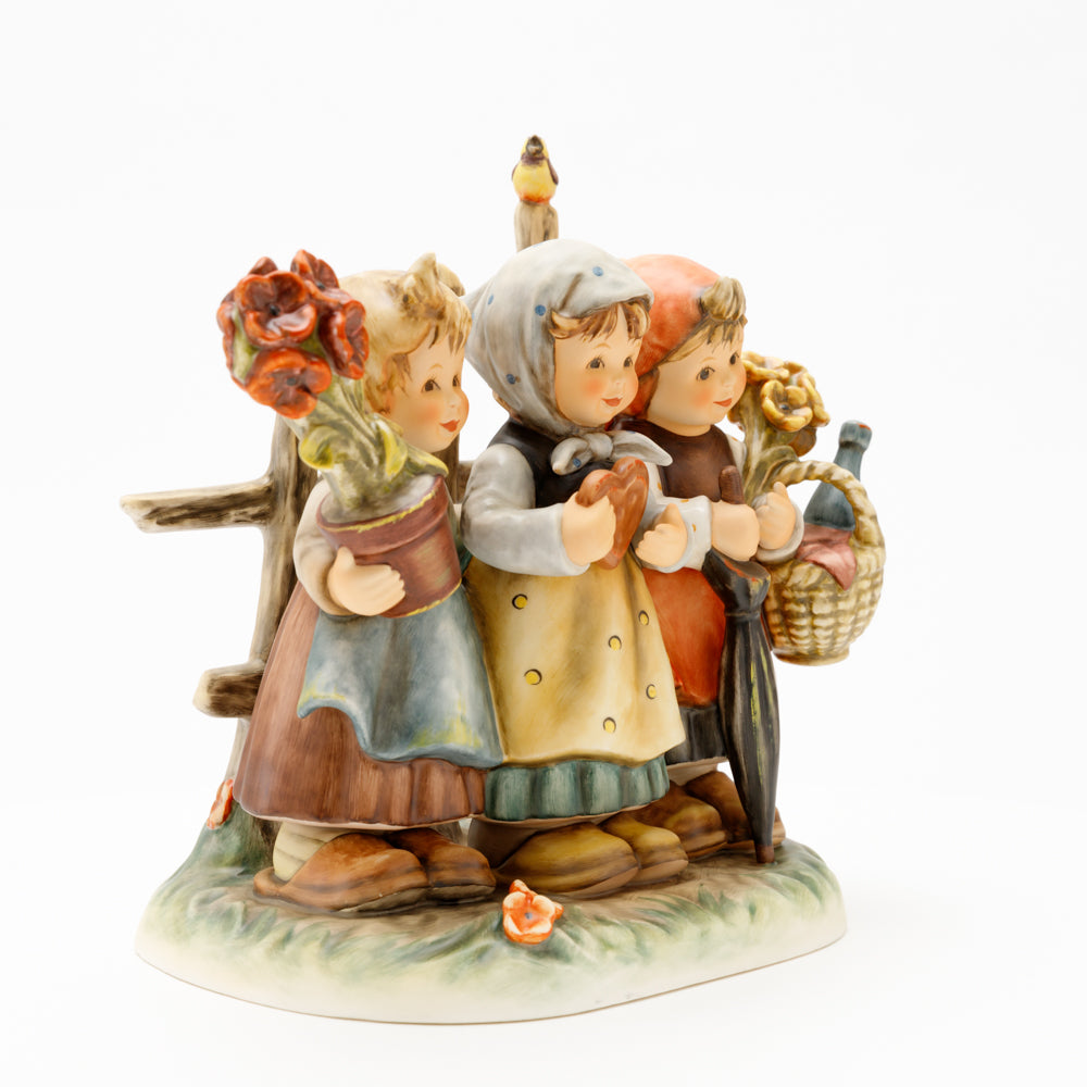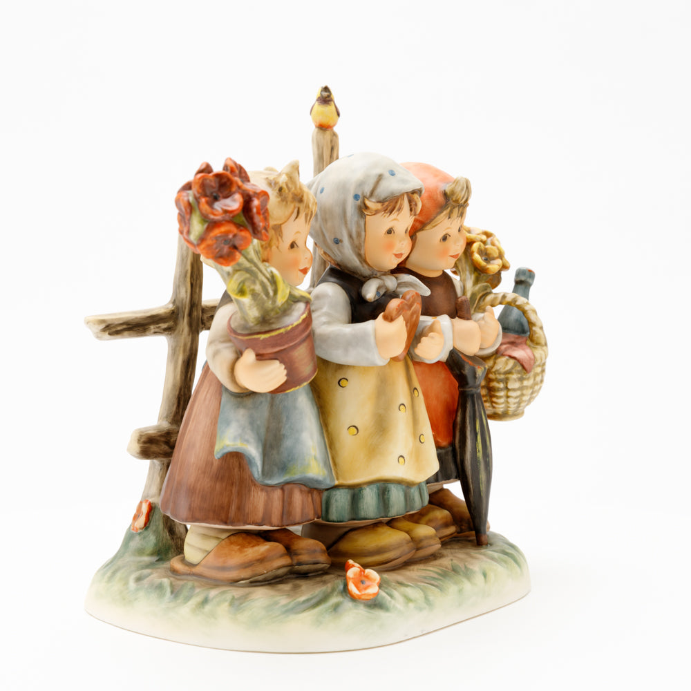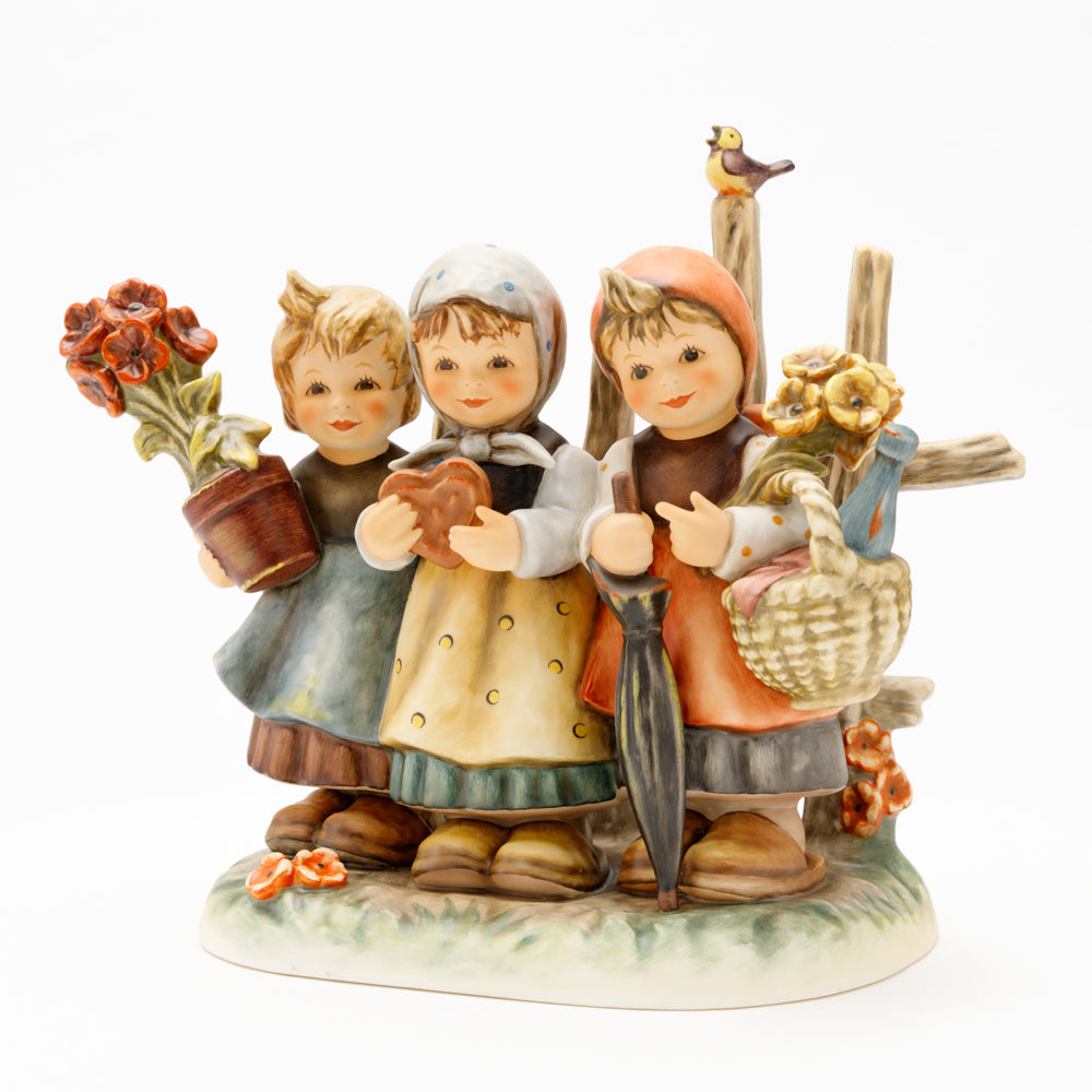 Wer kommt denn da? Drei kleine Mädchen mit strahlendem Lächeln im Gesicht machen ihre Aufwartung. Ist das nicht wunderbar? Im Jahr 1989 kreierte Helmut Fischer diese außergewöhnlich ausdrucksstarke Hummel-Figur. Sie wurde nach einer Originalzeichnung der Schwester Maria Innocentia aus dem Jahr 1941 angefertigt. "Ich bring viel lieb..." war die erste Figur einer Serie, die Childhood Memories (Kindheitserinnerungen) genannt wurde. Sie geriet lange in Vergessenheit und wurde erstmals im Jahr 2017 auf den Markt gebracht. Die Originalzeichnung von Maria Innocentia Hummel trägt folgenden Titel: "I bring viel Lieb und I Viel Freud, und I a Stärk für´d schwere Zeit" (Ich bringe viel Liebe und ich viel Freude, und ich viel Kraft für die schwere Zeit). Die beeindruckende, handgefertigte Figur aus der Hummel Manufaktur Rödental ist auf 1999 Exemplare limitiert.
