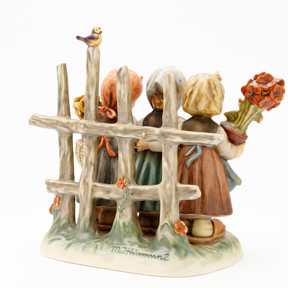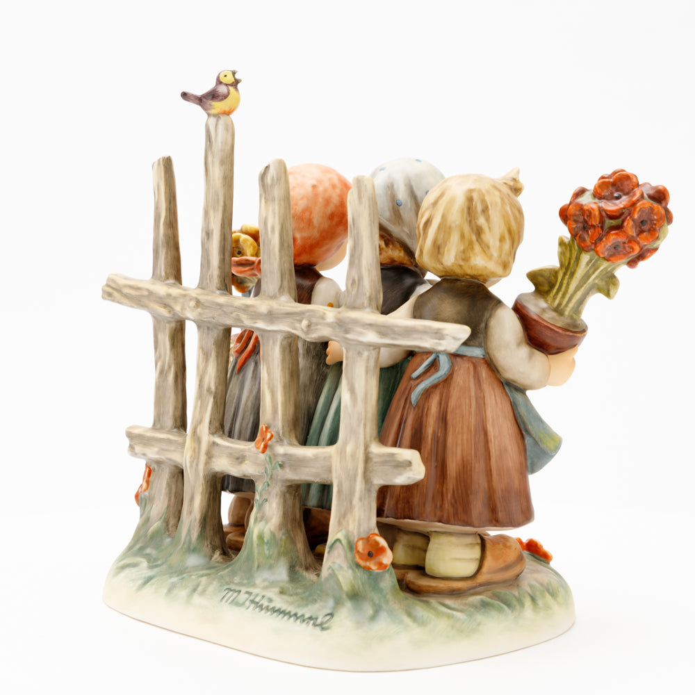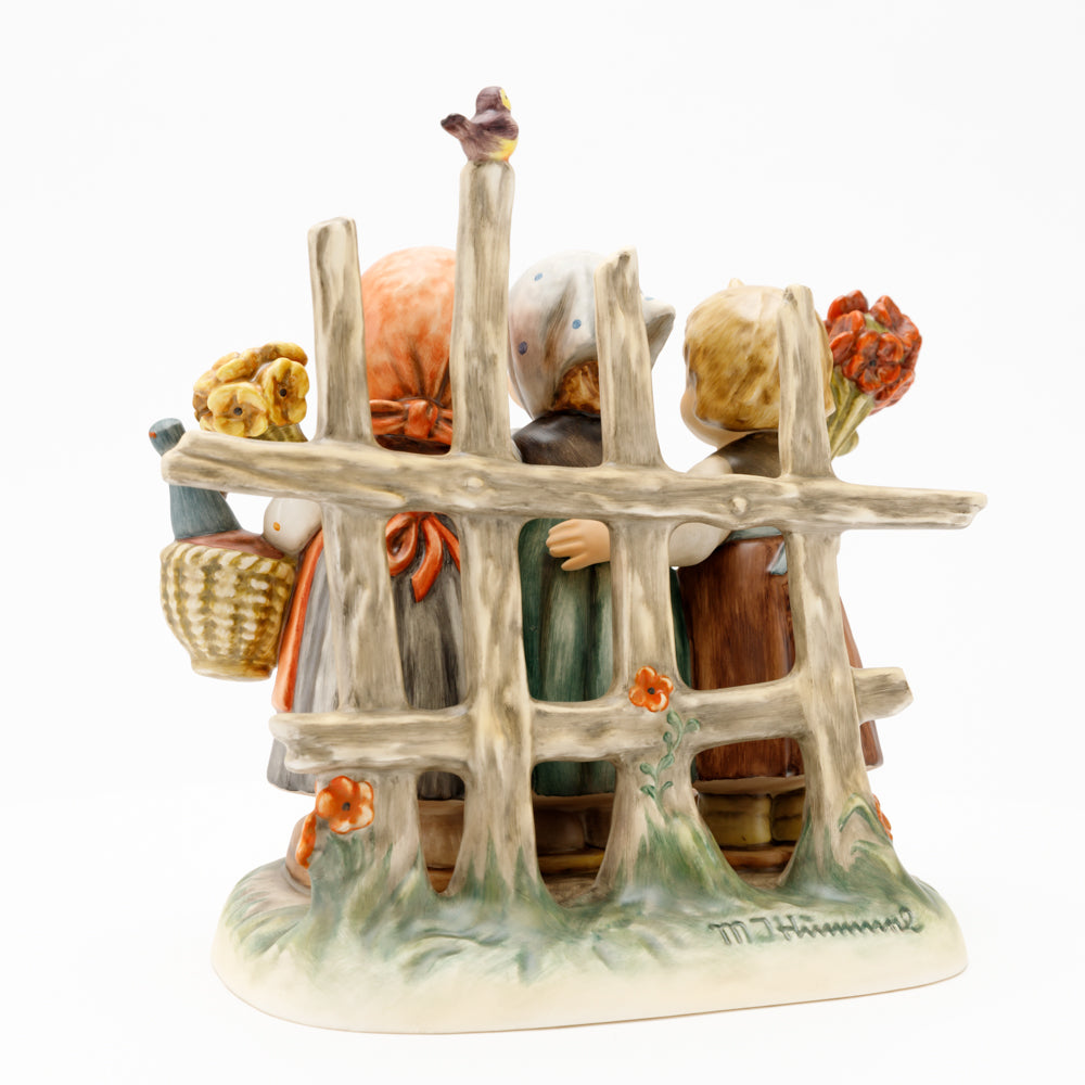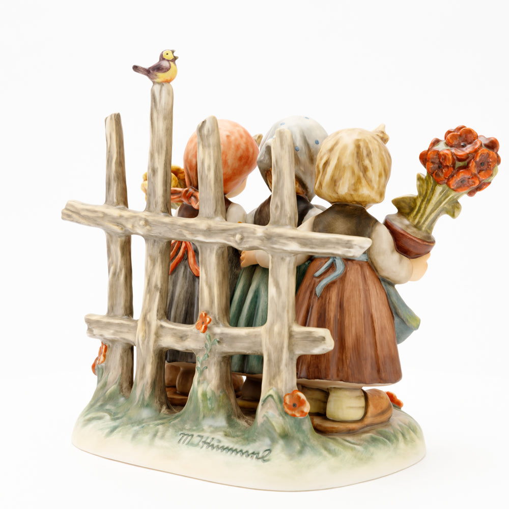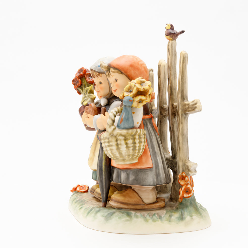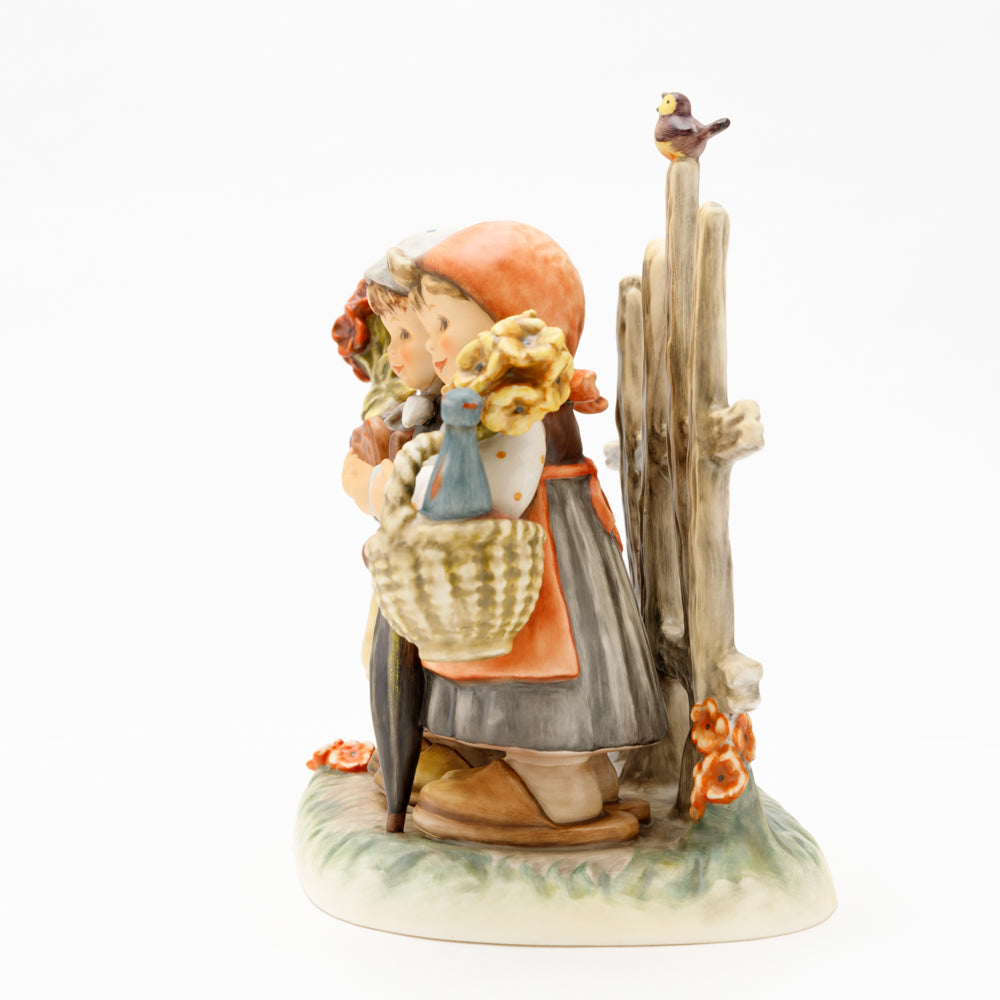 Wer kommt denn da? Drei kleine Mädchen mit strahlendem Lächeln im Gesicht machen ihre Aufwartung. Ist das nicht wunderbar? Im Jahr 1989 kreierte Helmut Fischer diese außergewöhnlich ausdrucksstarke Hummel-Figur. Sie wurde nach einer Originalzeichnung der Schwester Maria Innocentia aus dem Jahr 1941 angefertigt. "Ich bring viel lieb..." war die erste Figur einer Serie, die Childhood Memories (Kindheitserinnerungen) genannt wurde. Sie geriet lange in Vergessenheit und wurde erstmals im Jahr 2017 auf den Markt gebracht. Die Originalzeichnung von Maria Innocentia Hummel trägt folgenden Titel: "I bring viel Lieb und I Viel Freud, und I a Stärk für´d schwere Zeit" (Ich bringe viel Liebe und ich viel Freude, und ich viel Kraft für die schwere Zeit). Die beeindruckende, handgefertigte Figur aus der Hummel Manufaktur Rödental ist auf 1999 Exemplare limitiert.