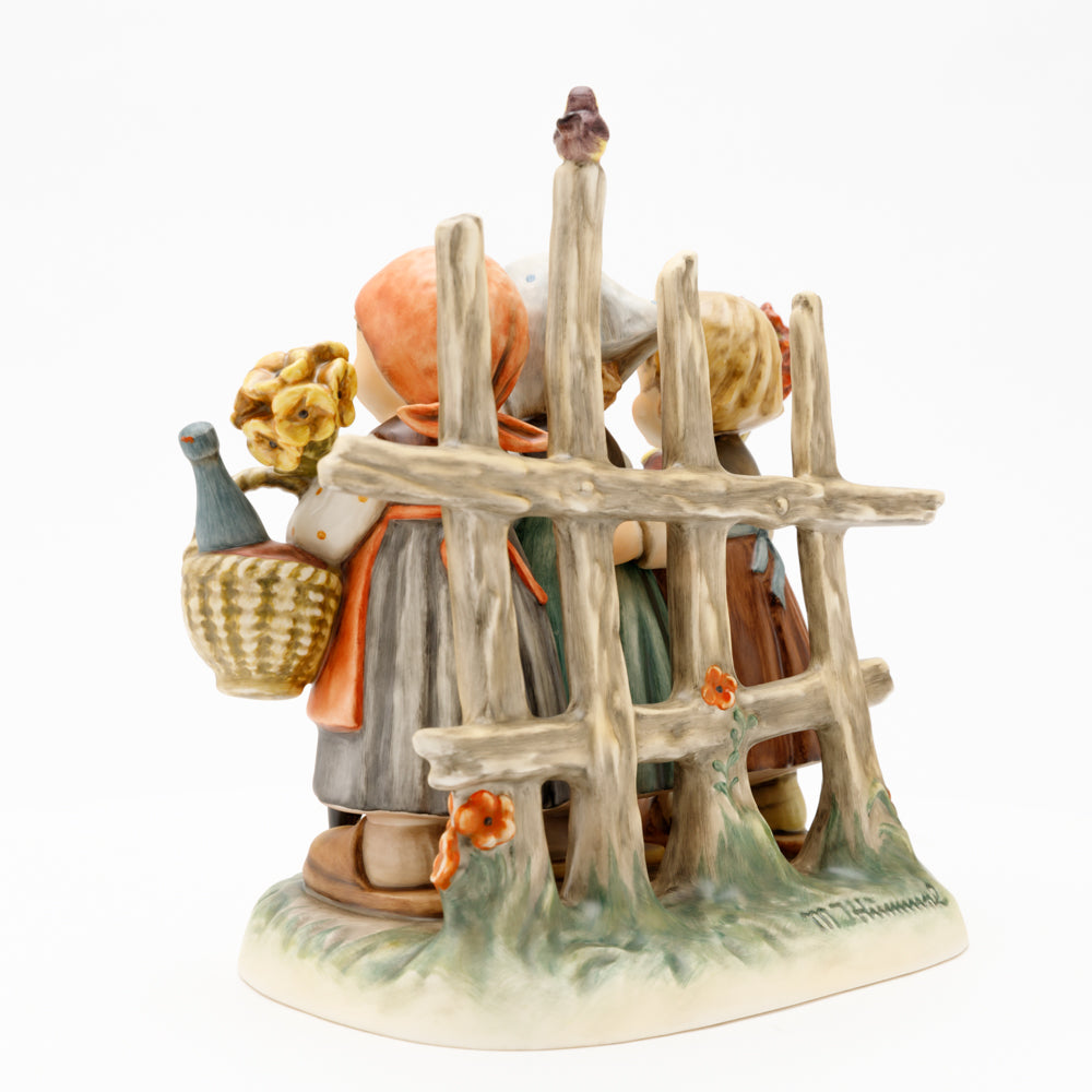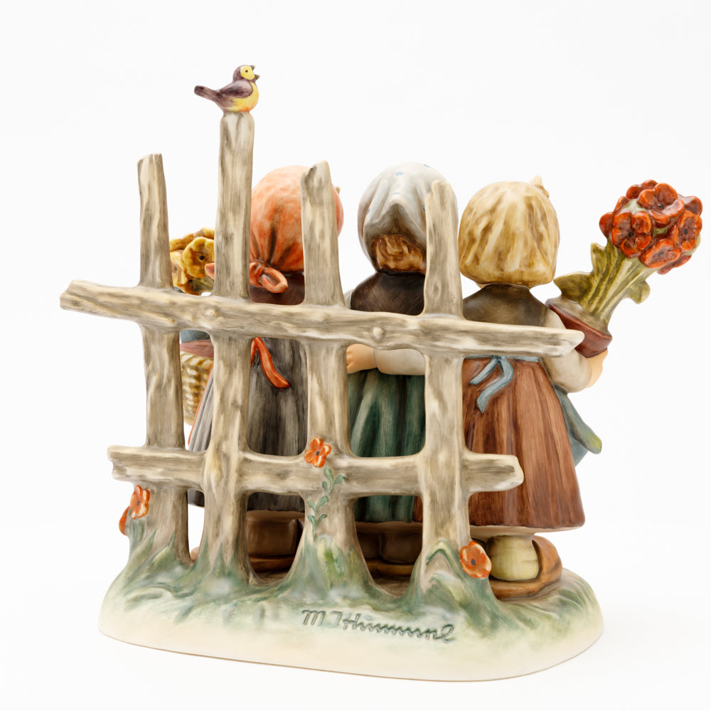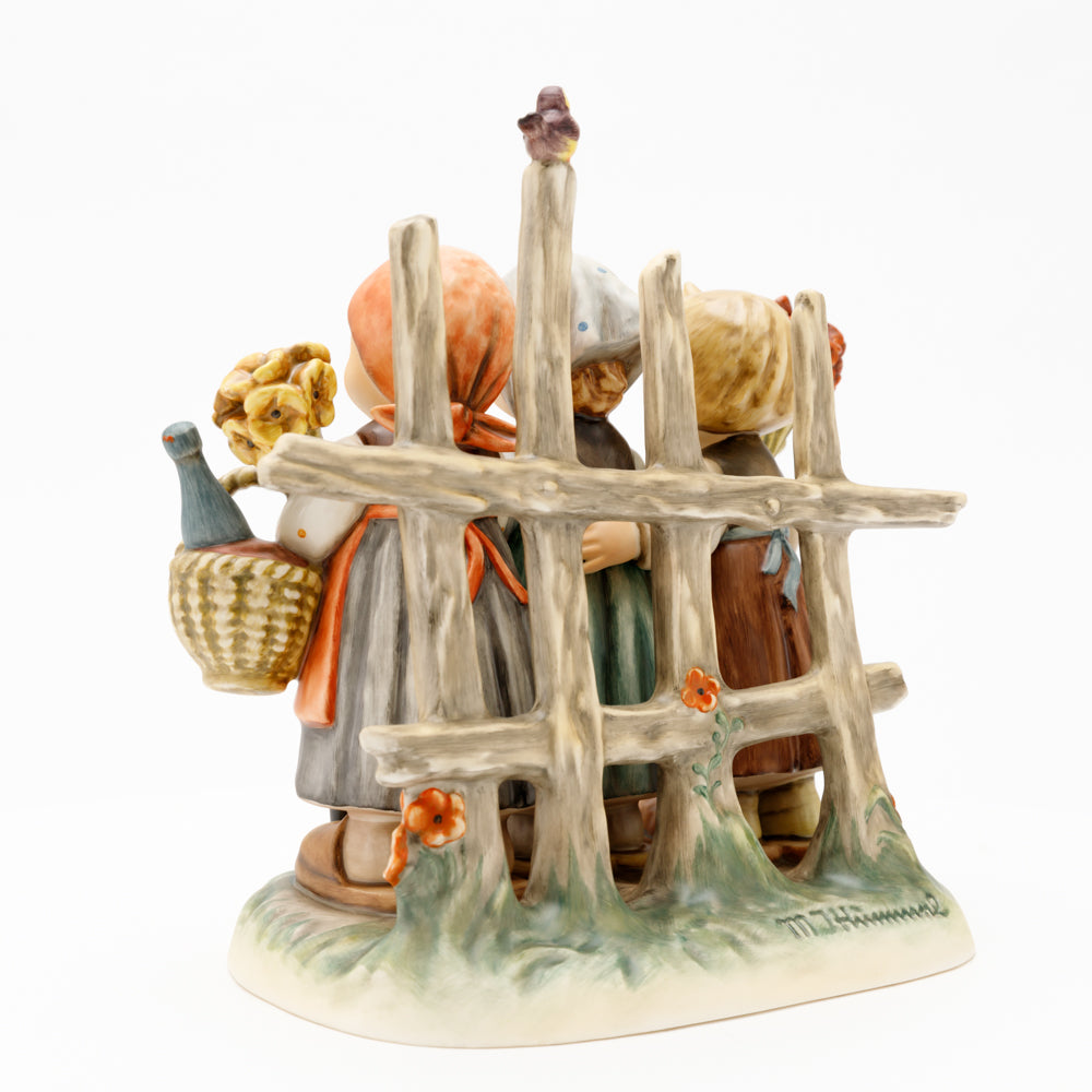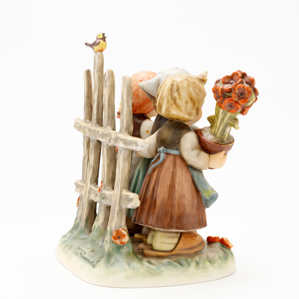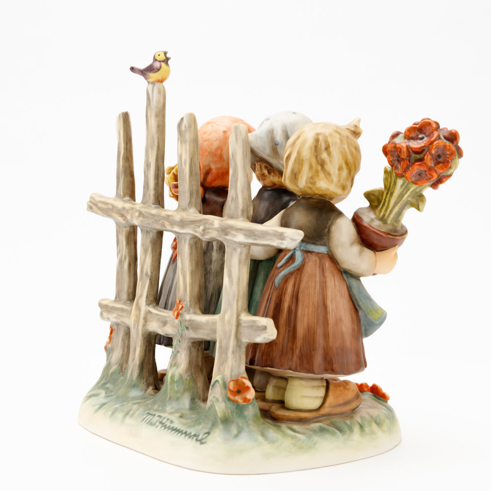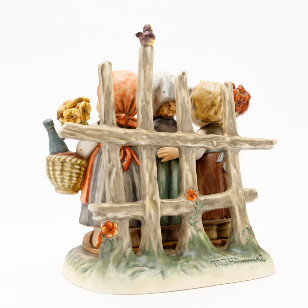 Wer kommt denn da? Drei kleine Mädchen mit strahlendem Lächeln im Gesicht machen ihre Aufwartung. Ist das nicht wunderbar? Im Jahr 1989 kreierte Helmut Fischer diese außergewöhnlich ausdrucksstarke Hummel-Figur. Sie wurde nach einer Originalzeichnung der Schwester Maria Innocentia aus dem Jahr 1941 angefertigt. "Ich bring viel lieb..." war die erste Figur einer Serie, die Childhood Memories (Kindheitserinnerungen) genannt wurde. Sie geriet lange in Vergessenheit und wurde erstmals im Jahr 2017 auf den Markt gebracht. Die Originalzeichnung von Maria Innocentia Hummel trägt folgenden Titel: "I bring viel Lieb und I Viel Freud, und I a Stärk für´d schwere Zeit" (Ich bringe viel Liebe und ich viel Freude, und ich viel Kraft für die schwere Zeit). Die beeindruckende, handgefertigte Figur aus der Hummel Manufaktur Rödental ist auf 1999 Exemplare limitiert.