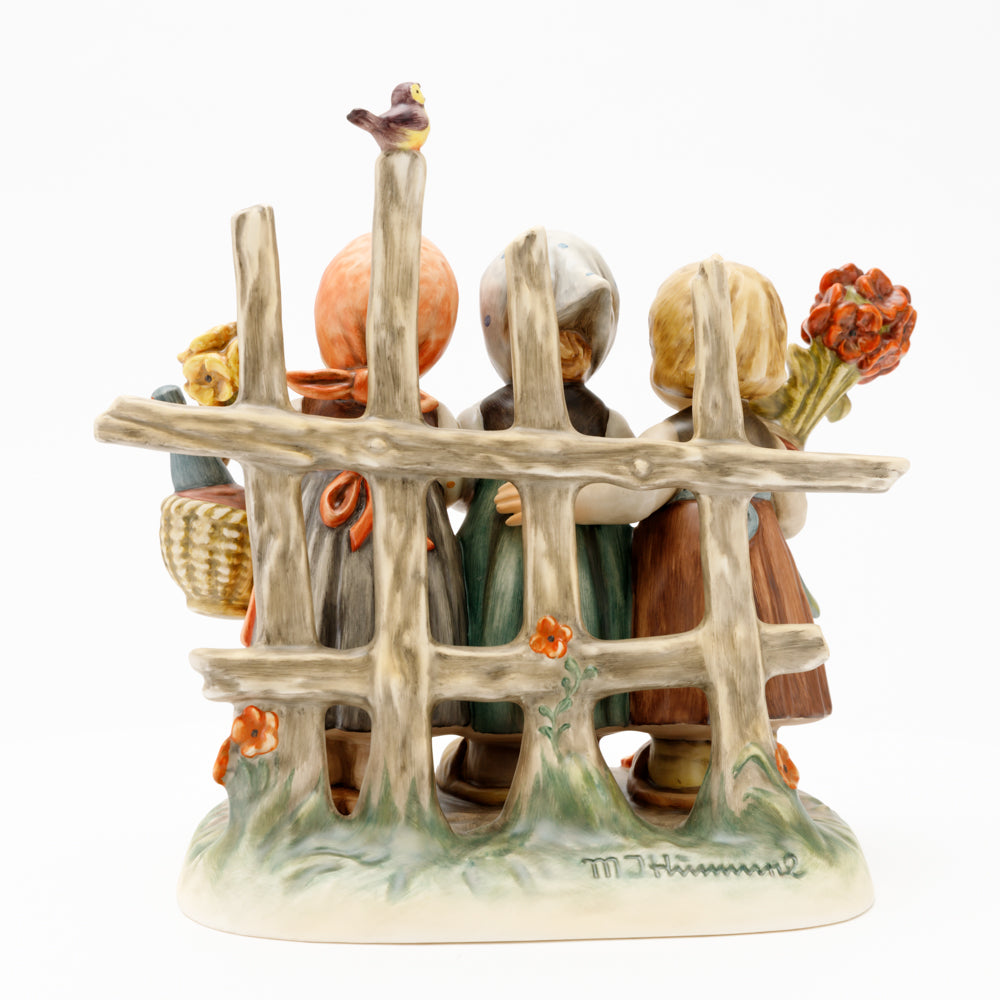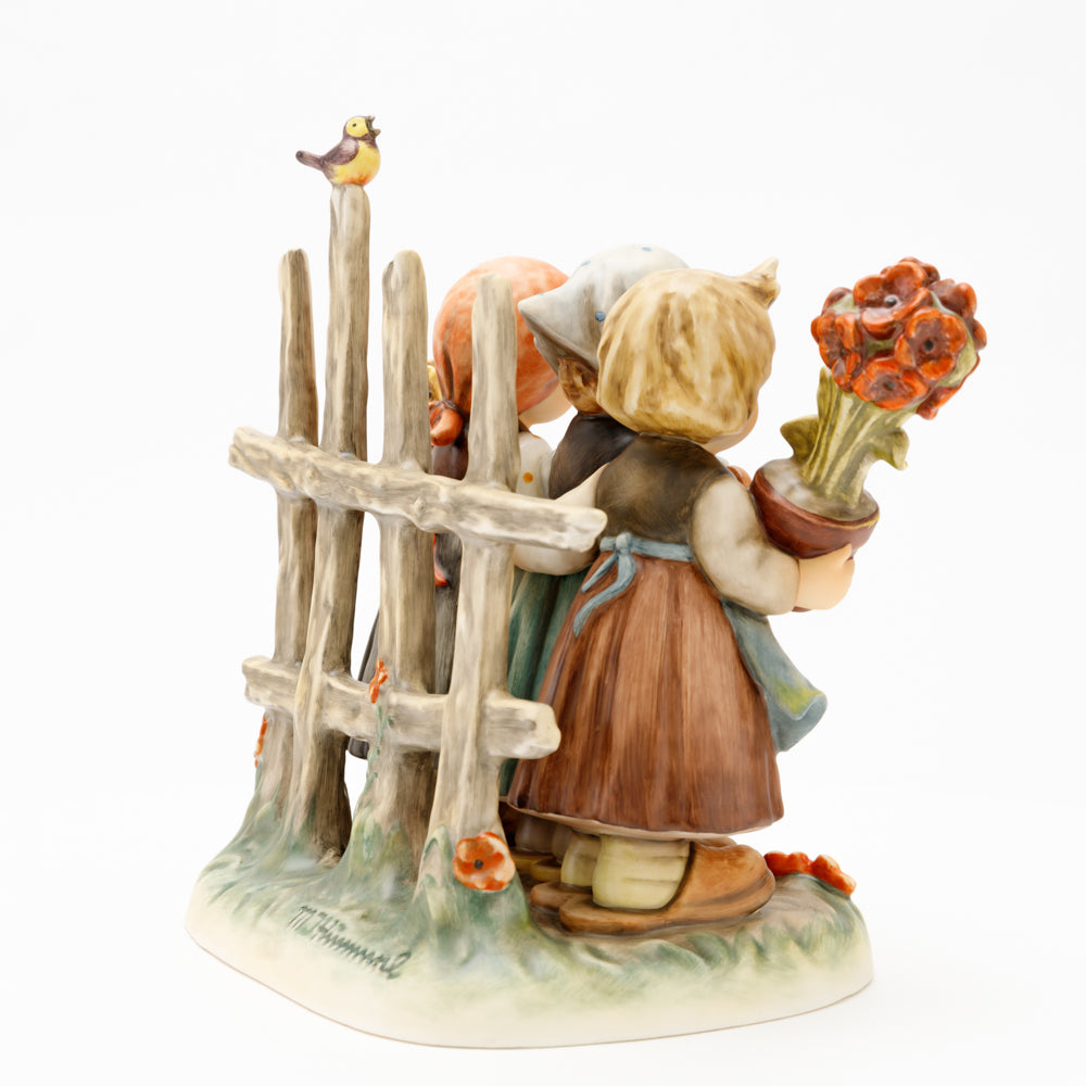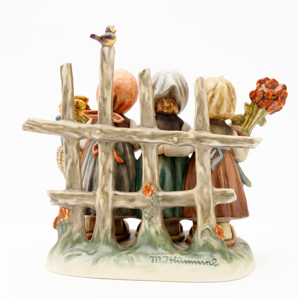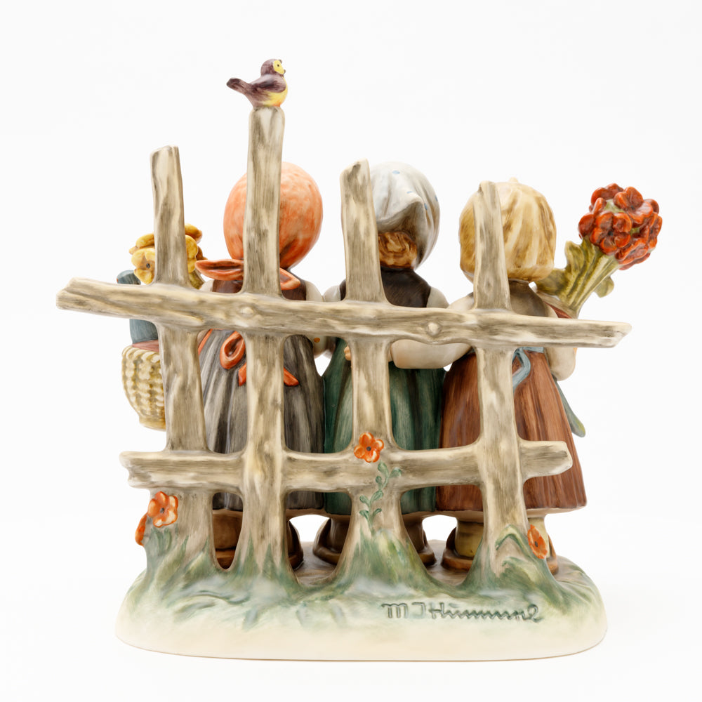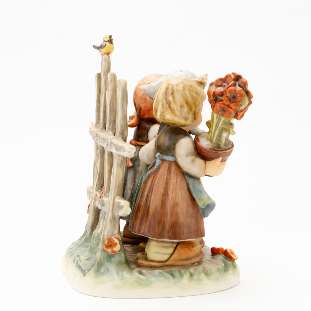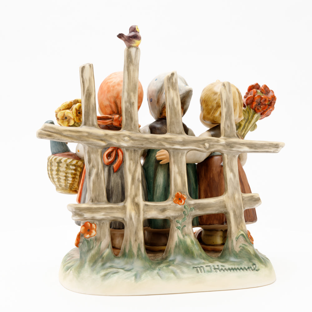 Wer kommt denn da? Drei kleine Mädchen mit strahlendem Lächeln im Gesicht machen ihre Aufwartung. Ist das nicht wunderbar? Im Jahr 1989 kreierte Helmut Fischer diese außergewöhnlich ausdrucksstarke Hummel-Figur. Sie wurde nach einer Originalzeichnung der Schwester Maria Innocentia aus dem Jahr 1941 angefertigt. "Ich bring viel lieb..." war die erste Figur einer Serie, die Childhood Memories (Kindheitserinnerungen) genannt wurde. Sie geriet lange in Vergessenheit und wurde erstmals im Jahr 2017 auf den Markt gebracht. Die Originalzeichnung von Maria Innocentia Hummel trägt folgenden Titel: "I bring viel Lieb und I Viel Freud, und I a Stärk für´d schwere Zeit" (Ich bringe viel Liebe und ich viel Freude, und ich viel Kraft für die schwere Zeit). Die beeindruckende, handgefertigte Figur aus der Hummel Manufaktur Rödental ist auf 1999 Exemplare limitiert.