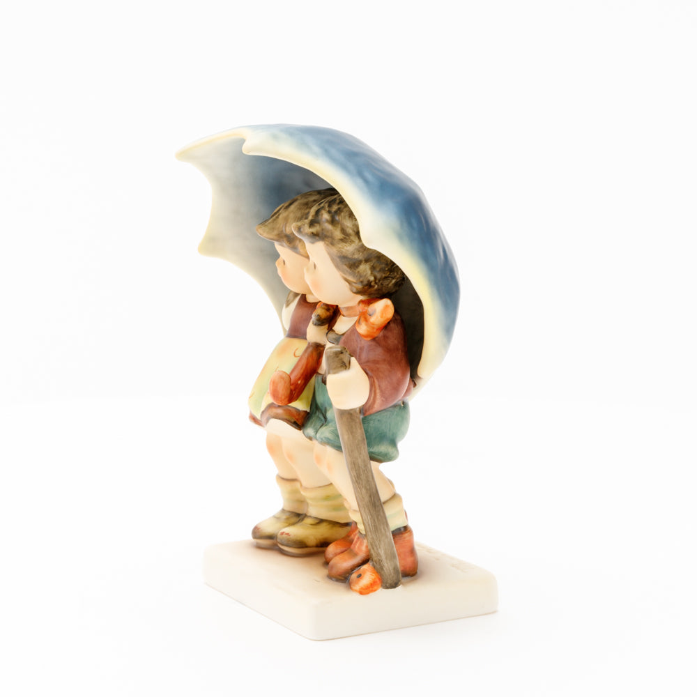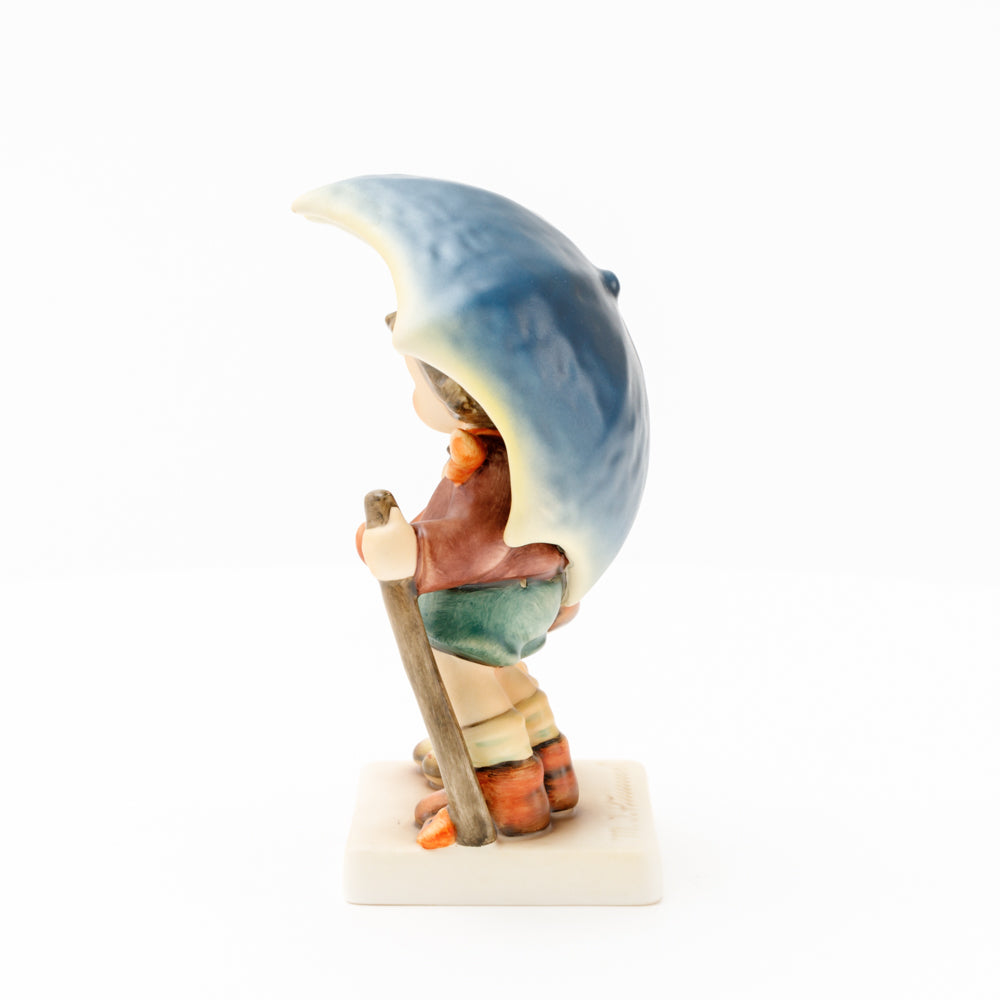 Diese Figur wurde 1937 von Reinhold Unger modelliert. Sie wurde im Lauf der Jahre mehrfach umgestaltet und es gibt sie in unterschiedlichen Größen. Modelle mit dem Stempel „Full Bee“ waren bis zum später gefertigten Masterpiece gewöhnlich die größten. Zwischen älteren und neueren Modellen gibt es außer der Größe noch weitere Unterschiede, z.B. die Struktur des Sockels. Des Weiteren ist die Figur auf dem Jahresteller von 1970 (HUM 280) zu finden.