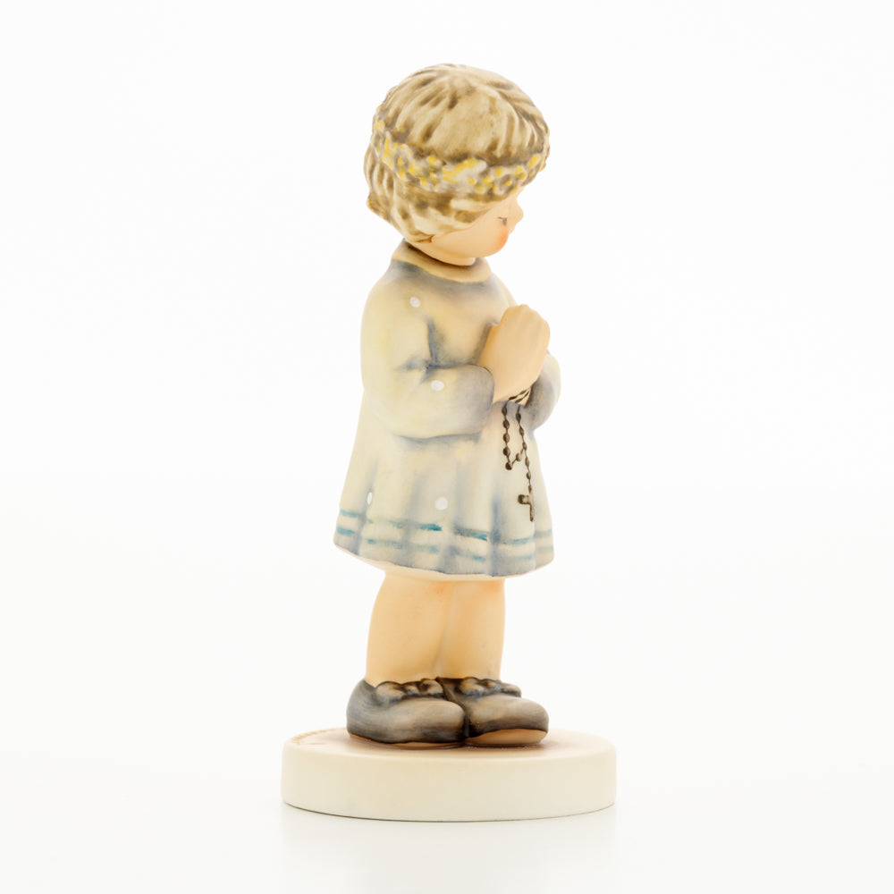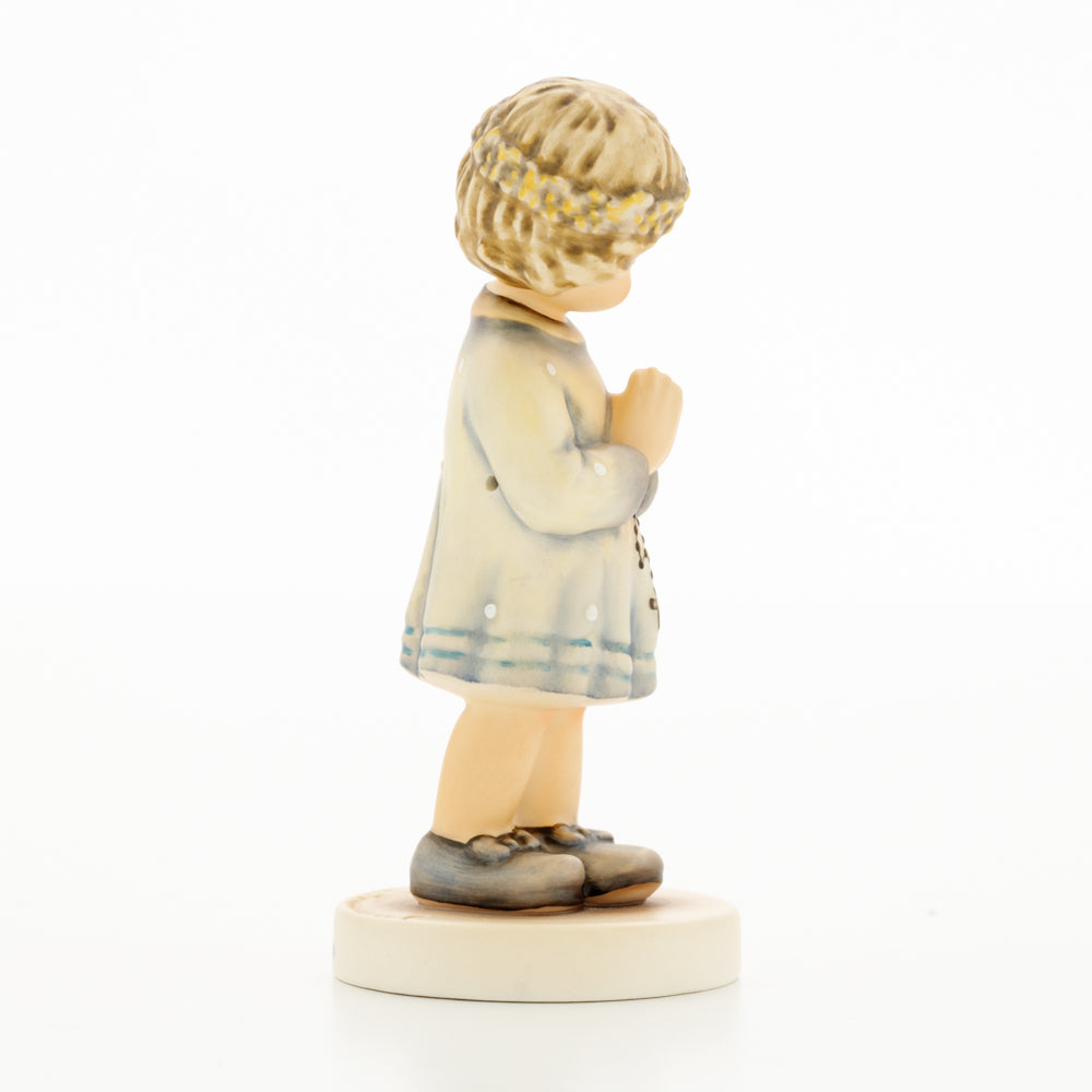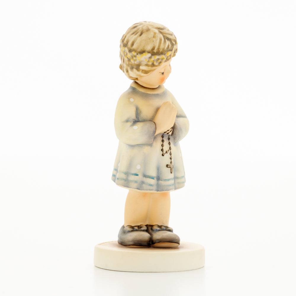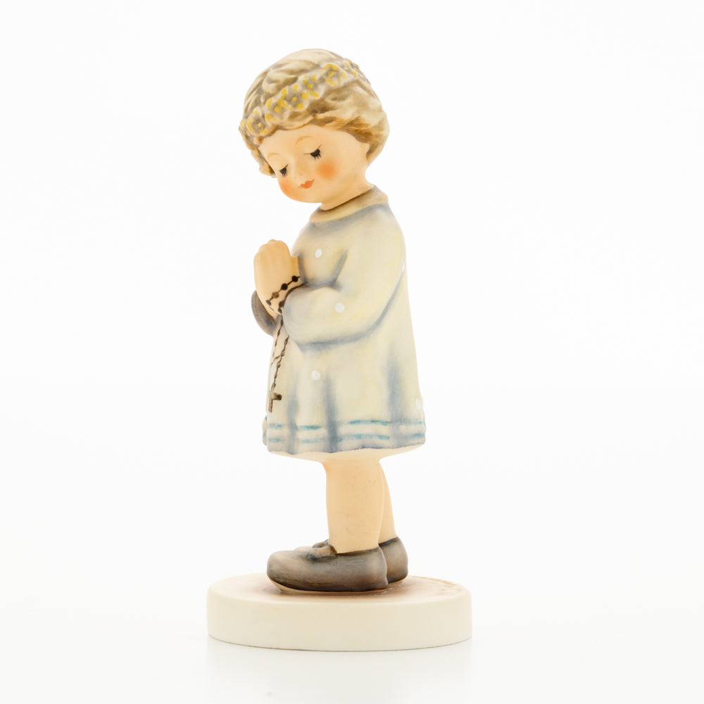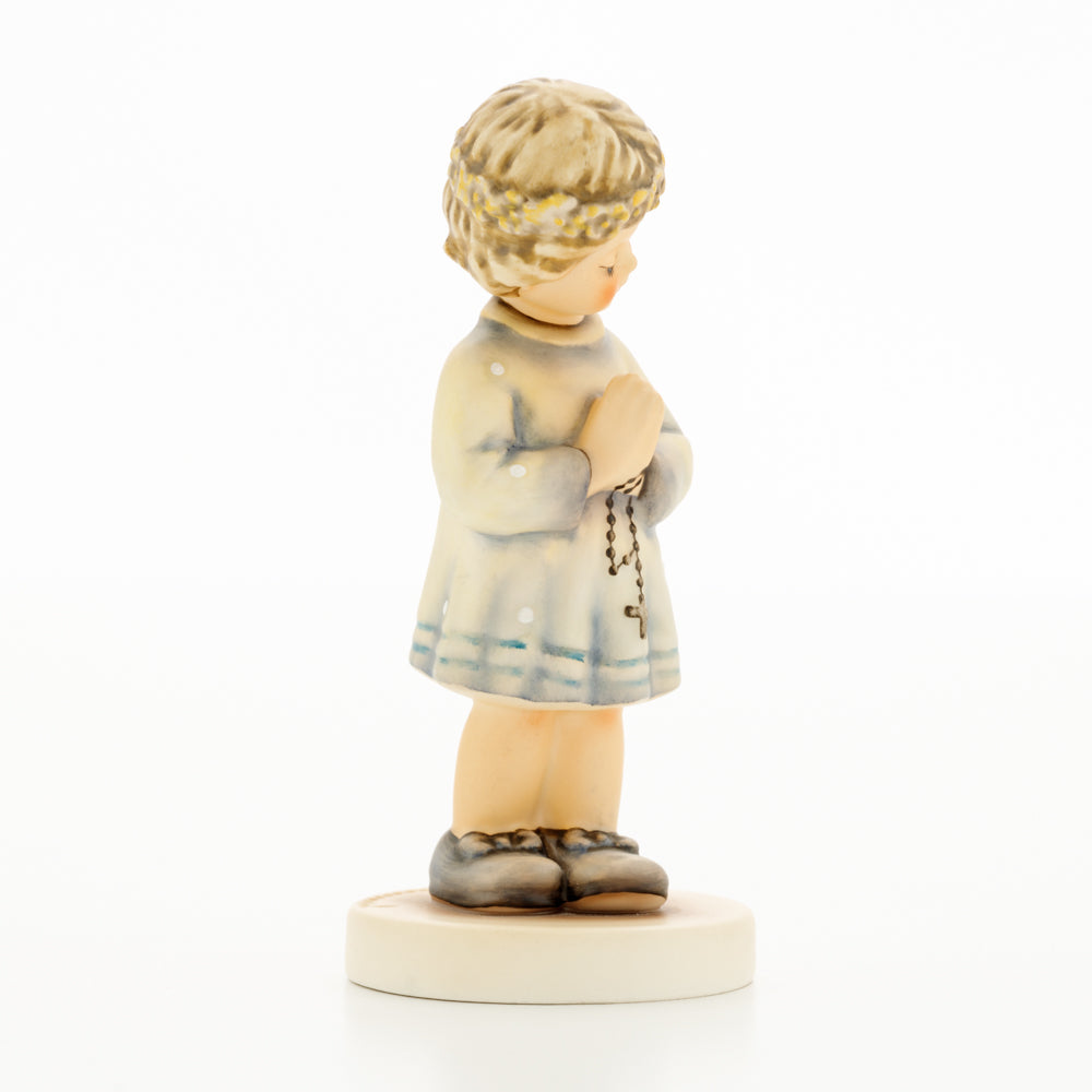 Andächtig und in Gedanken versunken faltet das Hummel-Mädchen die Hände zum Gebet. Um den linken Arm hat die original M.I. Hummel-Figur eine Kette mit Kreuz gebunden. Die Hummel-Figur lässt sich auch mit einem individuellen Schriftzug versehen. Ob als Erinnerung an die eigene Kommunion bzw. Konfirmation oder als Geschenk für ein Kommunionkind oder einen Konfirmanden/eine Konfirmandin: Mit dieser Hummel-Figur hat man stets ein wertvolles Andenken.