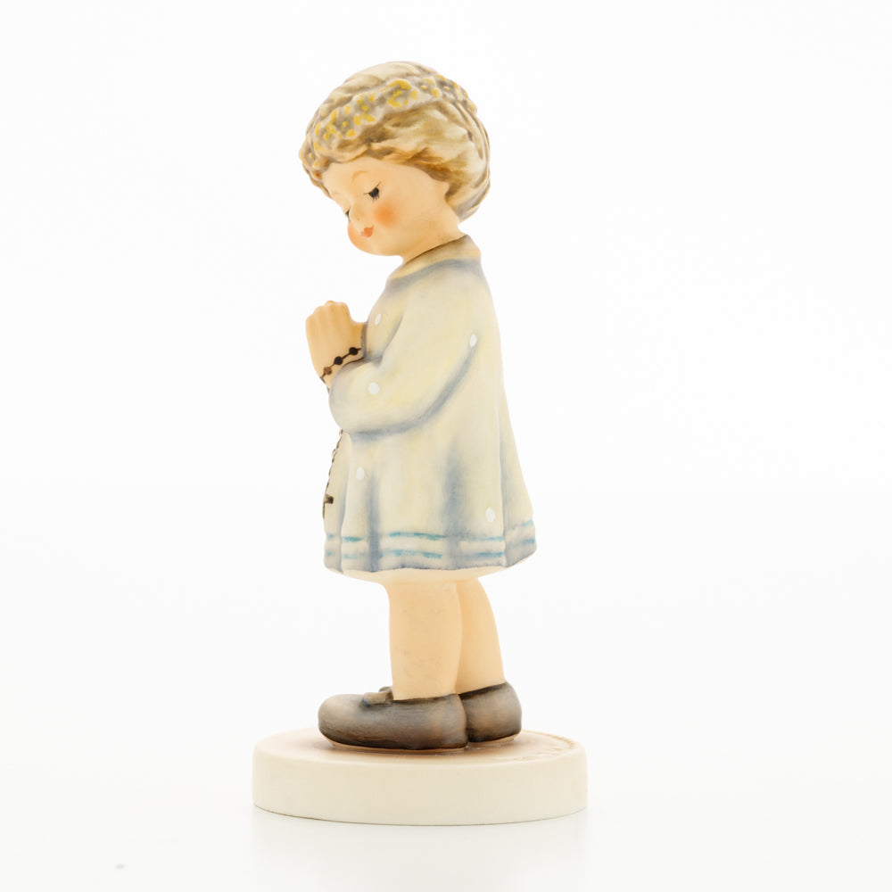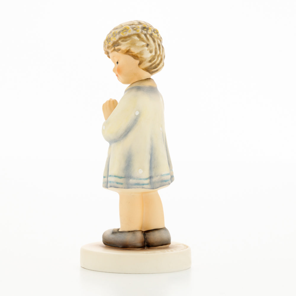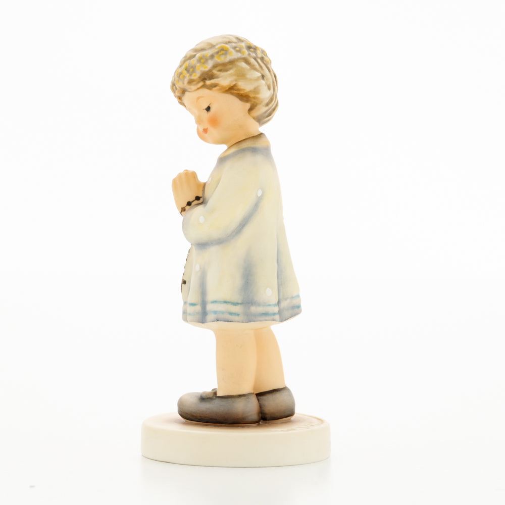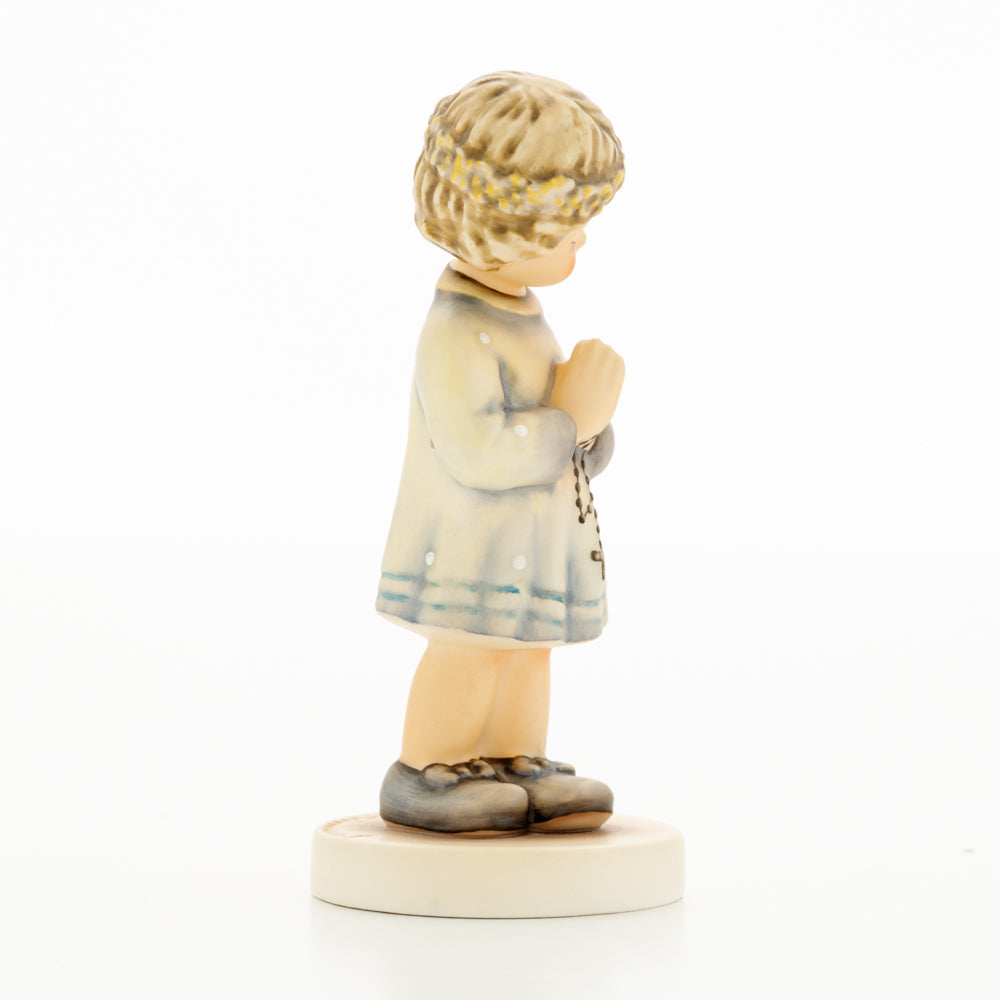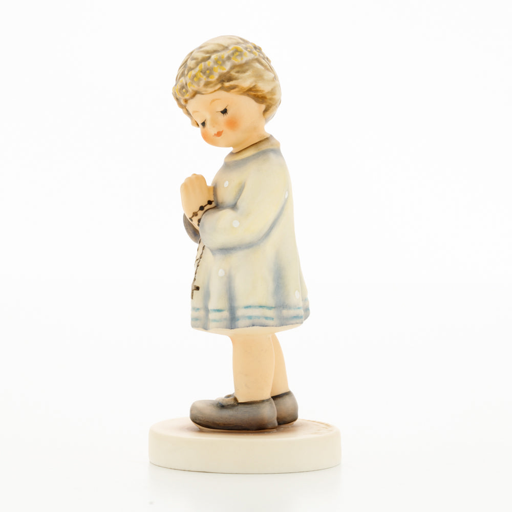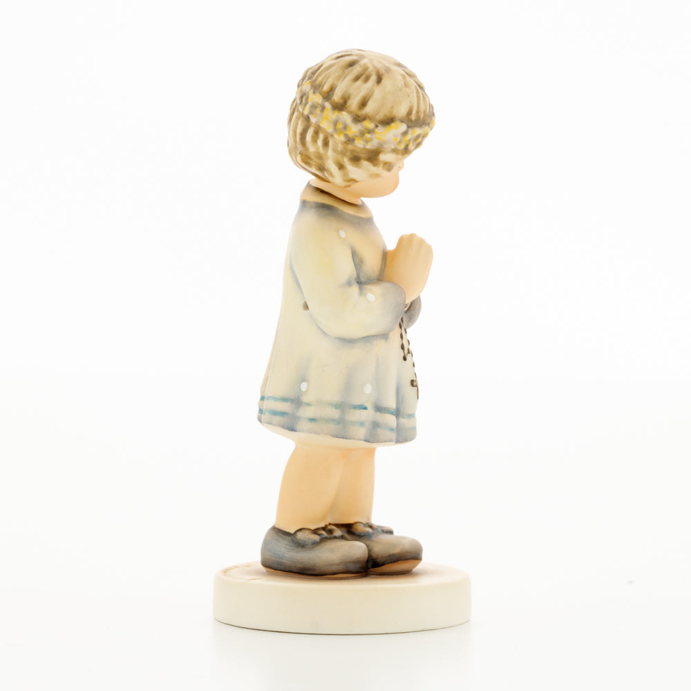 Andächtig und in Gedanken versunken faltet das Hummel-Mädchen die Hände zum Gebet. Um den linken Arm hat die original M.I. Hummel-Figur eine Kette mit Kreuz gebunden. Die Hummel-Figur lässt sich auch mit einem individuellen Schriftzug versehen. Ob als Erinnerung an die eigene Kommunion bzw. Konfirmation oder als Geschenk für ein Kommunionkind oder einen Konfirmanden/eine Konfirmandin: Mit dieser Hummel-Figur hat man stets ein wertvolles Andenken.