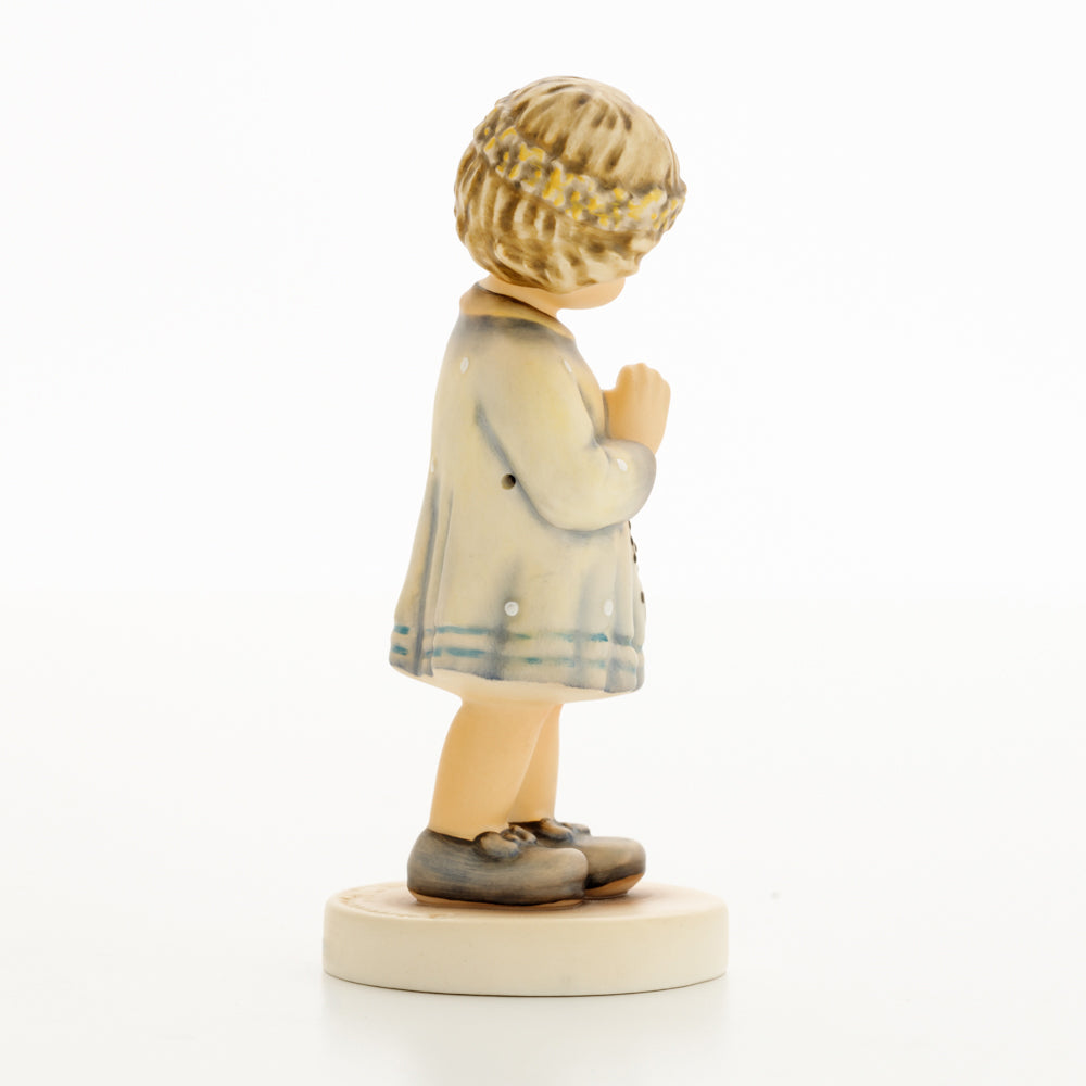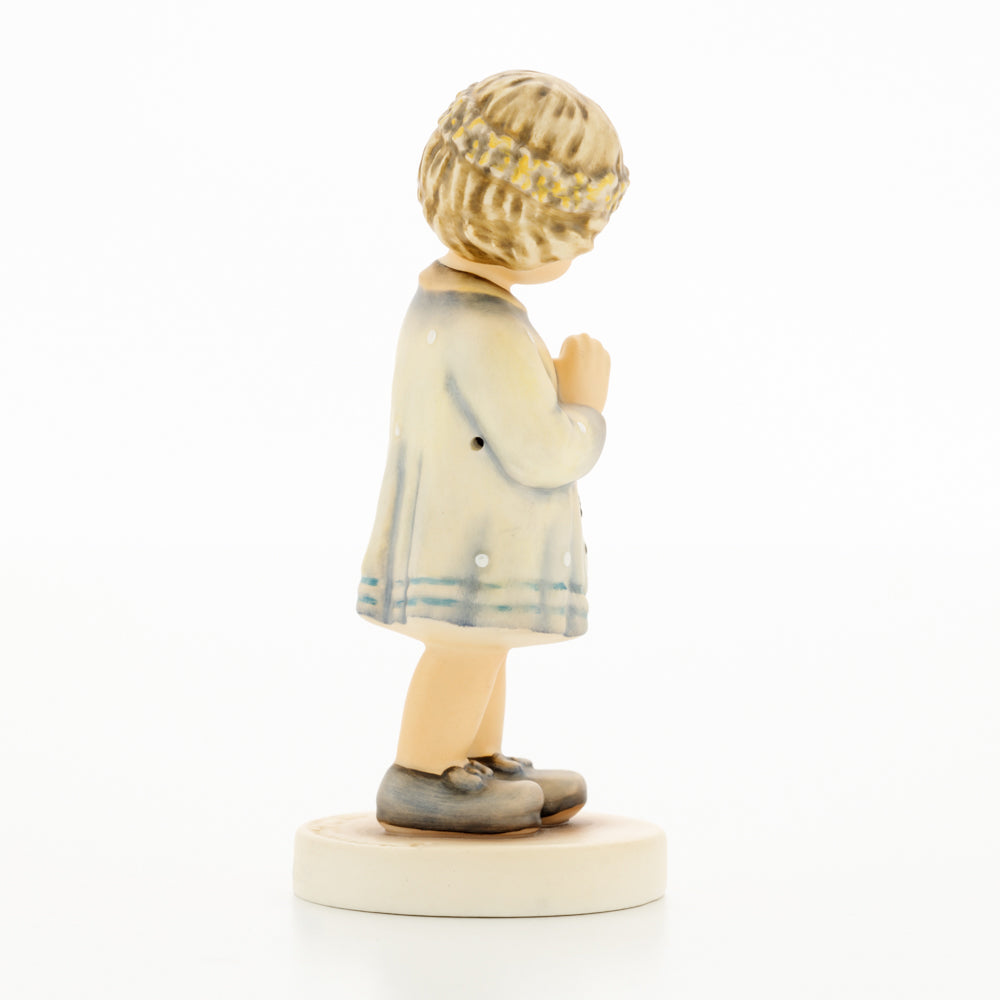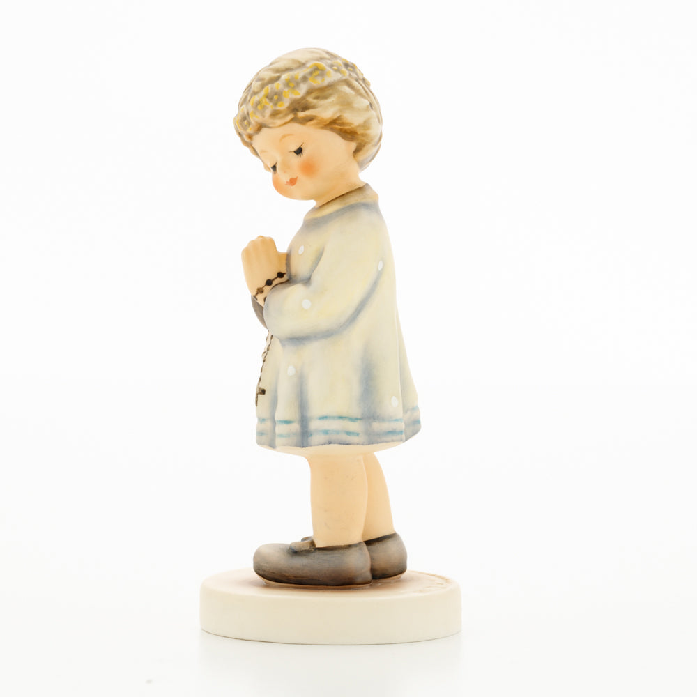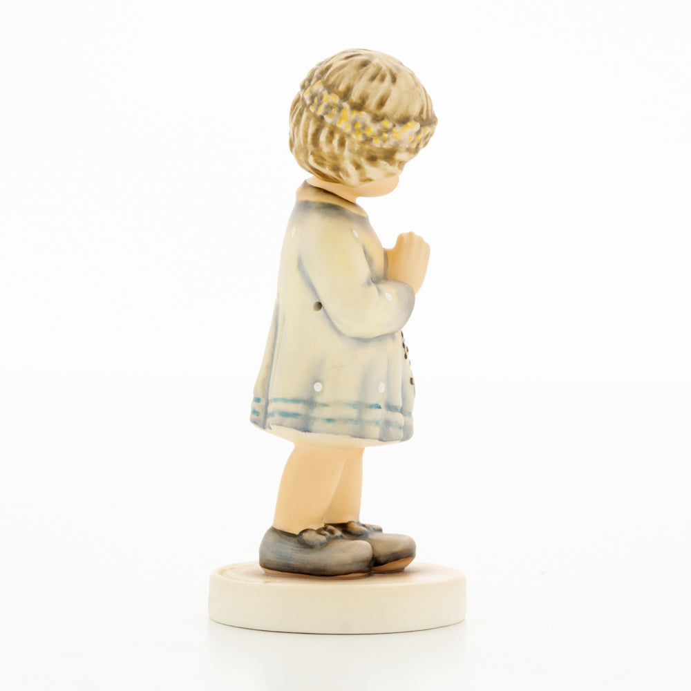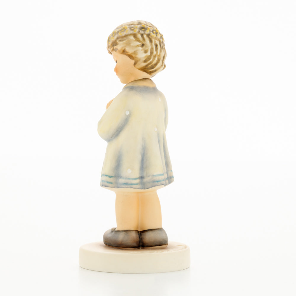 Andächtig und in Gedanken versunken faltet das Hummel-Mädchen die Hände zum Gebet. Um den linken Arm hat die original M.I. Hummel-Figur eine Kette mit Kreuz gebunden. Die Hummel-Figur lässt sich auch mit einem individuellen Schriftzug versehen. Ob als Erinnerung an die eigene Kommunion bzw. Konfirmation oder als Geschenk für ein Kommunionkind oder einen Konfirmanden/eine Konfirmandin: Mit dieser Hummel-Figur hat man stets ein wertvolles Andenken.