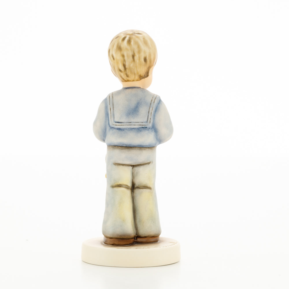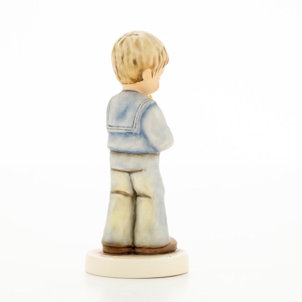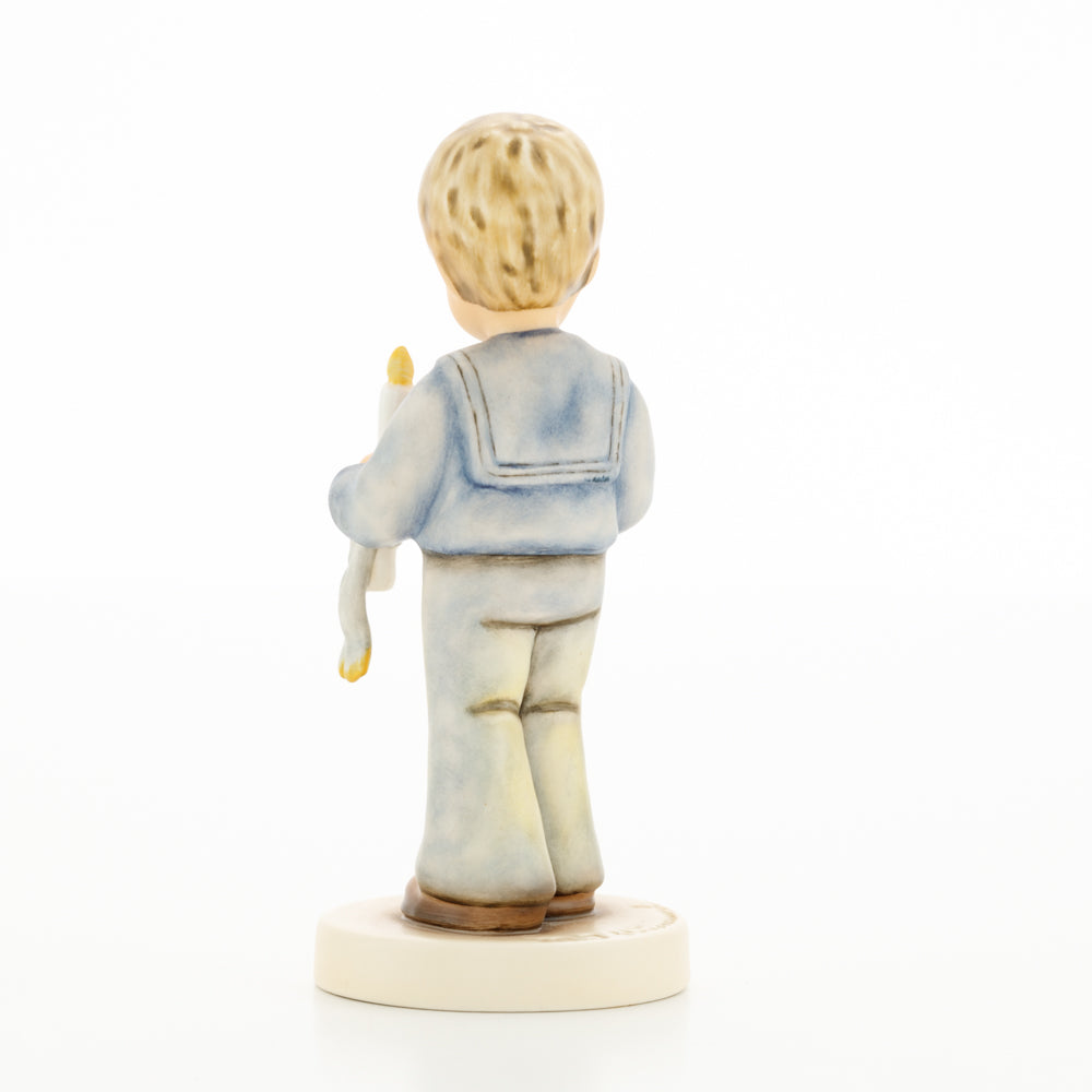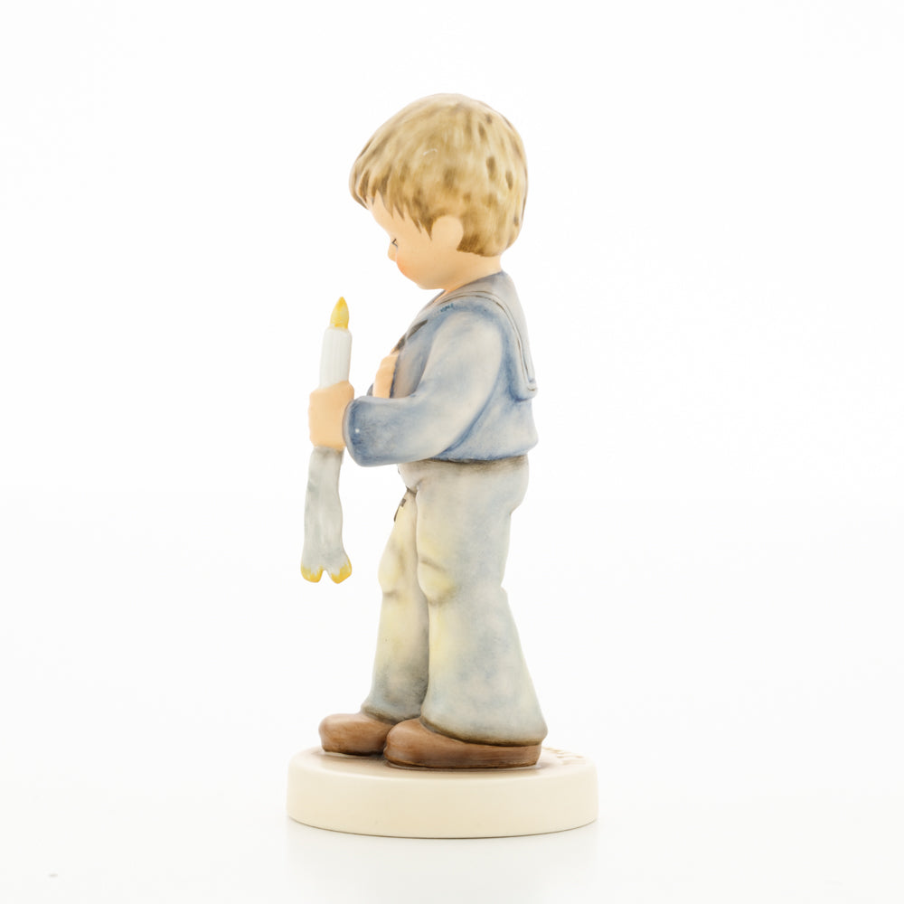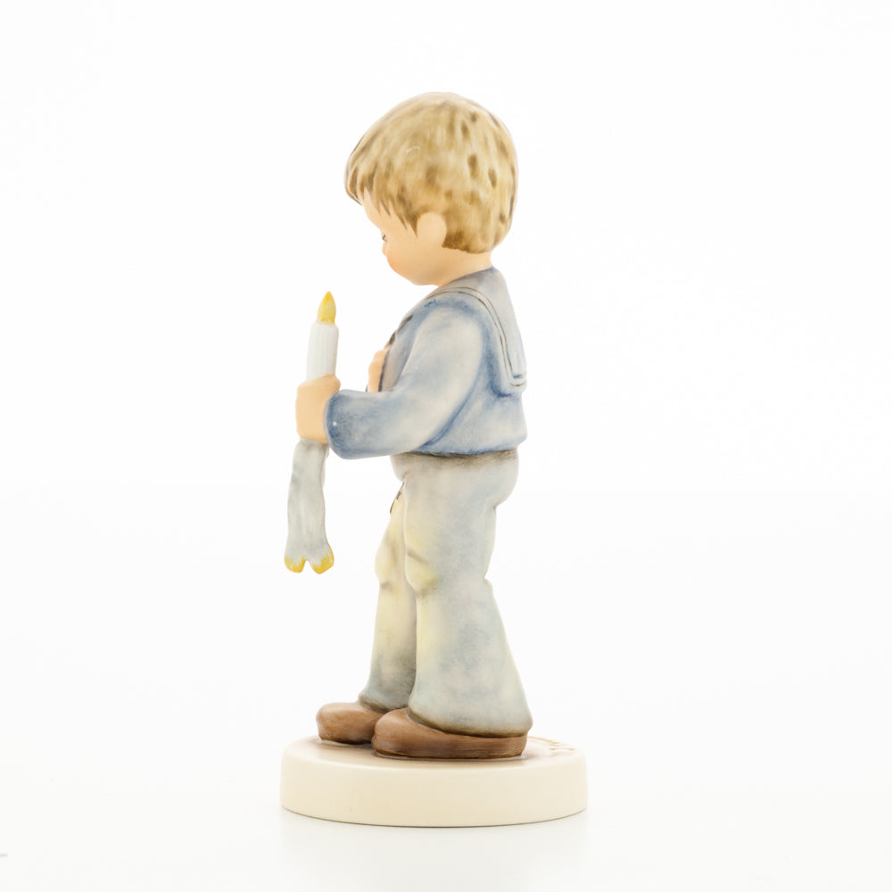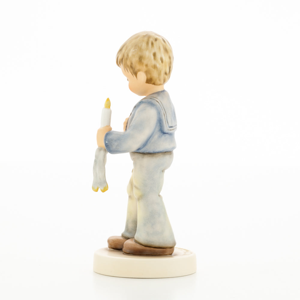 Die original M.I. Hummel-Figur "Kommunion Junge" stellt das Pendant zu der Hummel-Figur "Kommunion Mädchen" (HUM 814) dar. Auch der Junge hat eine mit einem Kreuzanhänger versehene Kette in der Hand. Im Gegensatz zu dem Hummel-Mädchen faltet der Hummel-Bub aber nicht die Hände, sondern hält in der linken Hand die für eine Kommunion bzw. Konfirmation typische Kerze. Wie das Mädchen eignet sich auch der Bub aus der Hummel Manufaktur Rödental als Geschenk zu Konfirmation oder Kommunion. Auch diese Hummel-Figur lässt sich für zzgl. zehn Euro individuell beschriften.