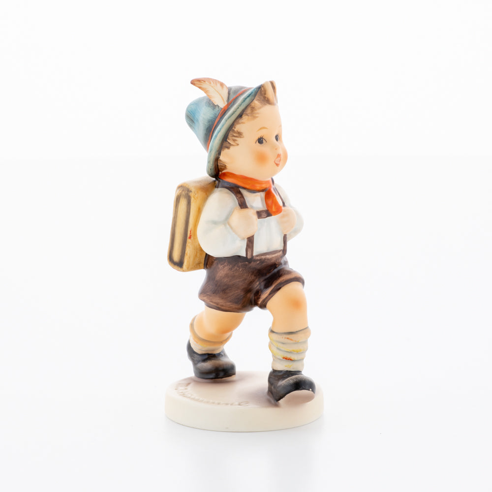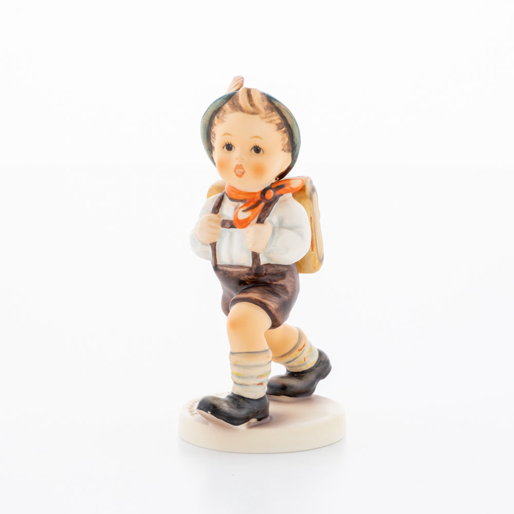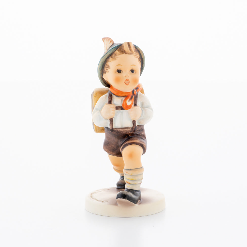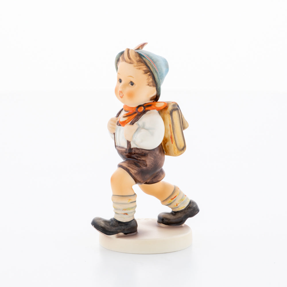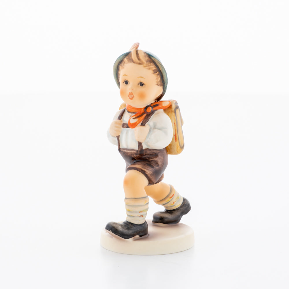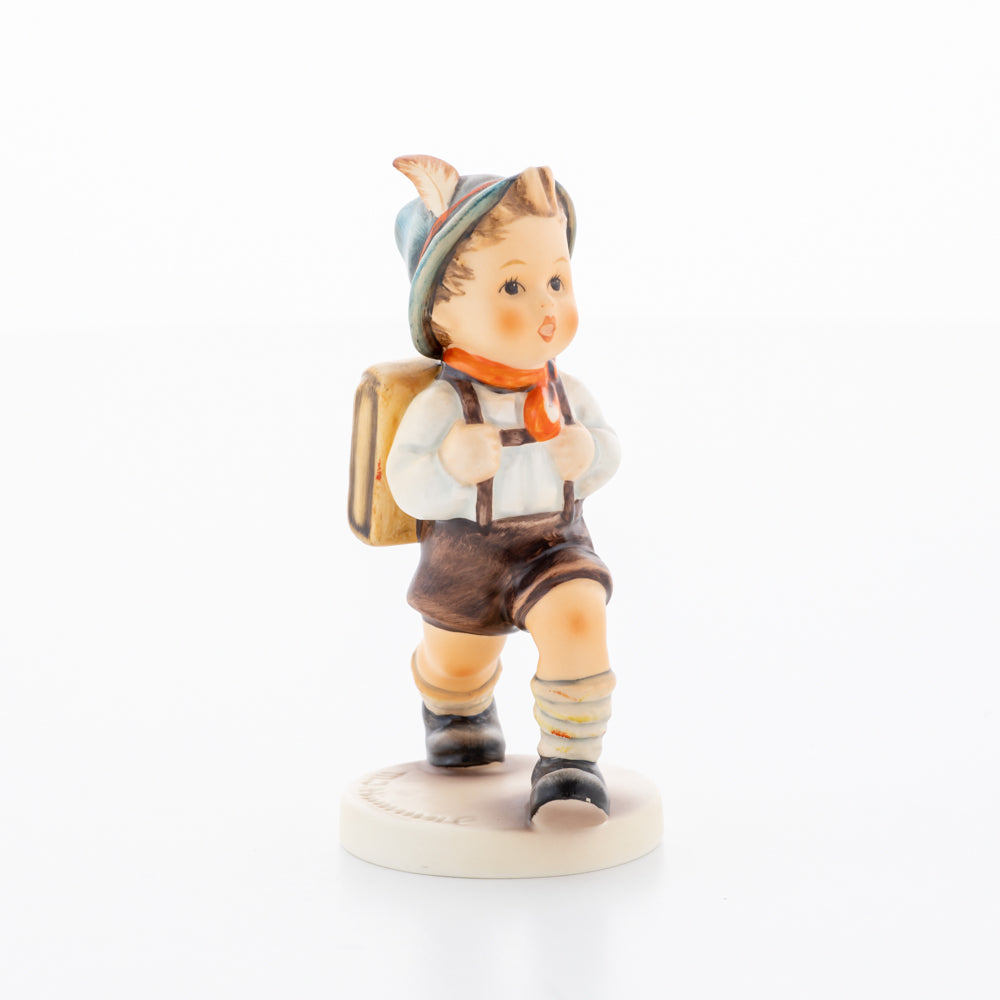 Halt, wo will der kleine Herr denn hin? Den Schulranzen auf dem Rücken und einen feschen Hut auf dem Kopf marschiert der kleine Hummel-Junge los. Aber er marschiert nicht in Richtung Schule! So macht er seinem Namen "Schulschwänzer" alle Ehre. Diese kesse M.I. Hummel-Figur wurde 1938 von Meistermodelleur Arthur Möller geformt. Die Figur, die an die original Zeichnungen der Schwester Maria Innocentia Hummel angelehnt ist, erstrahlt in einer niedlichen und den Betrachter verzaubernden Optik. Mittlerweile gibt es die herzige Hummel-Figur in drei verschiedenen Größen.