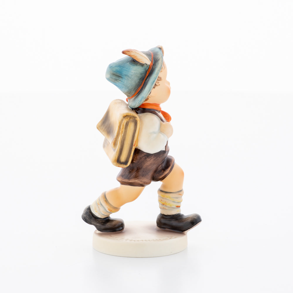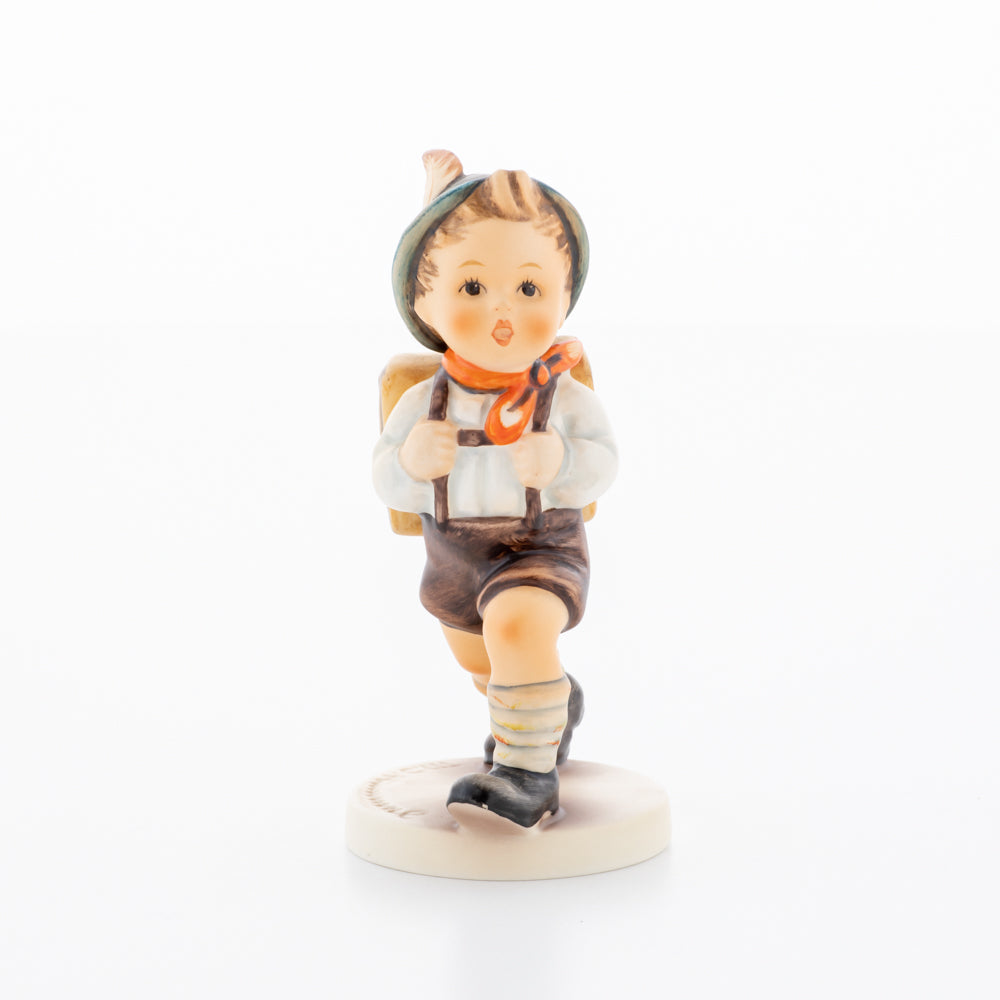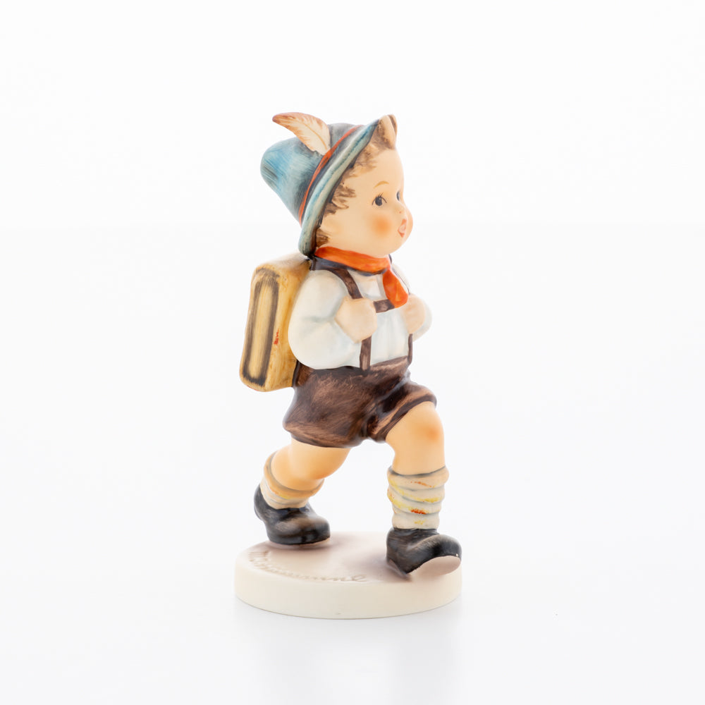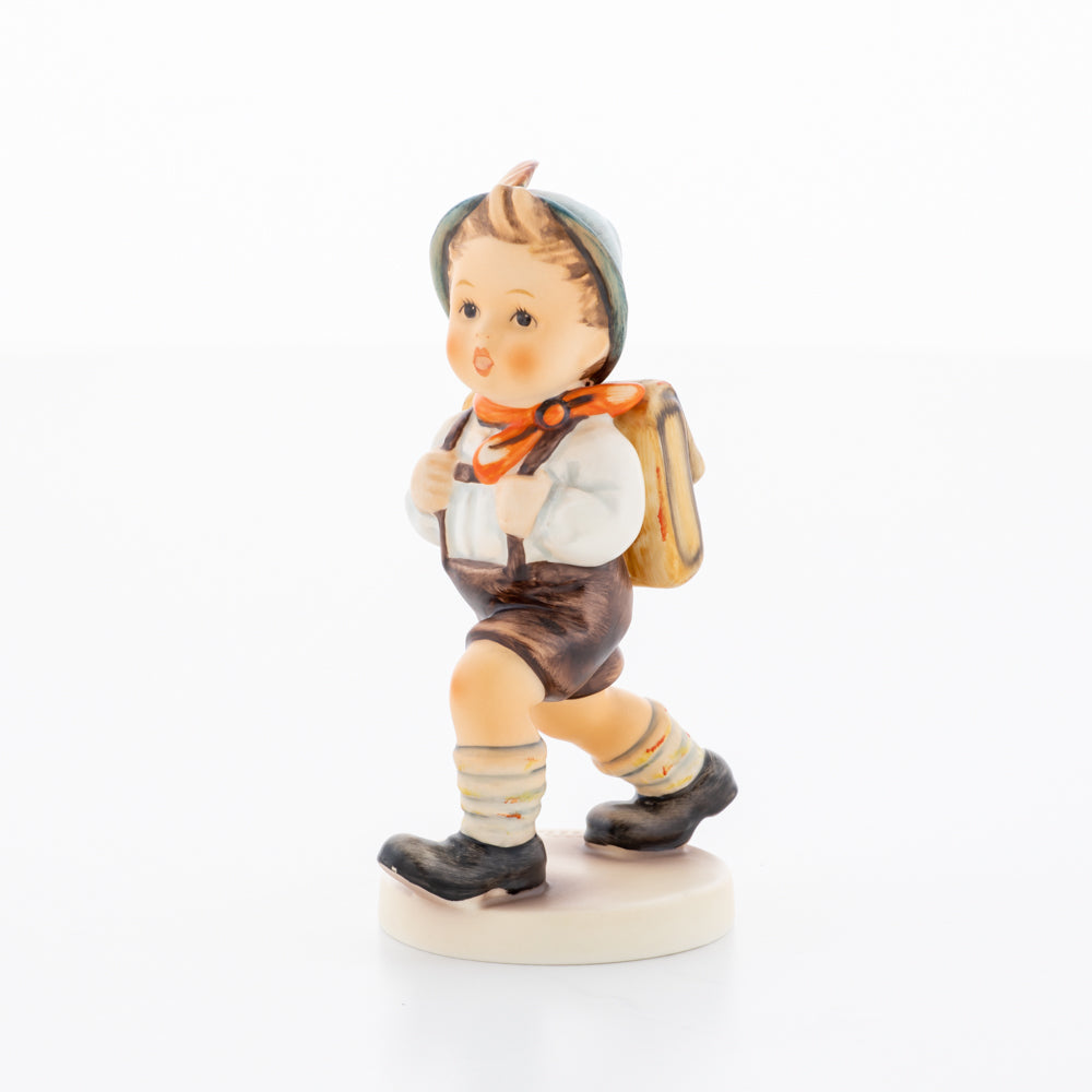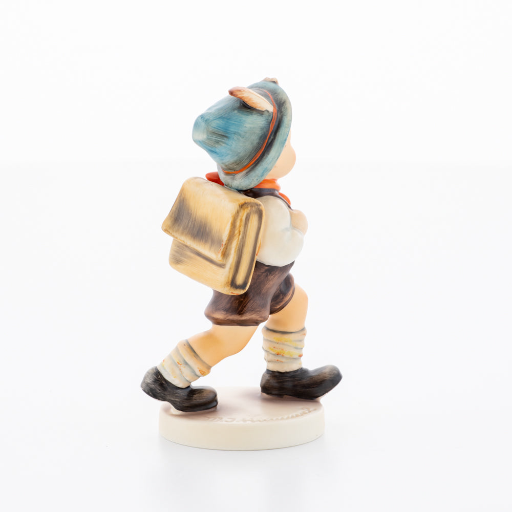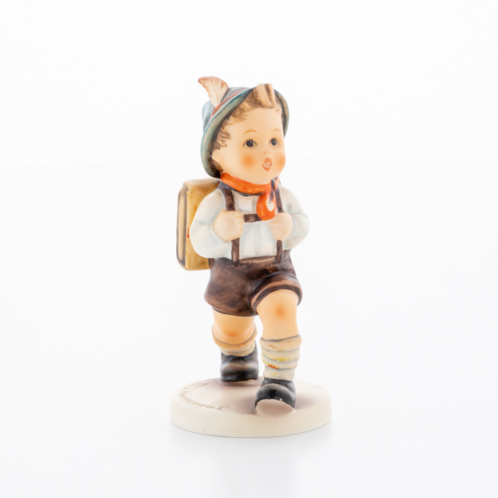 Halt, wo will der kleine Herr denn hin? Den Schulranzen auf dem Rücken und einen feschen Hut auf dem Kopf marschiert der kleine Hummel-Junge los. Aber er marschiert nicht in Richtung Schule! So macht er seinem Namen "Schulschwänzer" alle Ehre. Diese kesse M.I. Hummel-Figur wurde 1938 von Meistermodelleur Arthur Möller geformt. Die Figur, die an die original Zeichnungen der Schwester Maria Innocentia Hummel angelehnt ist, erstrahlt in einer niedlichen und den Betrachter verzaubernden Optik. Mittlerweile gibt es die herzige Hummel-Figur in drei verschiedenen Größen.