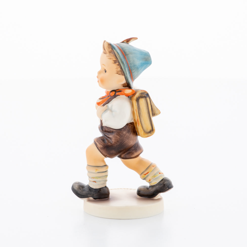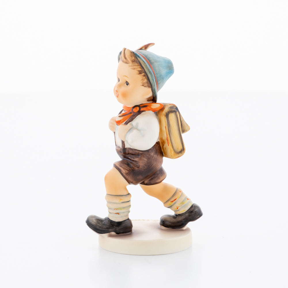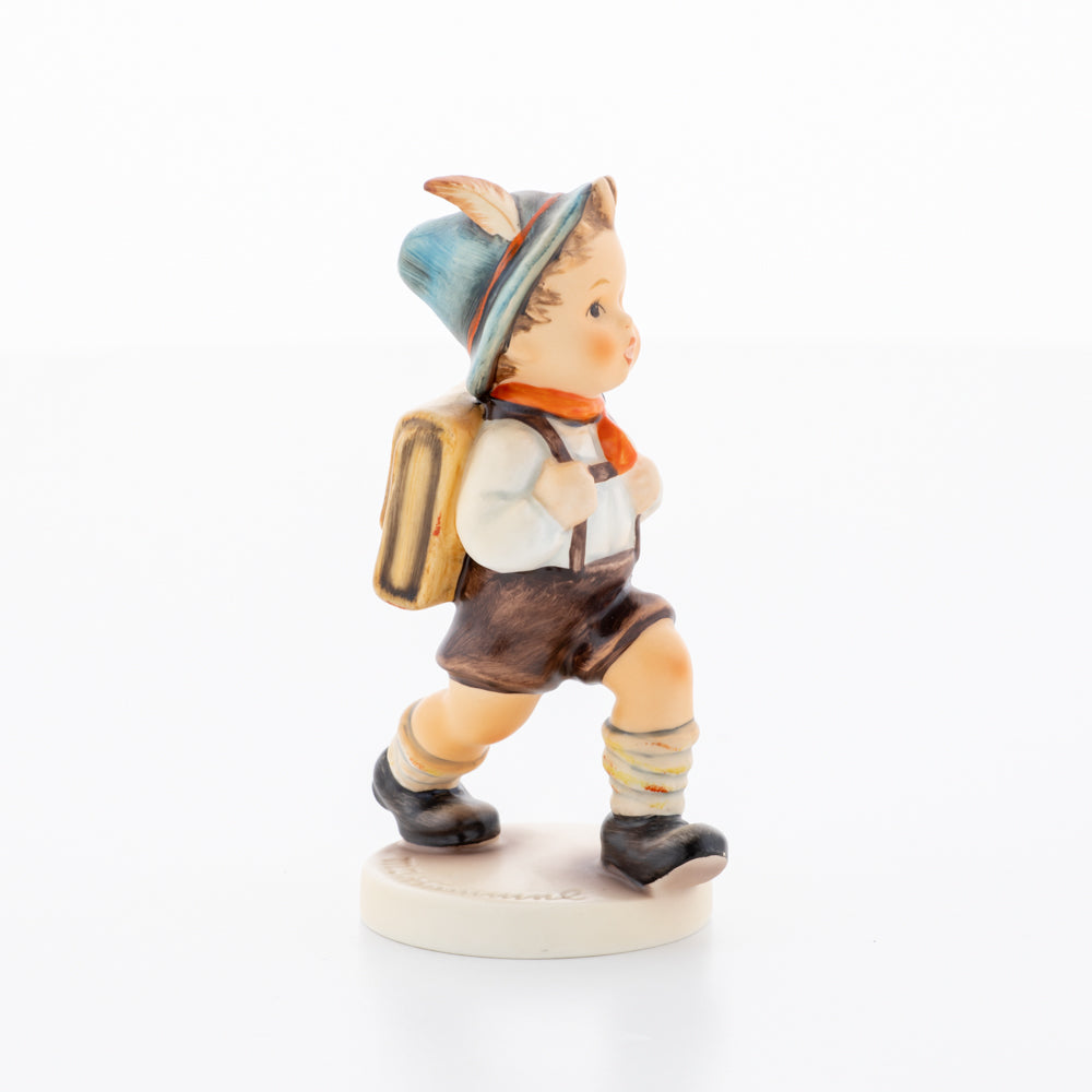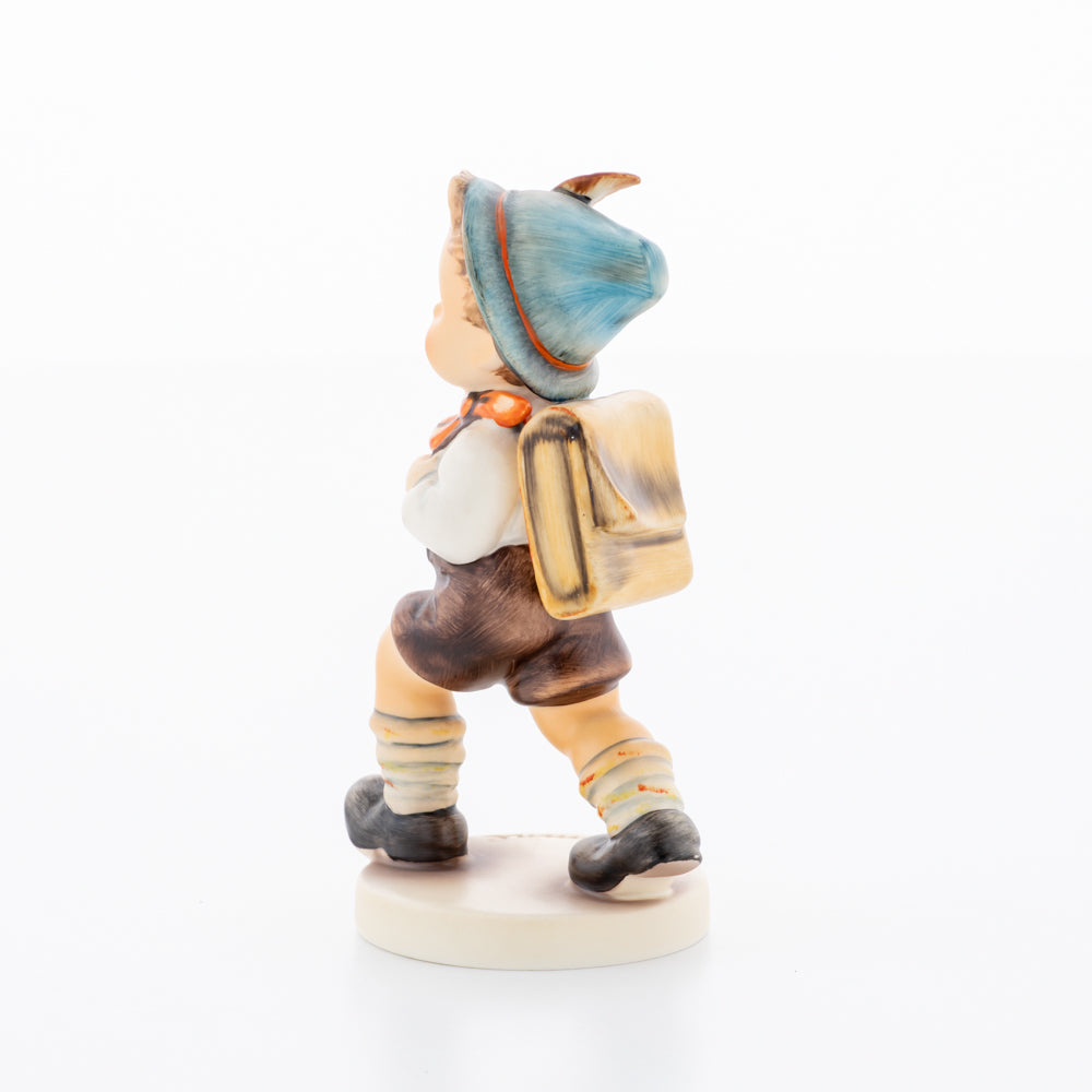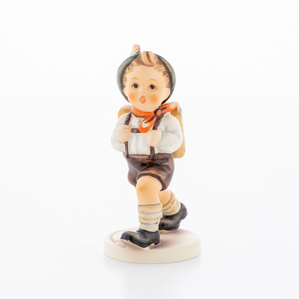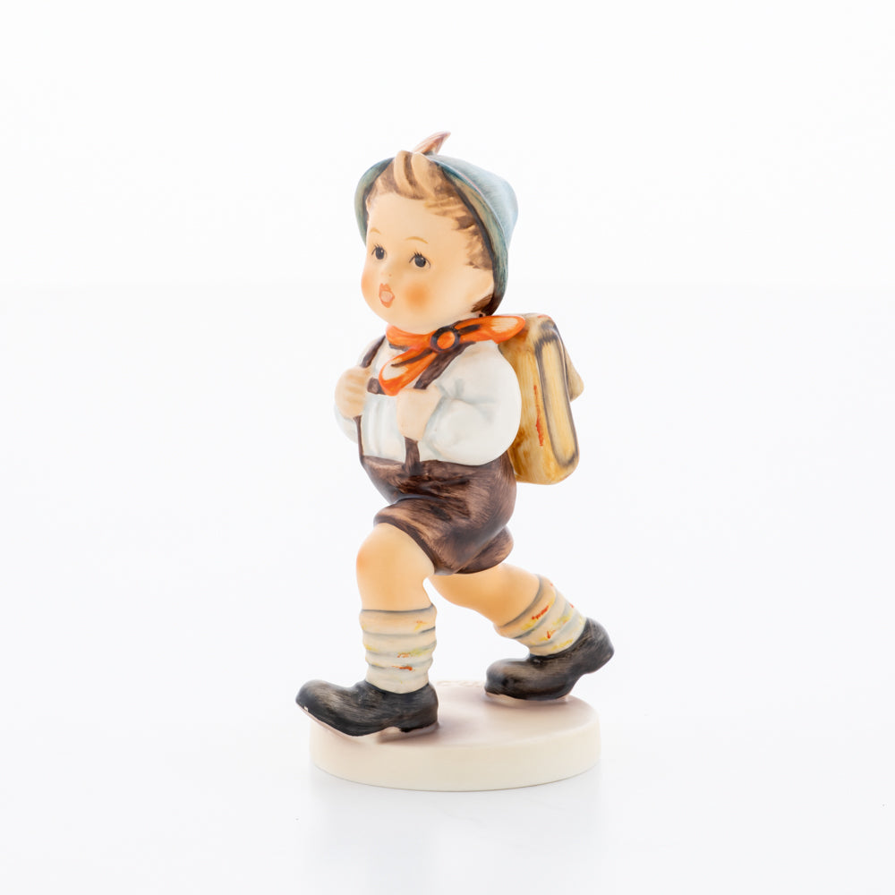 Halt, wo will der kleine Herr denn hin? Den Schulranzen auf dem Rücken und einen feschen Hut auf dem Kopf marschiert der kleine Hummel-Junge los. Aber er marschiert nicht in Richtung Schule! So macht er seinem Namen "Schulschwänzer" alle Ehre. Diese kesse M.I. Hummel-Figur wurde 1938 von Meistermodelleur Arthur Möller geformt. Die Figur, die an die original Zeichnungen der Schwester Maria Innocentia Hummel angelehnt ist, erstrahlt in einer niedlichen und den Betrachter verzaubernden Optik. Mittlerweile gibt es die herzige Hummel-Figur in drei verschiedenen Größen.