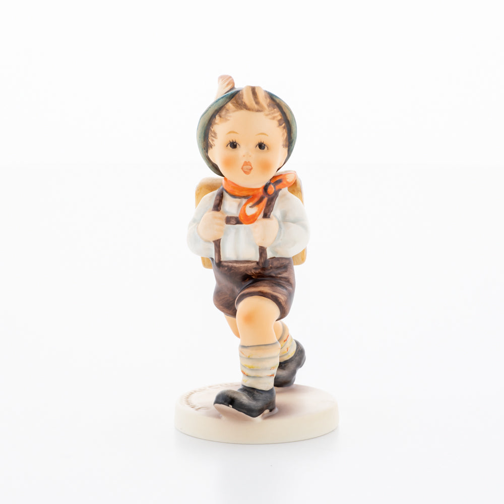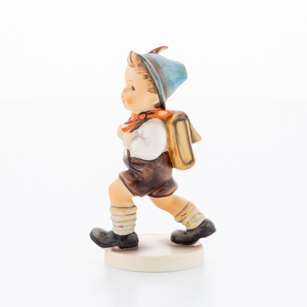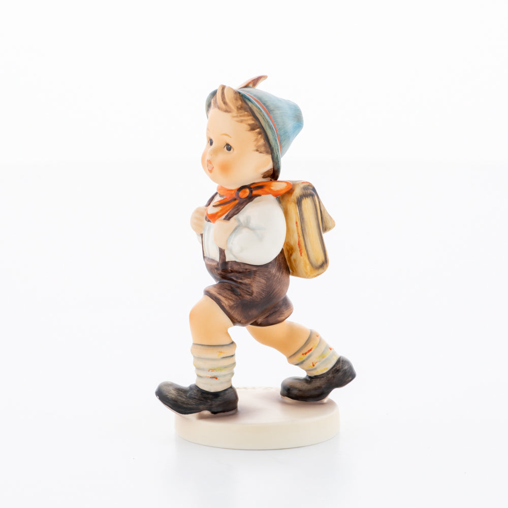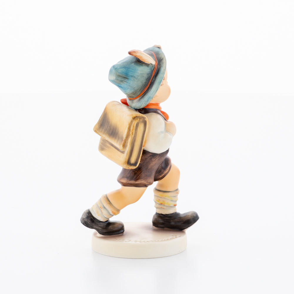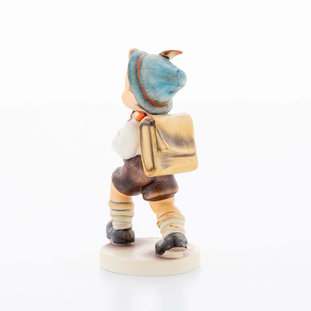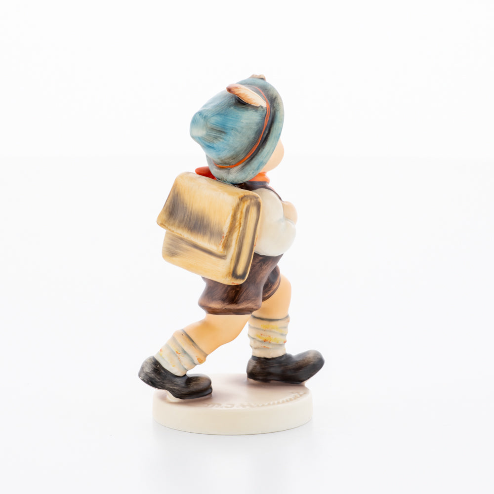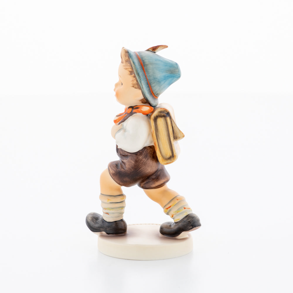 Halt, wo will der kleine Herr denn hin? Den Schulranzen auf dem Rücken und einen feschen Hut auf dem Kopf marschiert der kleine Hummel-Junge los. Aber er marschiert nicht in Richtung Schule! So macht er seinem Namen "Schulschwänzer" alle Ehre. Diese kesse M.I. Hummel-Figur wurde 1938 von Meistermodelleur Arthur Möller geformt. Die Figur, die an die original Zeichnungen der Schwester Maria Innocentia Hummel angelehnt ist, erstrahlt in einer niedlichen und den Betrachter verzaubernden Optik. Mittlerweile gibt es die herzige Hummel-Figur in drei verschiedenen Größen.