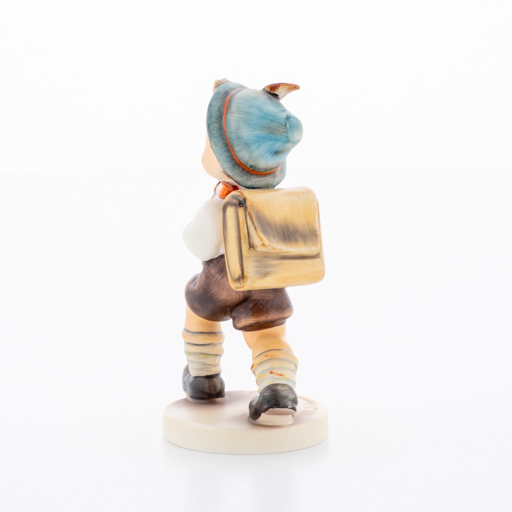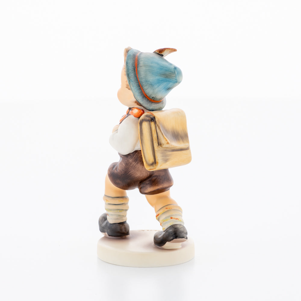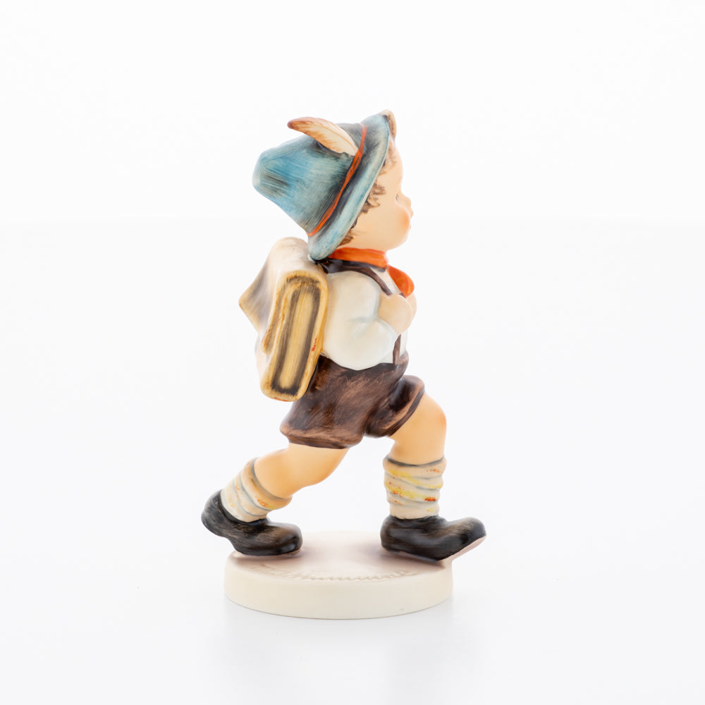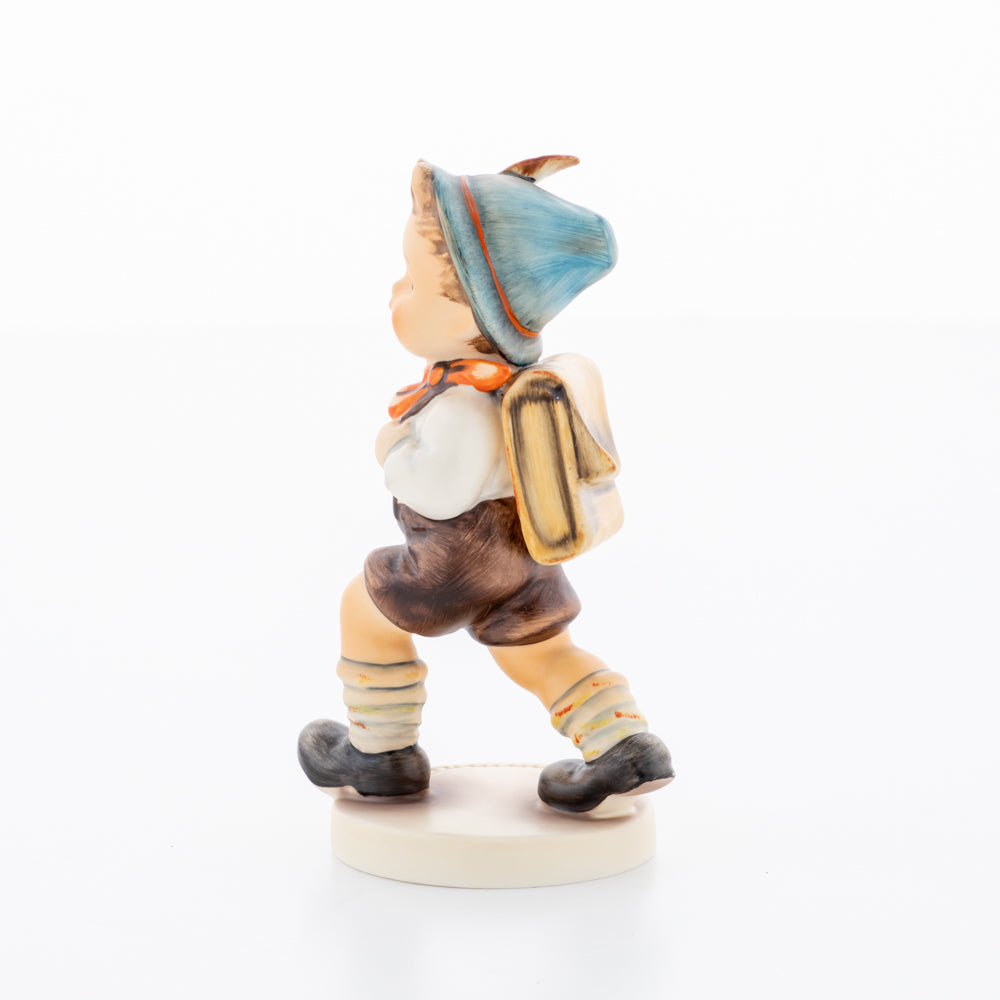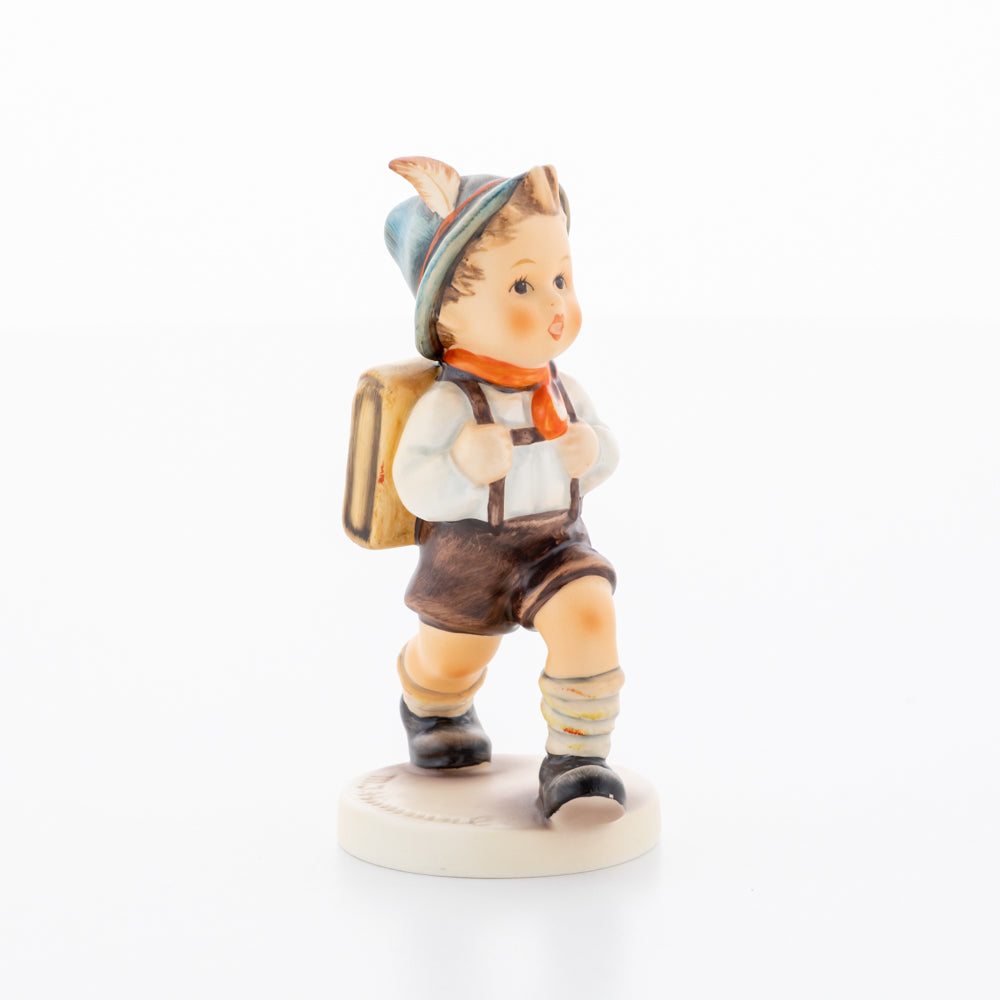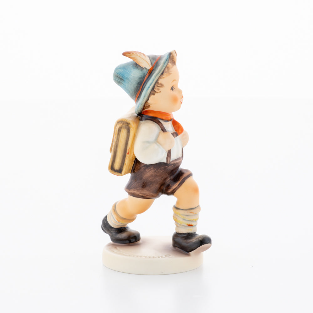 Halt, wo will der kleine Herr denn hin? Den Schulranzen auf dem Rücken und einen feschen Hut auf dem Kopf marschiert der kleine Hummel-Junge los. Aber er marschiert nicht in Richtung Schule! So macht er seinem Namen "Schulschwänzer" alle Ehre. Diese kesse M.I. Hummel-Figur wurde 1938 von Meistermodelleur Arthur Möller geformt. Die Figur, die an die original Zeichnungen der Schwester Maria Innocentia Hummel angelehnt ist, erstrahlt in einer niedlichen und den Betrachter verzaubernden Optik. Mittlerweile gibt es die herzige Hummel-Figur in drei verschiedenen Größen.