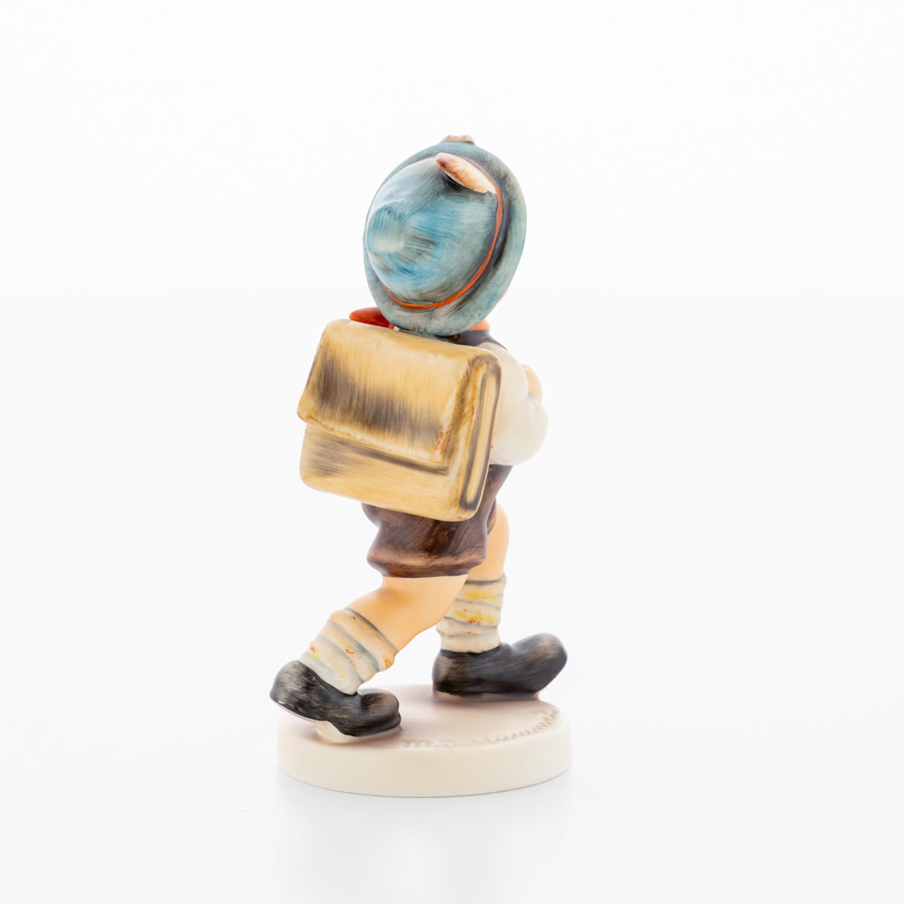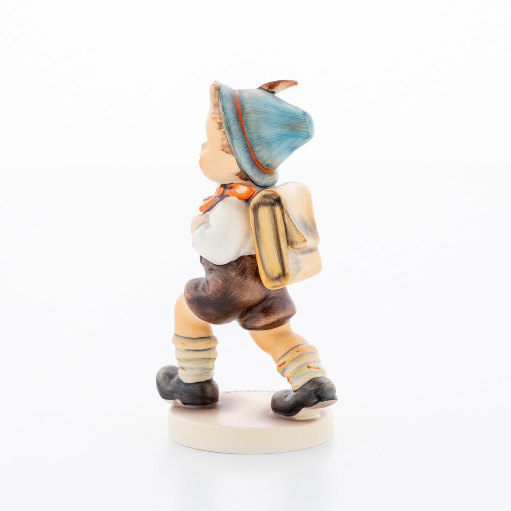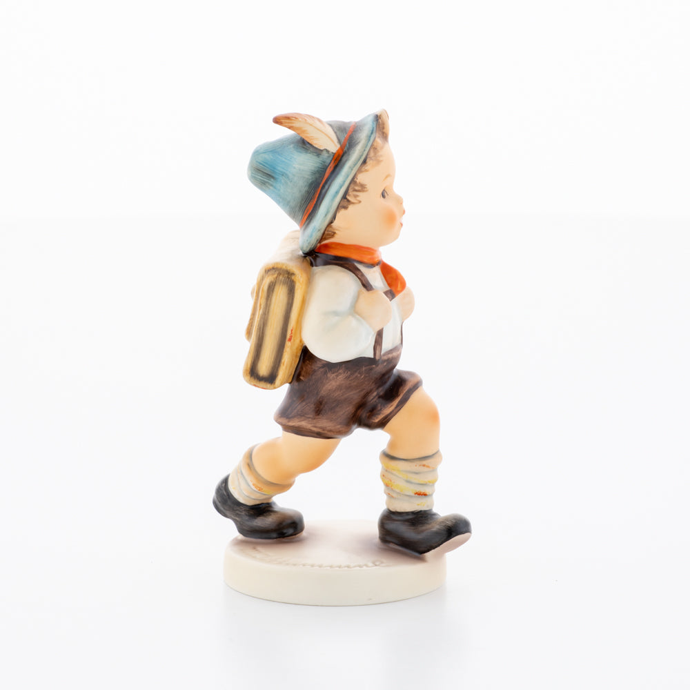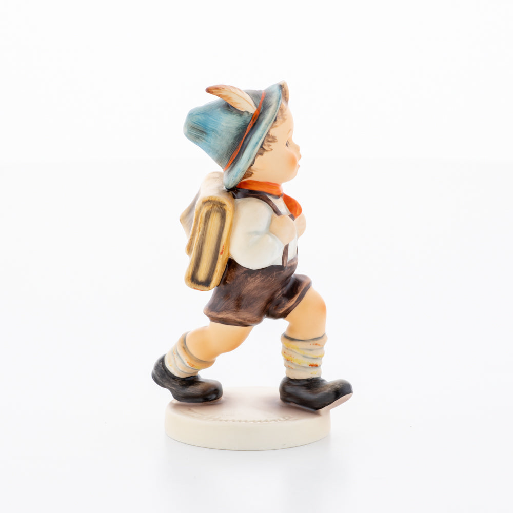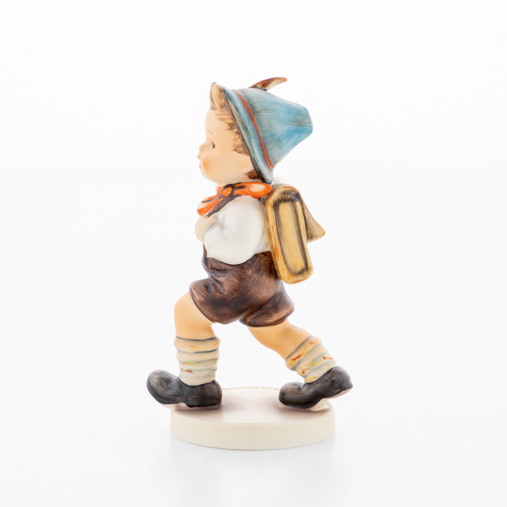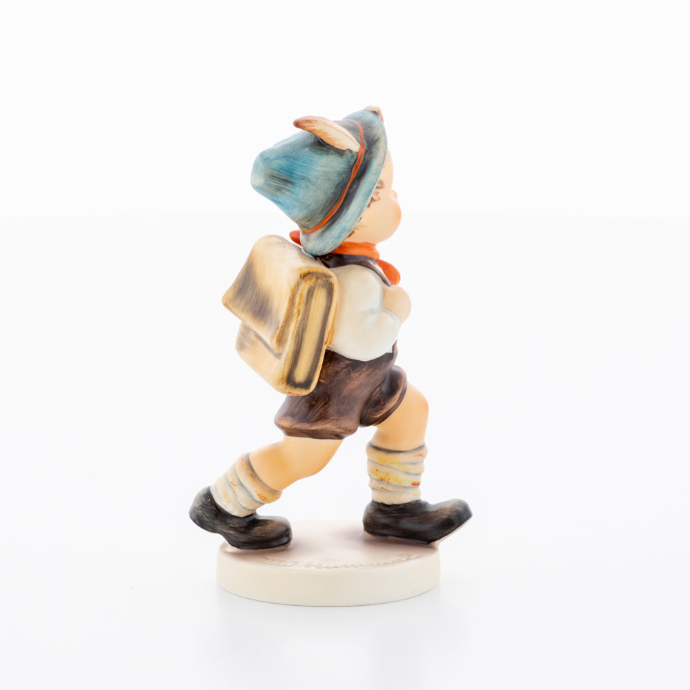 Halt, wo will der kleine Herr denn hin? Den Schulranzen auf dem Rücken und einen feschen Hut auf dem Kopf marschiert der kleine Hummel-Junge los. Aber er marschiert nicht in Richtung Schule! So macht er seinem Namen "Schulschwänzer" alle Ehre. Diese kesse M.I. Hummel-Figur wurde 1938 von Meistermodelleur Arthur Möller geformt. Die Figur, die an die original Zeichnungen der Schwester Maria Innocentia Hummel angelehnt ist, erstrahlt in einer niedlichen und den Betrachter verzaubernden Optik. Mittlerweile gibt es die herzige Hummel-Figur in drei verschiedenen Größen.
