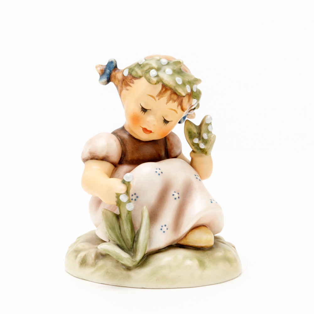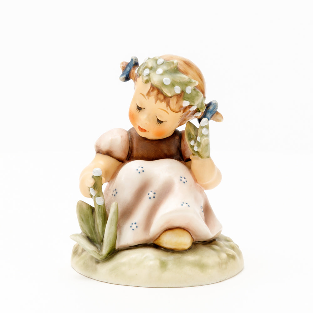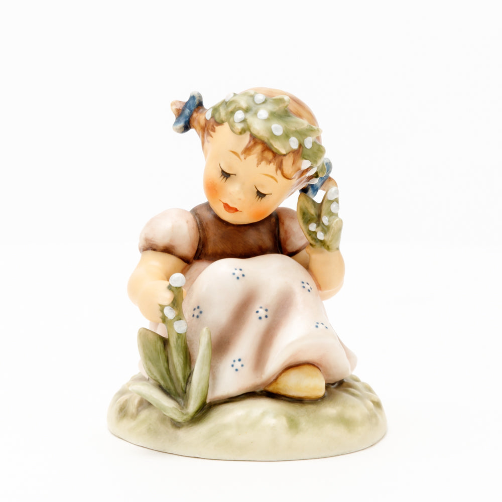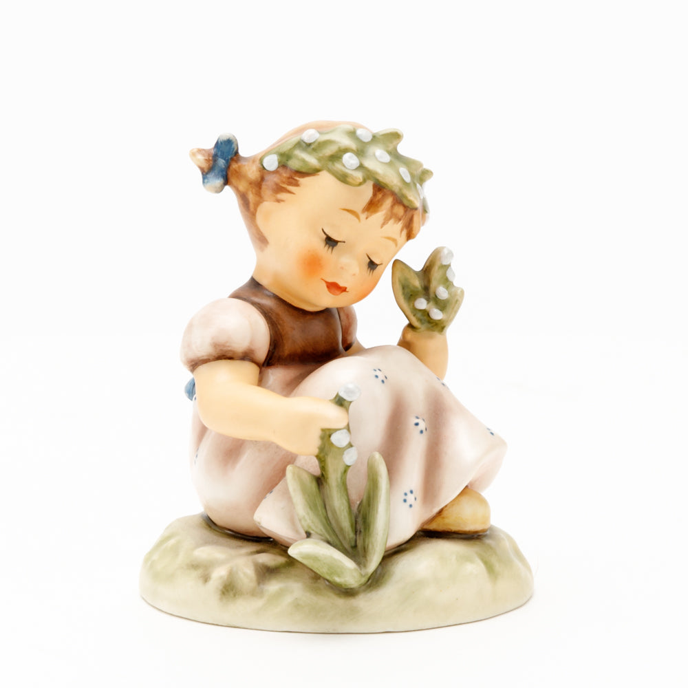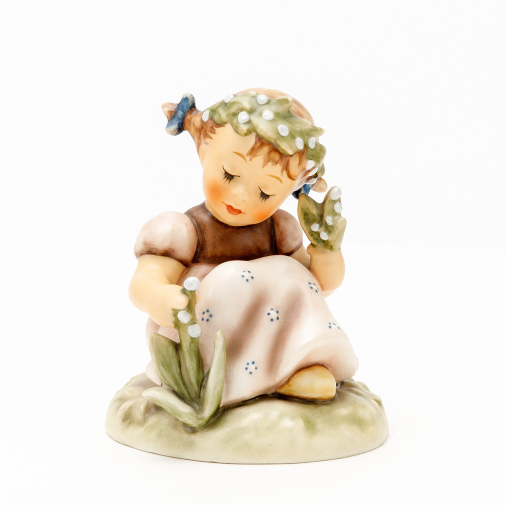 Einen Blumenkranz im Haar, die Haare zu Zöpfen gebunden und ein leichtes Dirndl an. So sitzt das Hummel-Mädchen auf der Wiese und pflückt Blumen. Genauer gesagt sammelt die original M.I. Hummel-Figur Maiglöckchen. So trägt die Hummel-Figur auch den Namen "Maiglöckchen". Modelliert wurde das Blumenmädchen aus der Hummel Manufaktur Rödental im Jahre 1999 von Helmut Fischer. Im gleichen Jahr kam die Keramikfigur in Europa auf den Markt. Daneben ist die frühlingshafte Hummel-Figur auch auf dem Jahresteller für das Jahr 2000 zu finden.