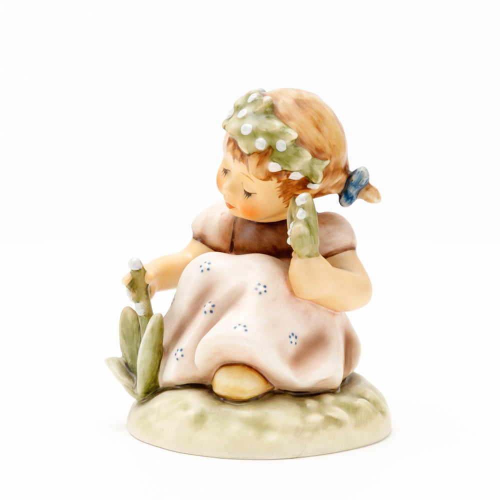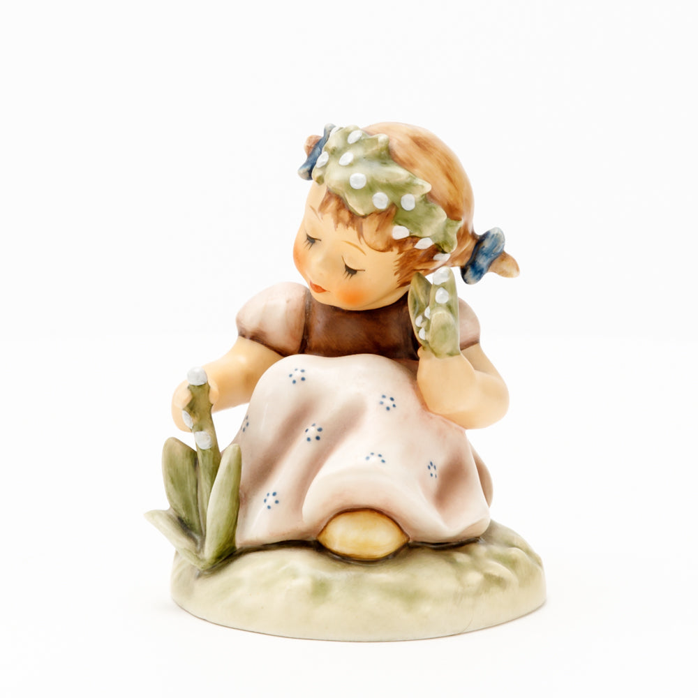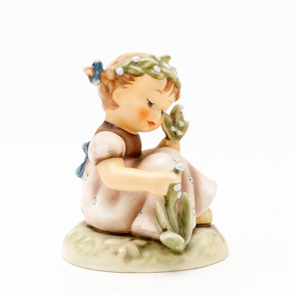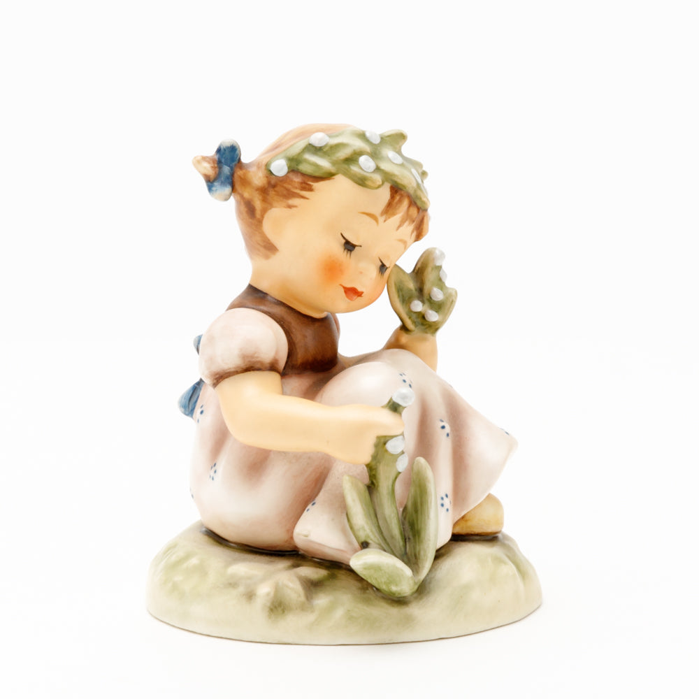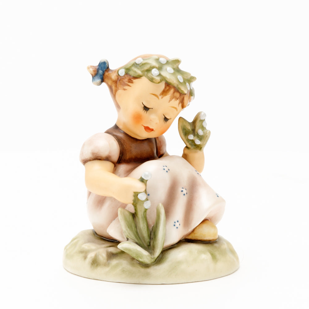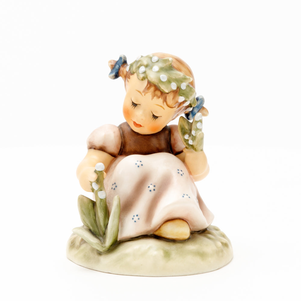 Einen Blumenkranz im Haar, die Haare zu Zöpfen gebunden und ein leichtes Dirndl an. So sitzt das Hummel-Mädchen auf der Wiese und pflückt Blumen. Genauer gesagt sammelt die original M.I. Hummel-Figur Maiglöckchen. So trägt die Hummel-Figur auch den Namen "Maiglöckchen". Modelliert wurde das Blumenmädchen aus der Hummel Manufaktur Rödental im Jahre 1999 von Helmut Fischer. Im gleichen Jahr kam die Keramikfigur in Europa auf den Markt. Daneben ist die frühlingshafte Hummel-Figur auch auf dem Jahresteller für das Jahr 2000 zu finden.