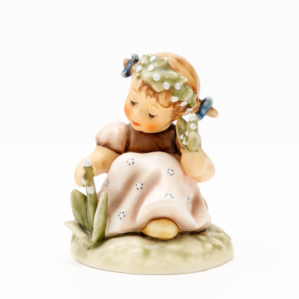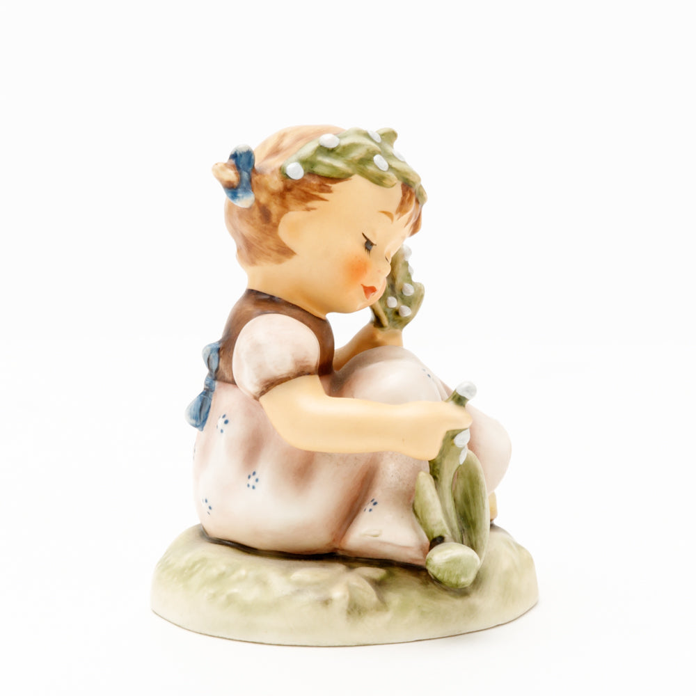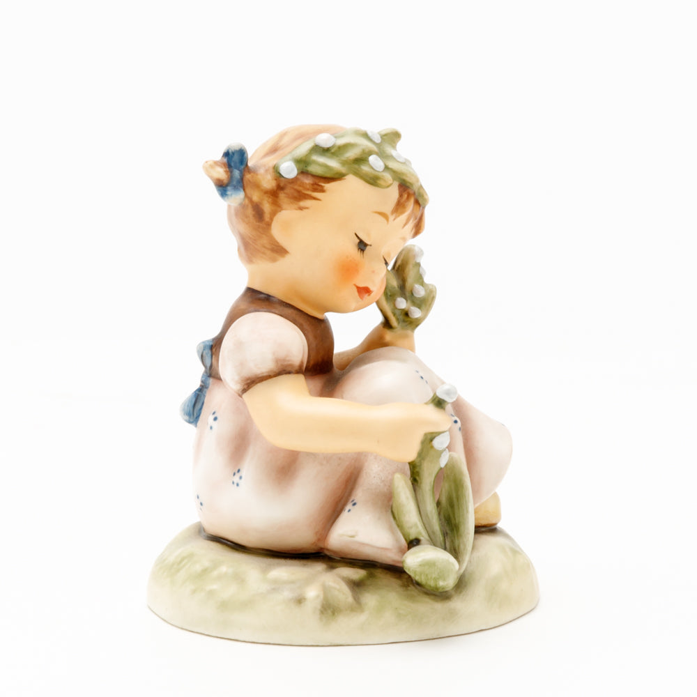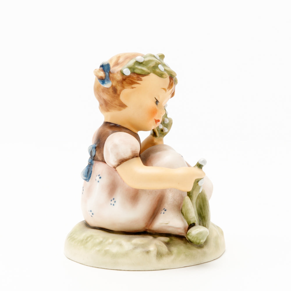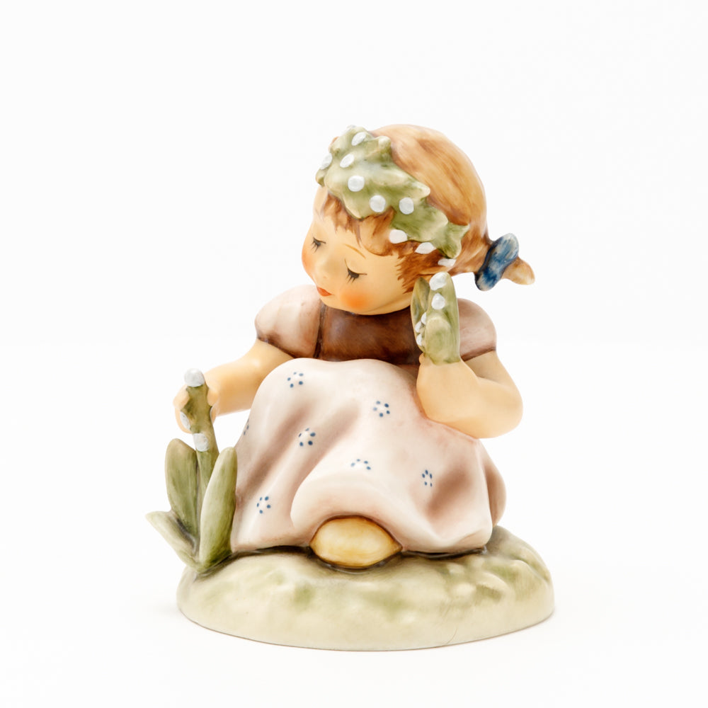 Einen Blumenkranz im Haar, die Haare zu Zöpfen gebunden und ein leichtes Dirndl an. So sitzt das Hummel-Mädchen auf der Wiese und pflückt Blumen. Genauer gesagt sammelt die original M.I. Hummel-Figur Maiglöckchen. So trägt die Hummel-Figur auch den Namen "Maiglöckchen". Modelliert wurde das Blumenmädchen aus der Hummel Manufaktur Rödental im Jahre 1999 von Helmut Fischer. Im gleichen Jahr kam die Keramikfigur in Europa auf den Markt. Daneben ist die frühlingshafte Hummel-Figur auch auf dem Jahresteller für das Jahr 2000 zu finden.