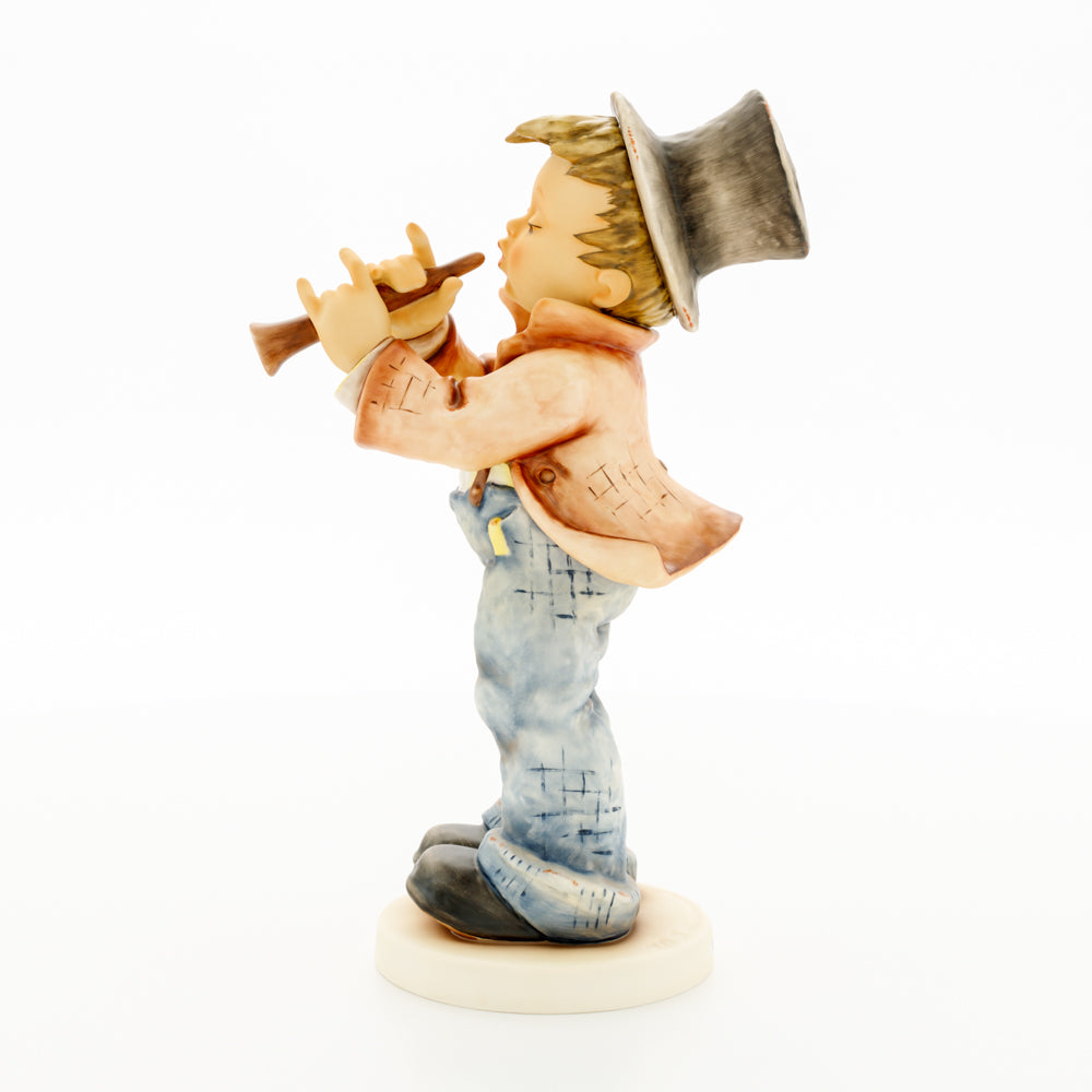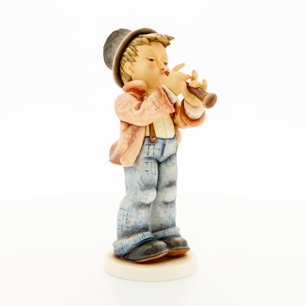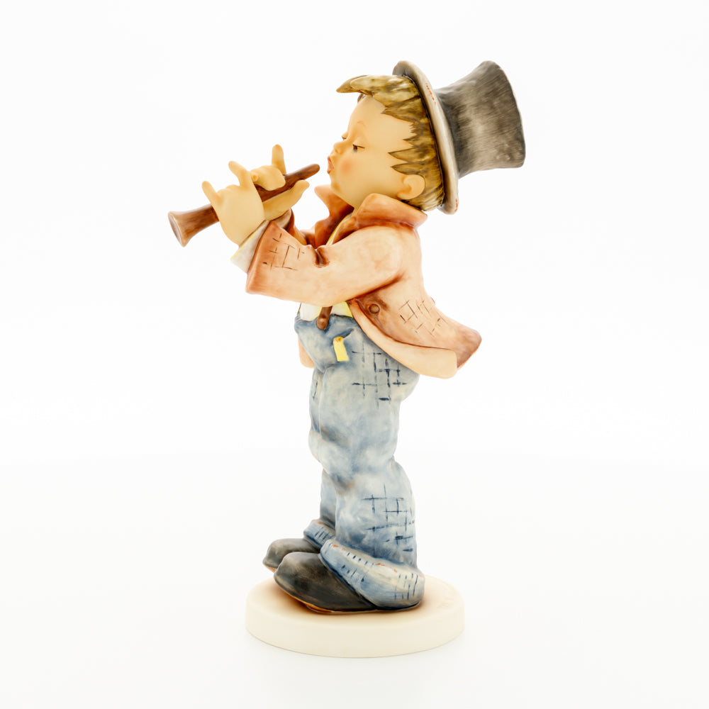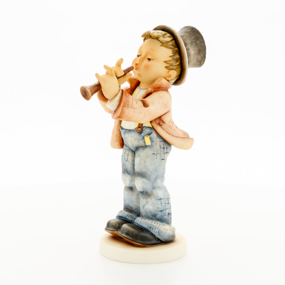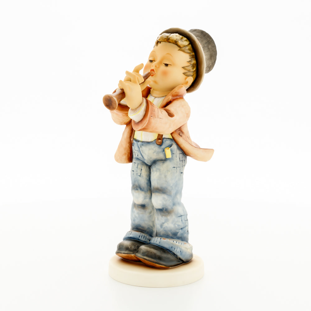 Diese Figur wurde 1938 von Arthur Möller modelliert. Es gibt sie in vielen Größenvariationen mit unterschiedlicher Position der Finger auf der Flöte. Die Farbe des Huts ist Dunkelgrau oder Schwarz. Bei älteren Modellen ist der Hut hellgrau. Die Figur ist Bestandteil des Hummel-Orchesters und des Weiteren die zweite Figur der „Kleinen Musikanten“.