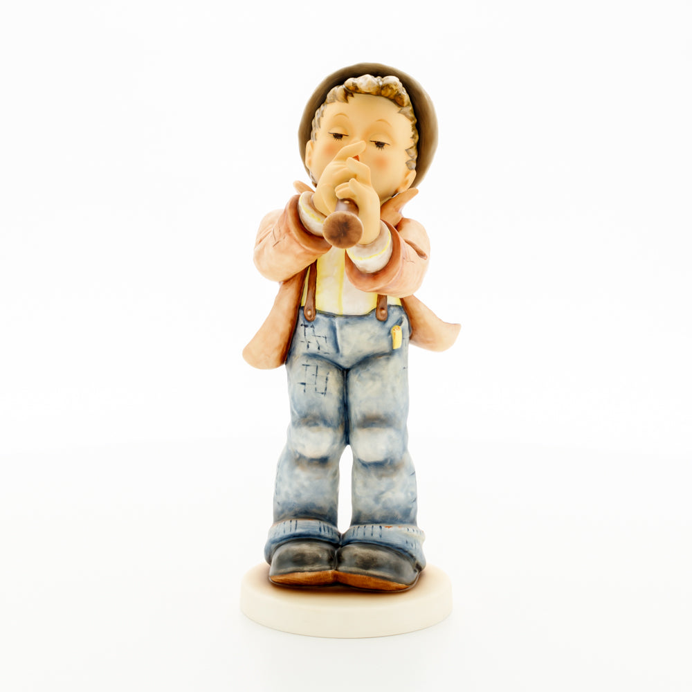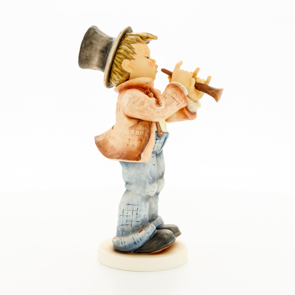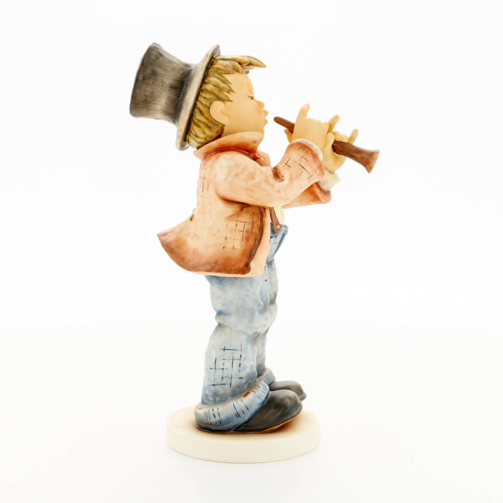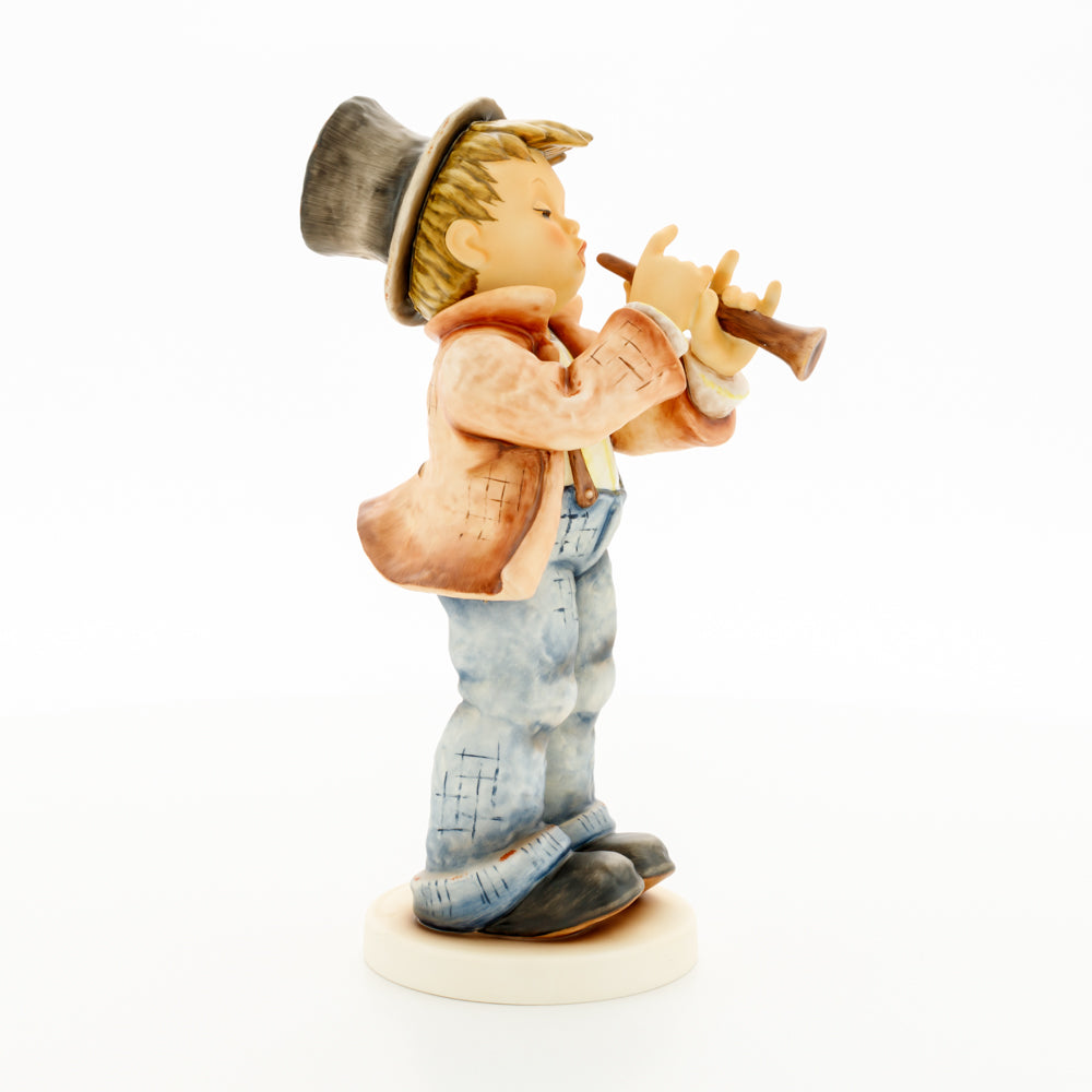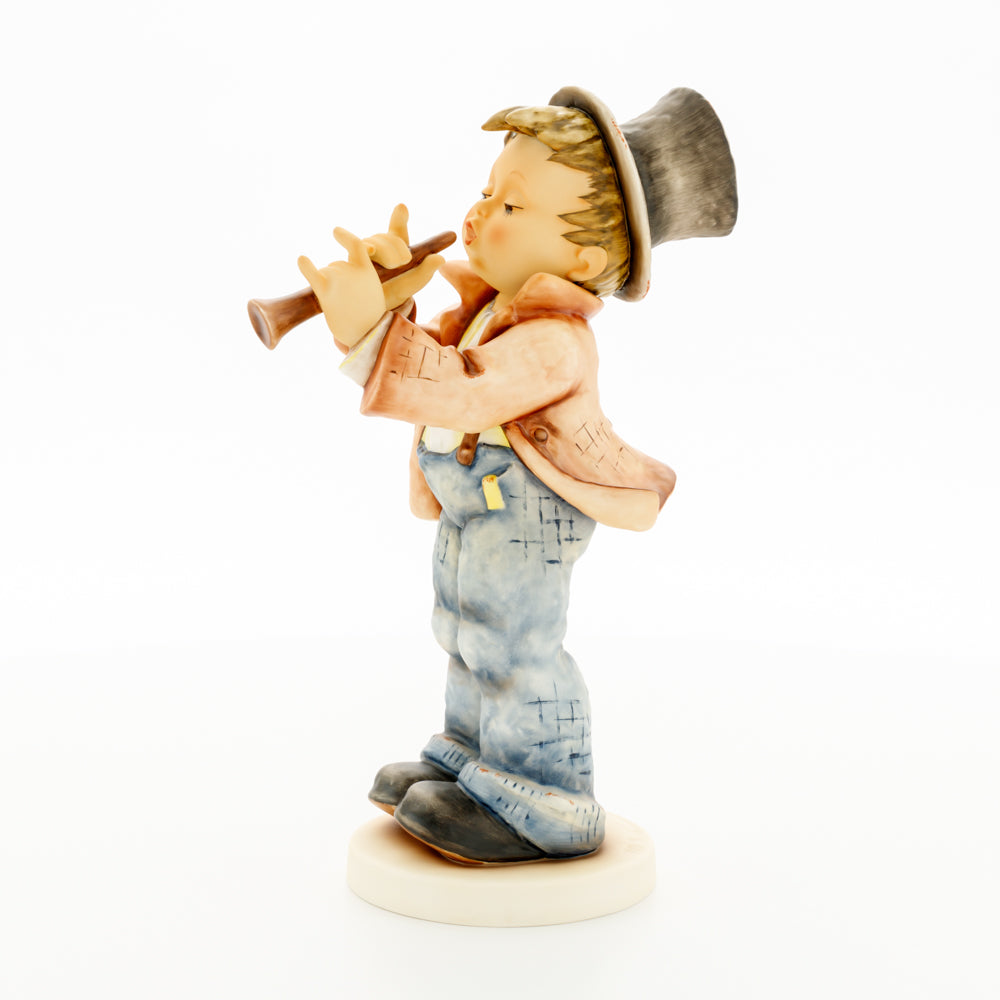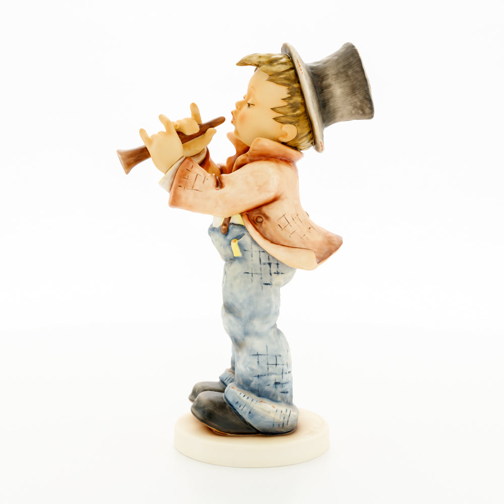 Diese Figur wurde 1938 von Arthur Möller modelliert. Es gibt sie in vielen Größenvariationen mit unterschiedlicher Position der Finger auf der Flöte. Die Farbe des Huts ist Dunkelgrau oder Schwarz. Bei älteren Modellen ist der Hut hellgrau. Die Figur ist Bestandteil des Hummel-Orchesters und des Weiteren die zweite Figur der „Kleinen Musikanten“.