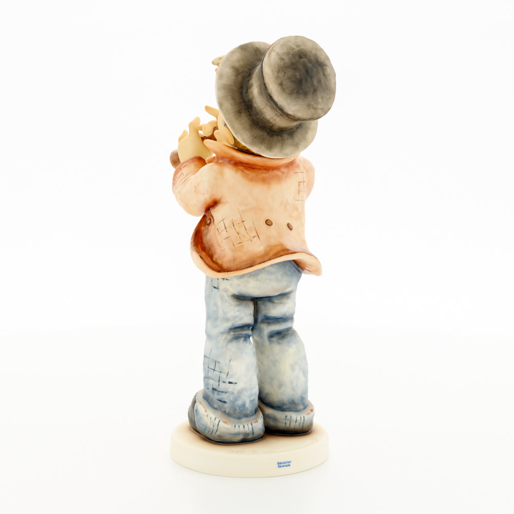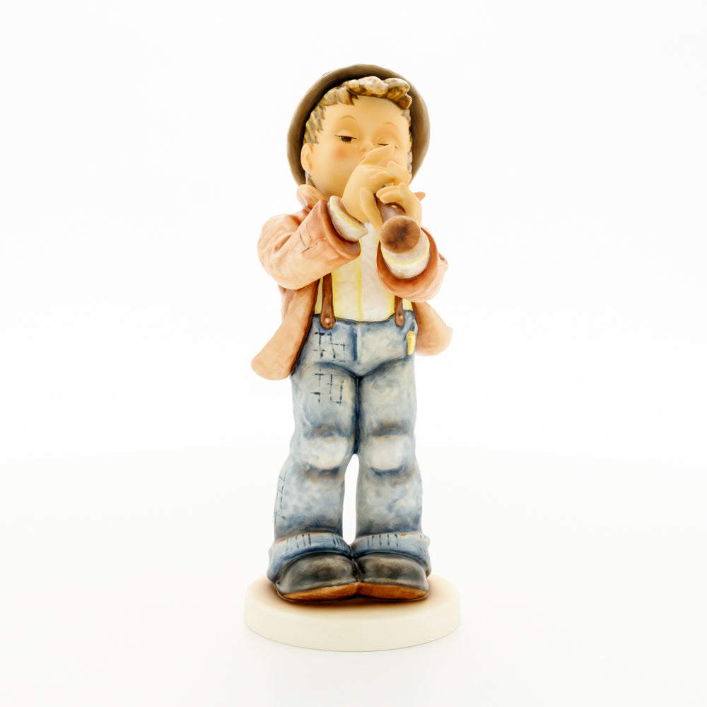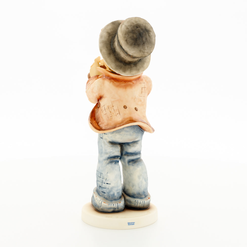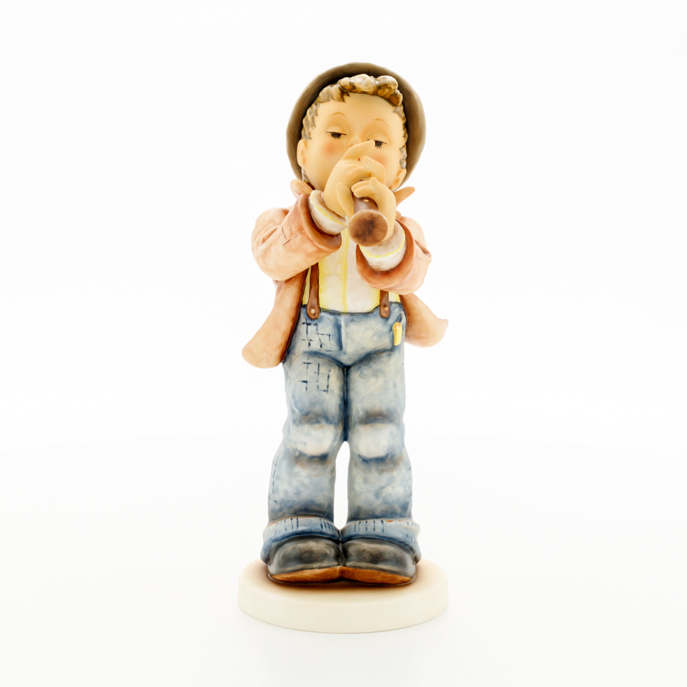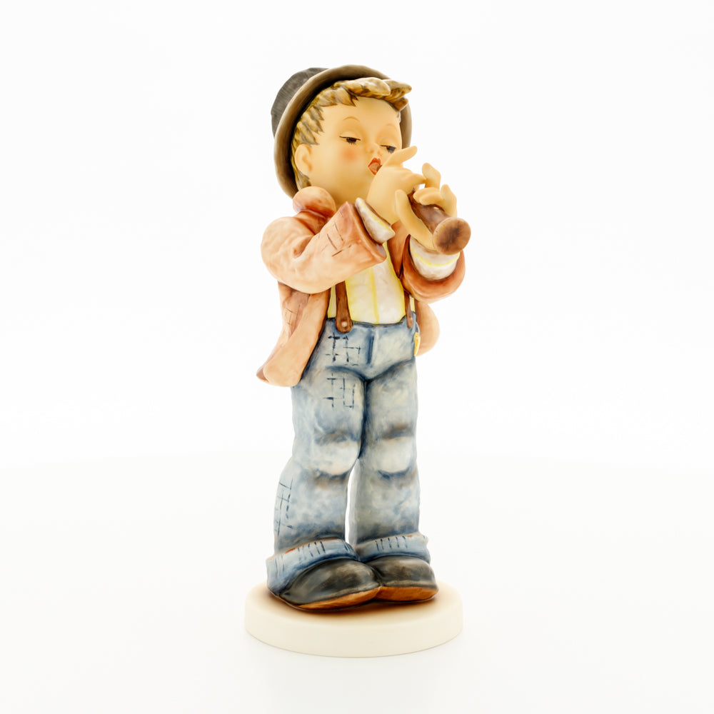Diese Figur wurde 1938 von Arthur Möller modelliert. Es gibt sie in vielen Größenvariationen mit unterschiedlicher Position der Finger auf der Flöte. Die Farbe des Huts ist Dunkelgrau oder Schwarz. Bei älteren Modellen ist der Hut hellgrau. Die Figur ist Bestandteil des Hummel-Orchesters und des Weiteren die zweite Figur der „Kleinen Musikanten“.