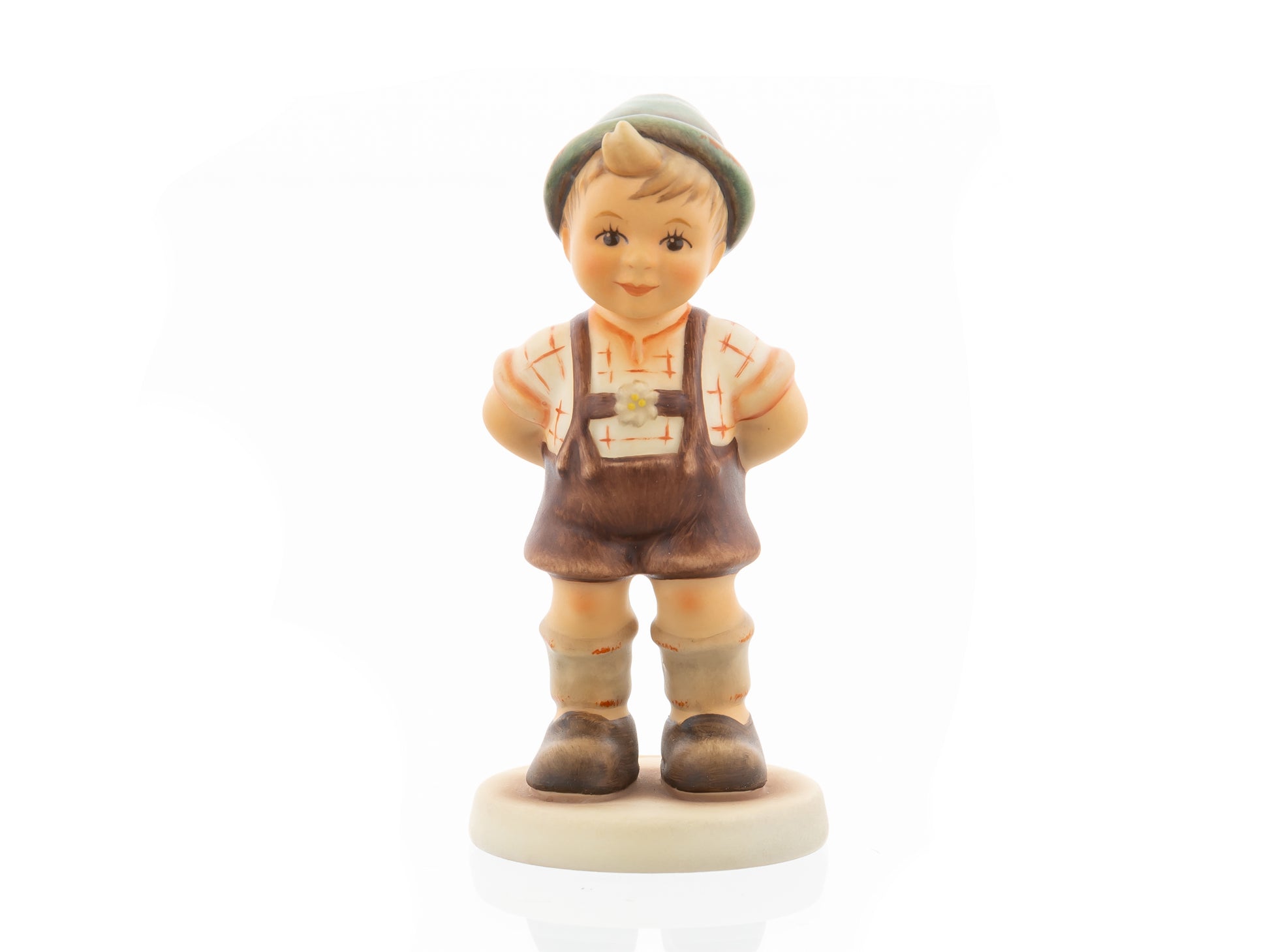 So sieht ein echter bayerischer Bub aus! Unser Hummeljunge hat seine beste Lederhose und seinen besten Hut aus dem Schrank geholt – stolz präsentiert er nun seine Tracht! Seine Partnerin (HUM 2102/A „Ein Herz aus Bayern“) freut sich schon, gemeinsam mit ihm zu tanzen und zu feiern.