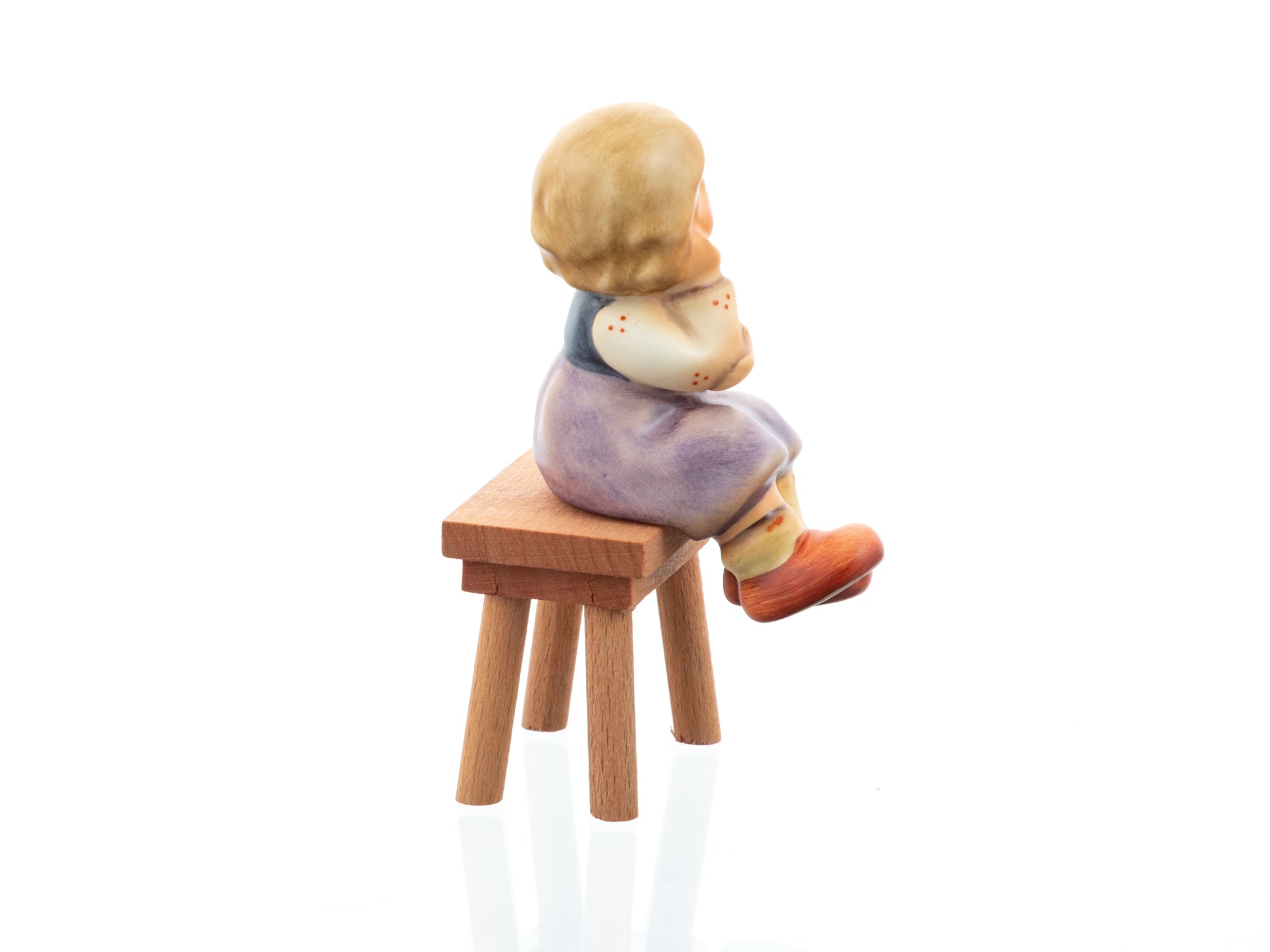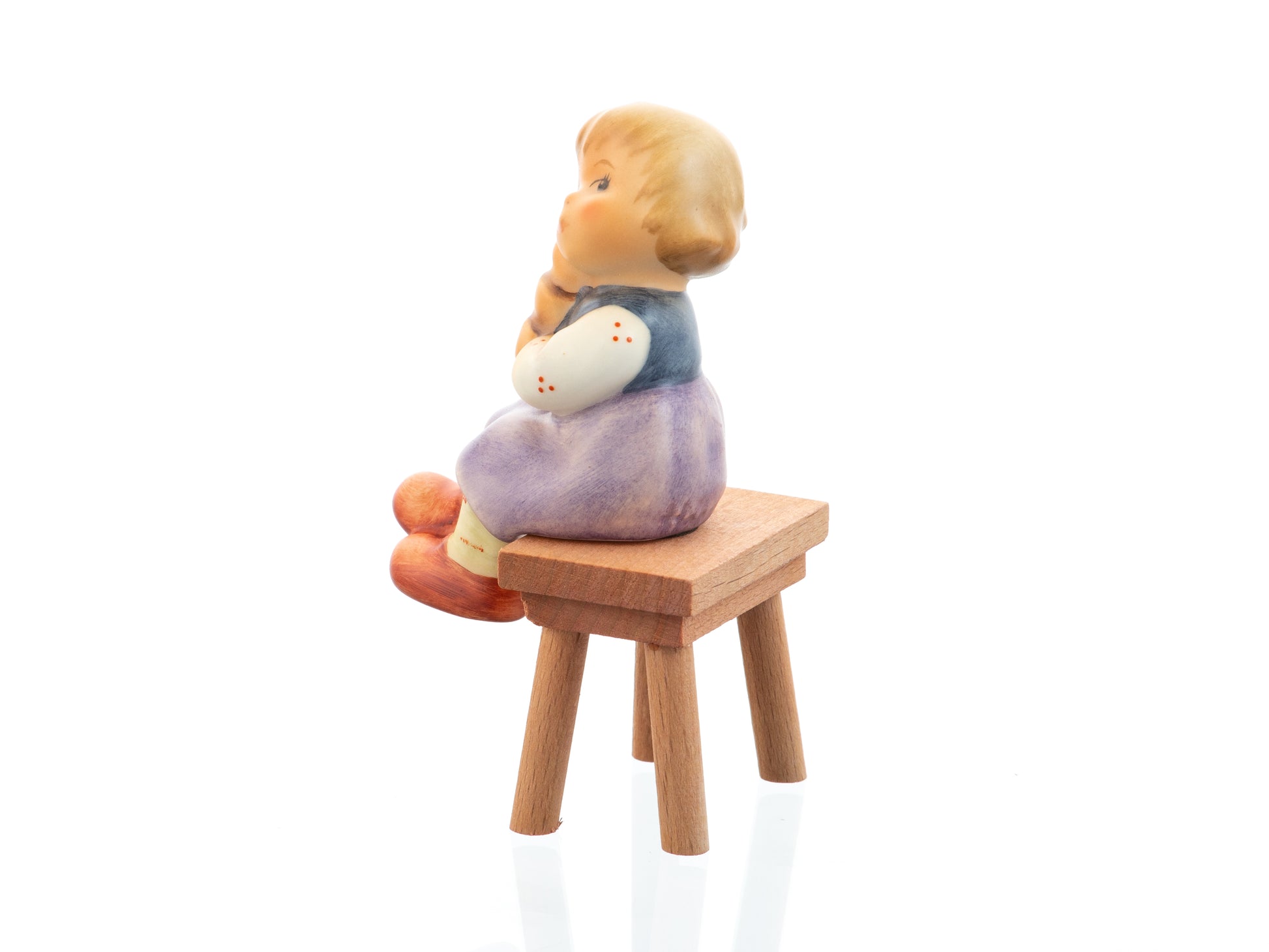 HUM 2388/E gehört zu unserer Schulklasse, die insgesamt aus dem Lehrer „Obermayer“ und sechs Schulkindern besteht. Neben „Gertrud“ gehören „Gerda“, „Seppi“, „Ludwig“, „Gustav“ und „Peter“ dazu. Maria Innocentia fand Erfüllung und Freude darin, ihren Schülerinnen und Schülern im Kloster etwas beizubringen, vor allem ihre Leidenschaft für das Zeichnen und Malen zu vermitteln. Ihre Zuneigung und ihre Liebe zu Kindern leben heute in unseren Hummel-Figuren weiter.