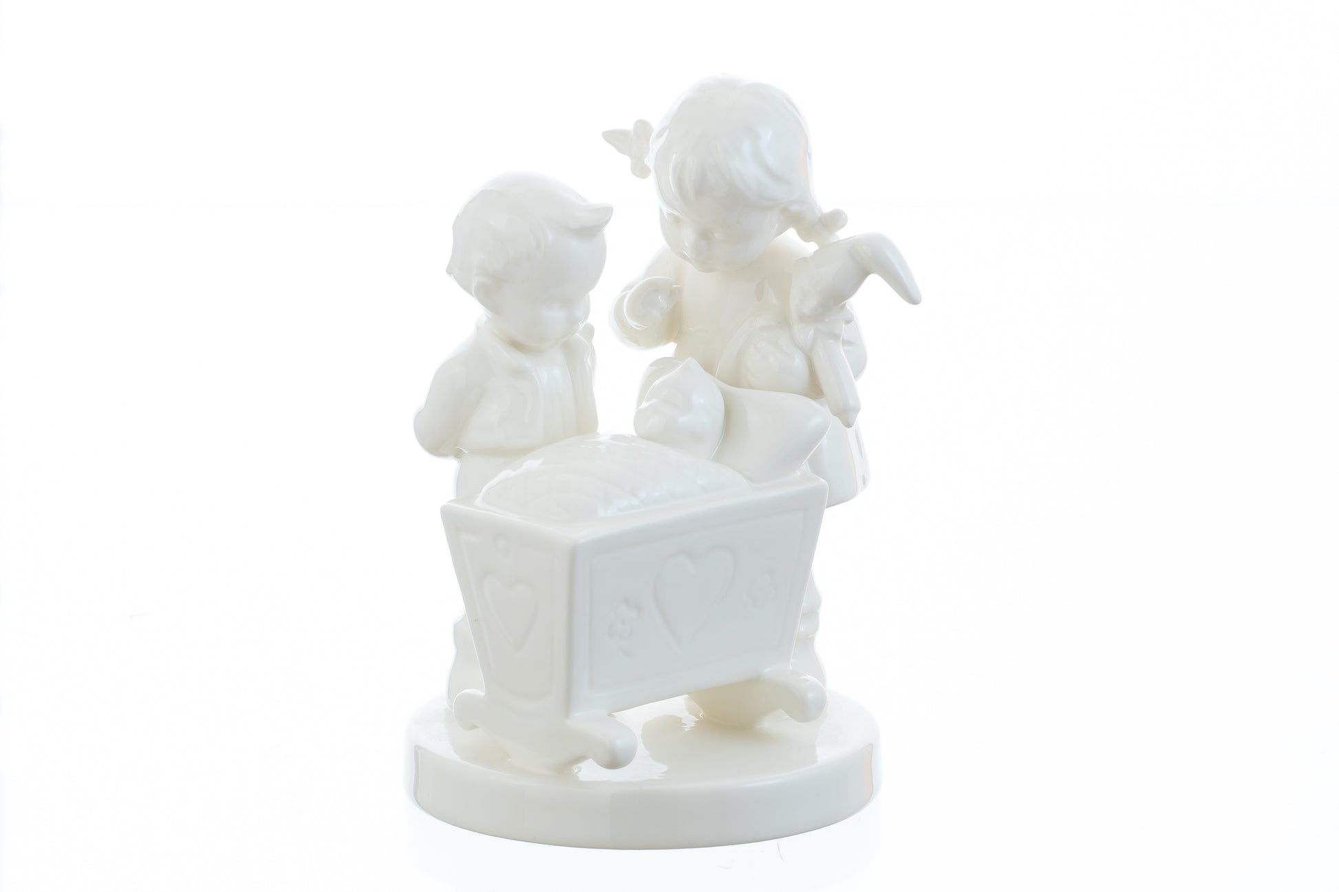 Die original M.I. Hummel-Figur "Das große Ereignis" wurde von der Hummel-Manufaktur in Rödental erstmals im Jahr 1964 anlässlich der Weltausstellung in New York auf den amerikanischen Markt gebracht und ist deutsche Qualitäts- und Handarbeit "made in Gemany". Modelliert wurden die Geschwisterkinder aus dem Hause Hummel von Arthur Möller bereits 1955 in strenger Anlehung an die Zeichnungen der Fanziskanerschwester Maria Innocentia Hummel, die im Kloster Sießen nahe Siegmaringen lebte und aus Massing in Bayern stammte.